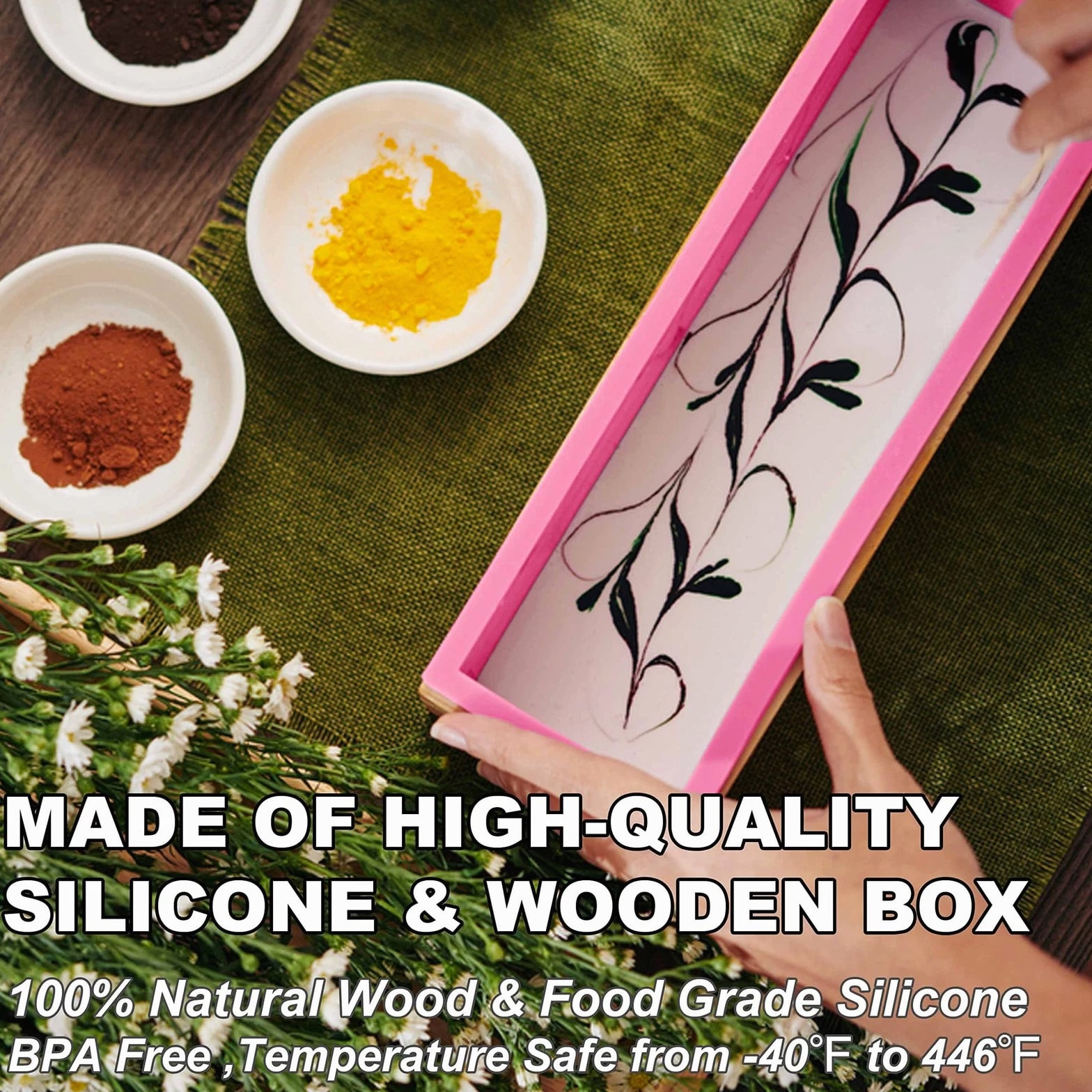 Versatile DIY Companion: Designed for soap makers and bakers, this kit's 42oz silicone mold and dual scrapers enable creative projects—from soaps to uniform cake slices—with seamless storage in the included wooden box. User-Friendly Design: The mold's flexibility and non-stick surface allow quick, mess-free demolding. Heat-resistant silicone withstands extreme temperatures, while the wooden frame ensures even cooling for smooth finishes. Durable & Safe Construction: Silicone resists fading and deformation, paired with a sturdy wooden frame for stability. Stainless steel cutters provide clean, even slices every time. Optimized Workflow: Large capacity minimizes batch repetition. Scrapers fit ergonomically for precise cutting, and the compact design saves kitchen and craft space. Commitment to Quality: Our focus on sustainable DIY tools guarantees this kit's reliability for hobbyists and small businesses alike, backed by eco-conscious manufacturing.