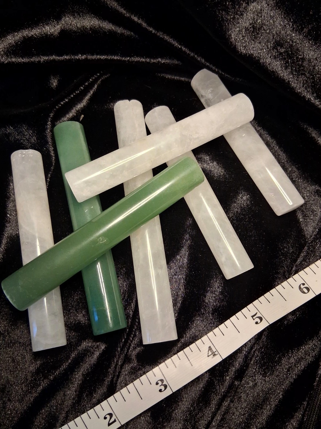 The Stone Massage Roller Stick Gua Sha set made from Green Aventurine and Clear Quartz stones, perfect for body massage. The handheld roller stick is 3-5 inches tall and can be used for massage on various body areas including the back, face, arms, and legs. The green and white stones provide a soothing and rejuvenating experience, making it a great addition to any massage routine for relaxation and wellness.