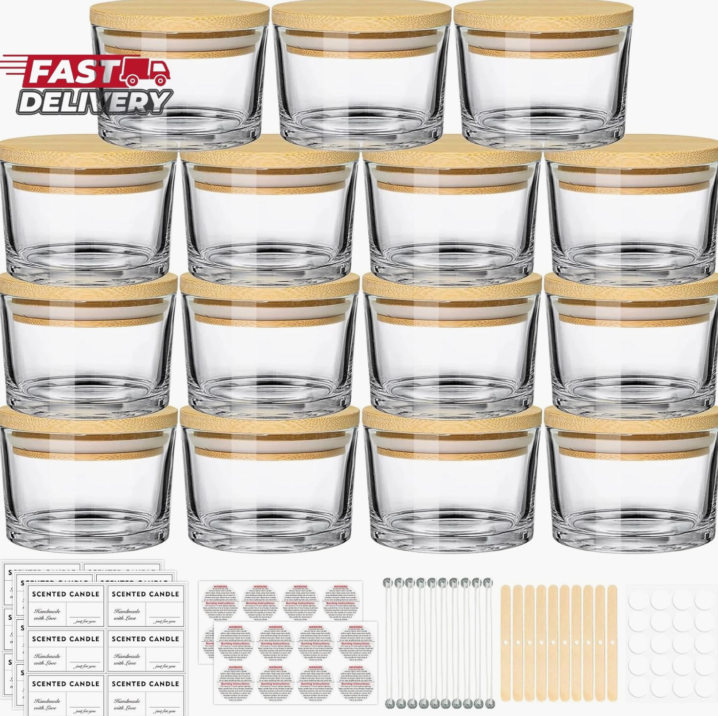 4 Oz Clear Candle Jars (15 Pack) - Small Wide Mouth Glass Jars with Bamboo Lids