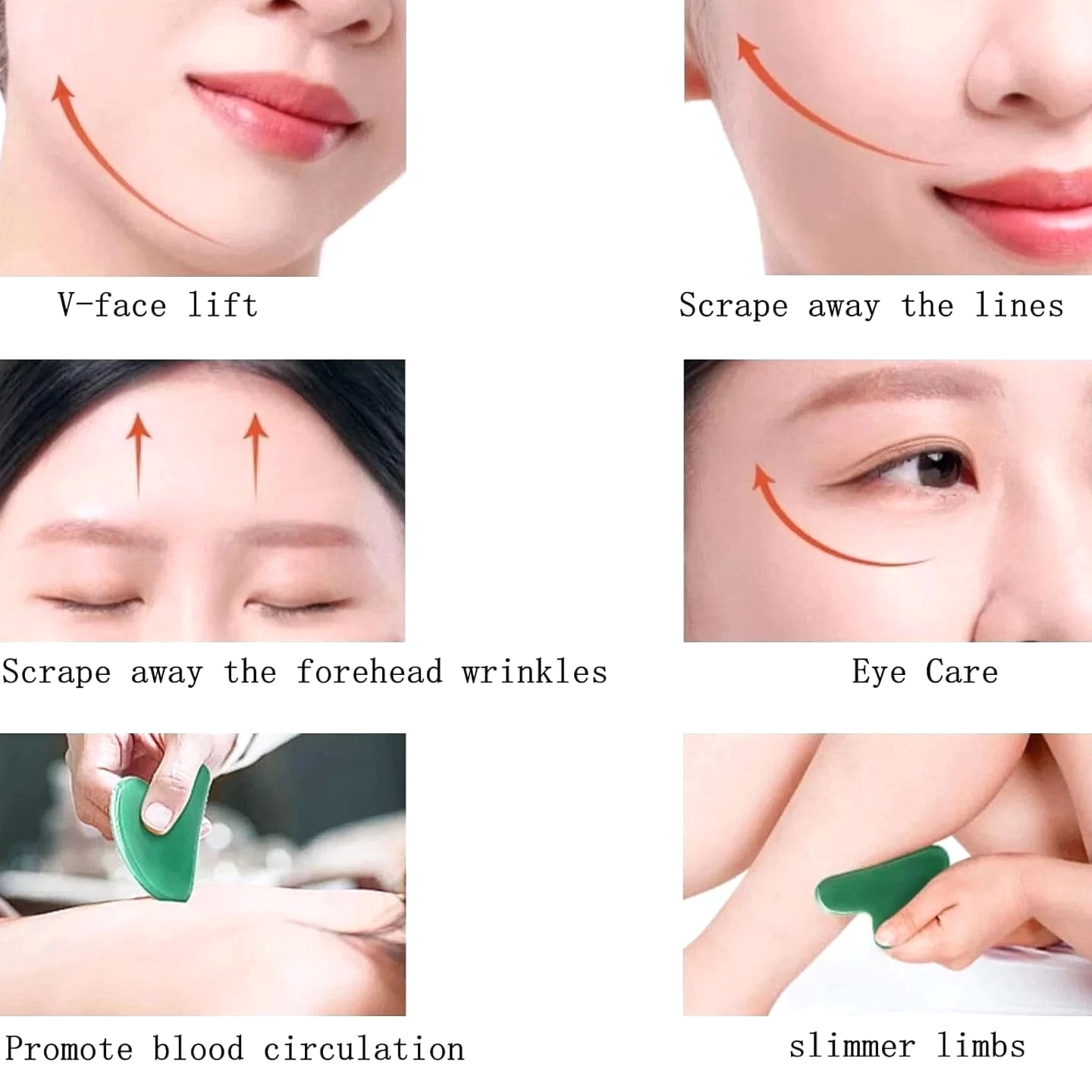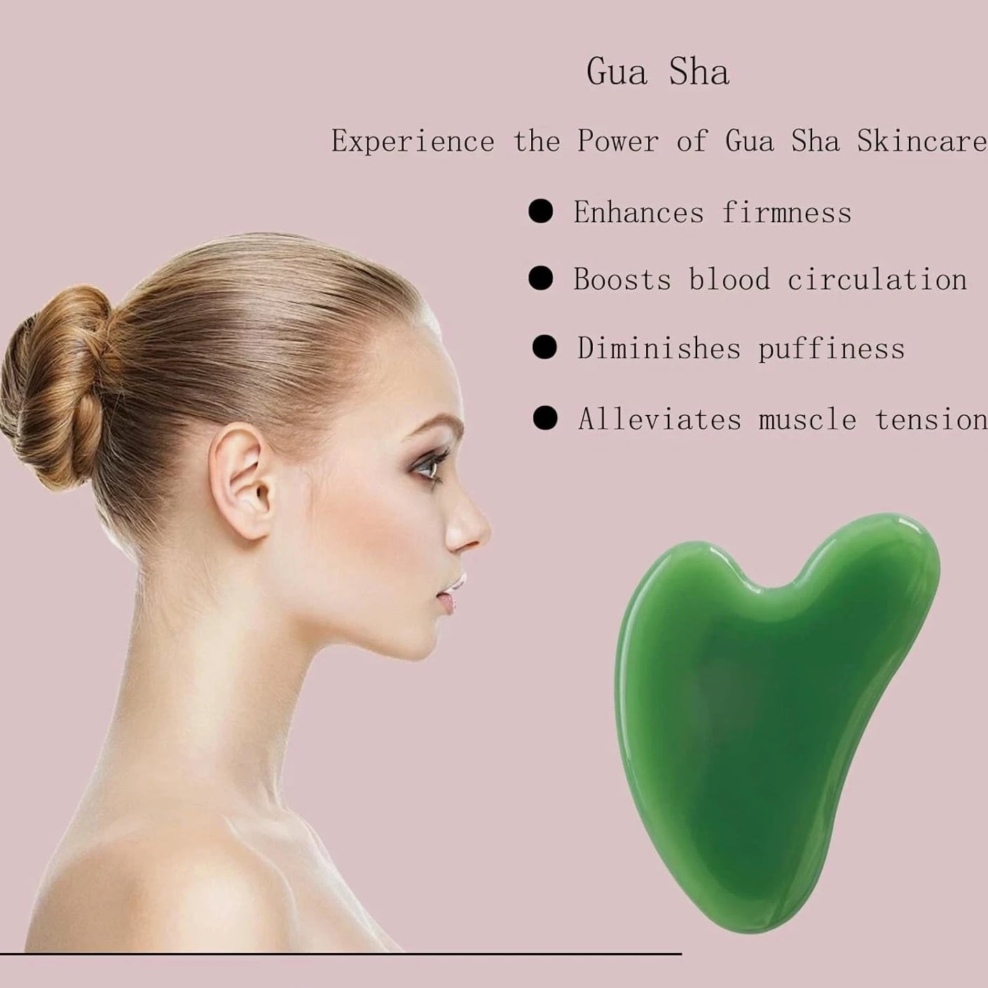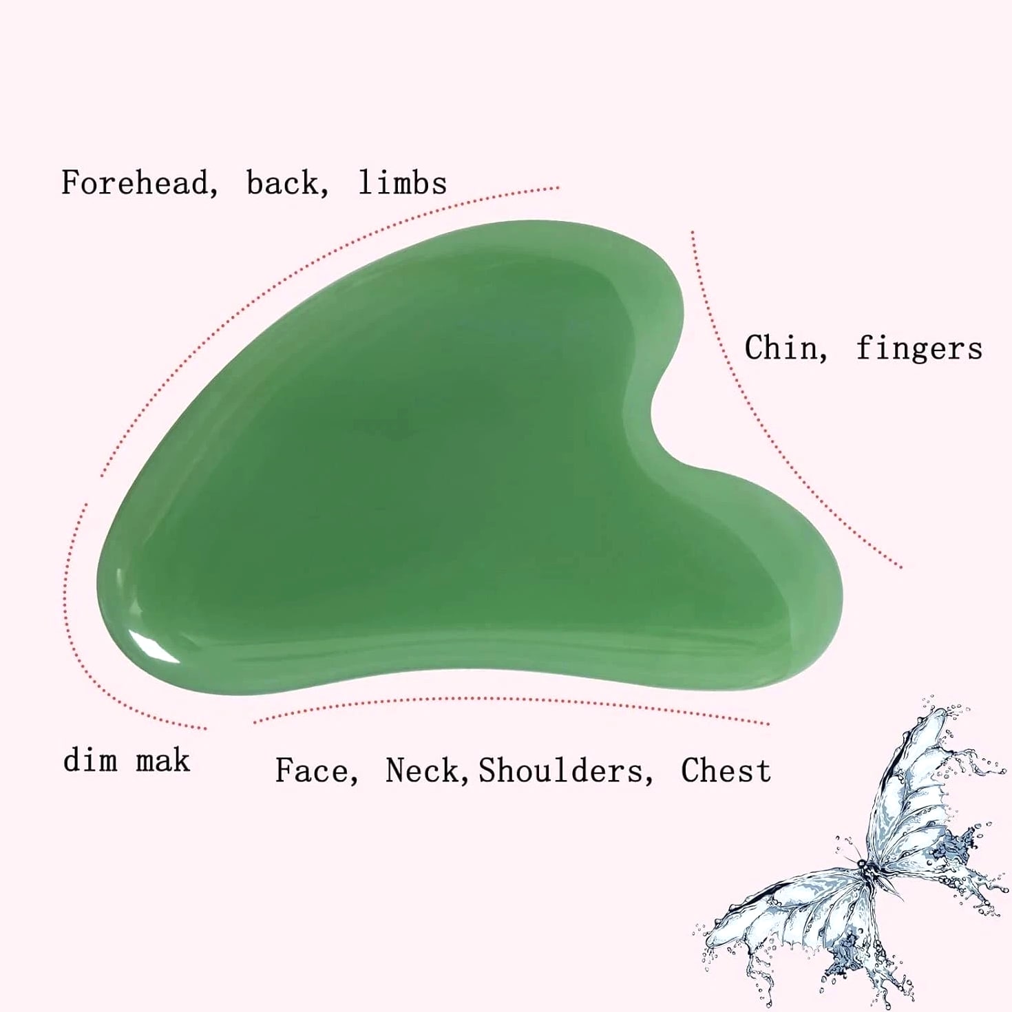 Gua Sha Jade Stone Massage Tool, Guasha Scraping Device for Face and Body Skin