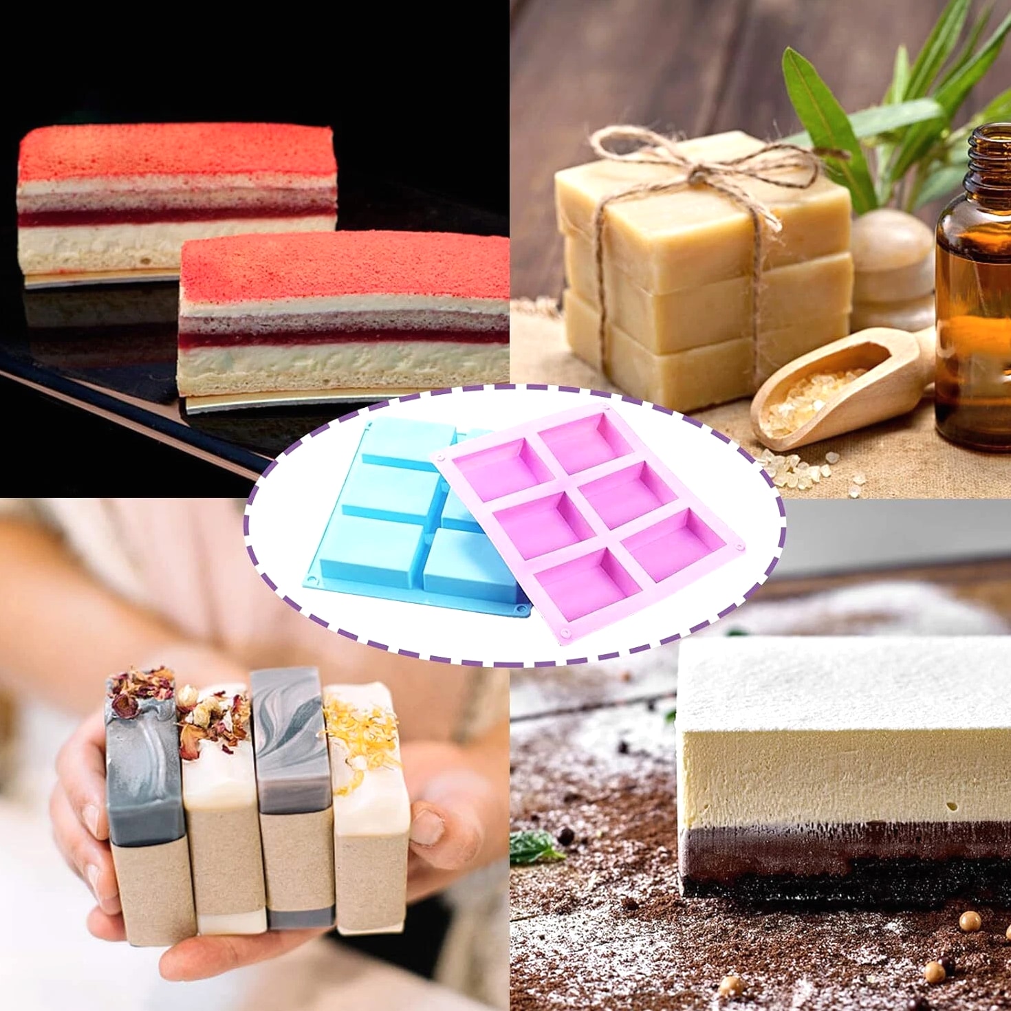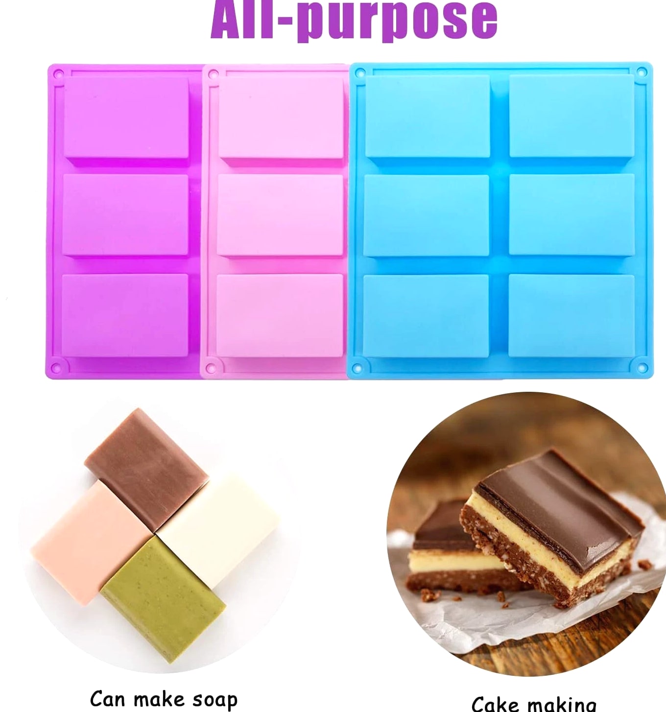 3 Pack Silicone Rectangle Soap Molds with 6 Cavities, Soap Making Baking Molds