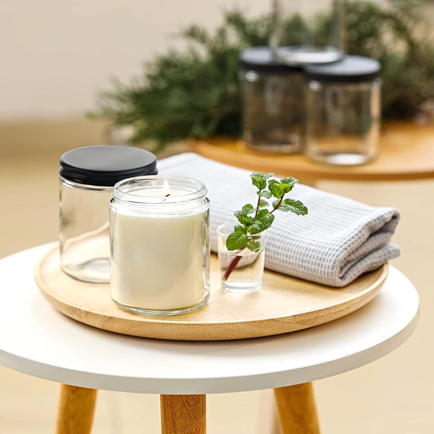 24 Pc, 8 OZ Thick Glass Jars with Metal Lids, Clear Round Candle Making Jars