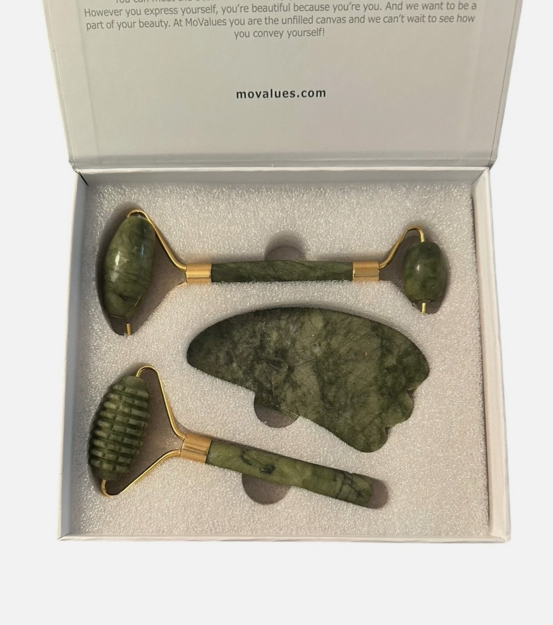 MO VALUES Natural Jade Roller Massage Skincare 3 Piece Set - Quiet Luxury