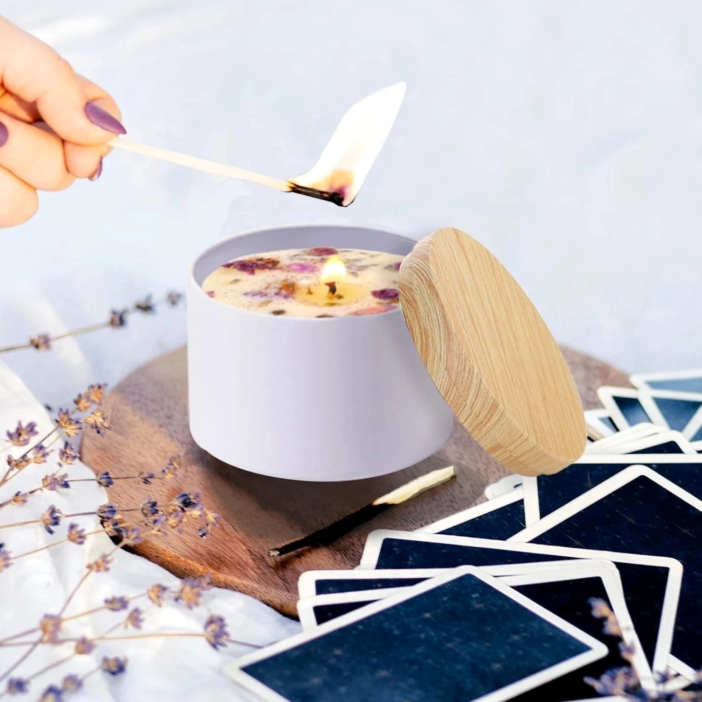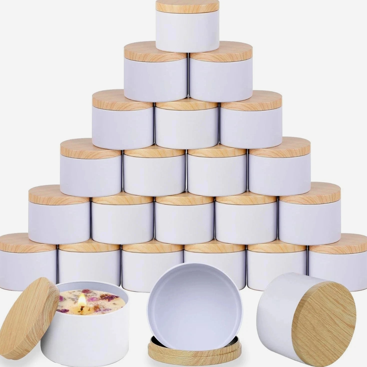 4oz White Candle Tins, 24 Pcs Matte Metal Jars With Wood Grain Lids for Making