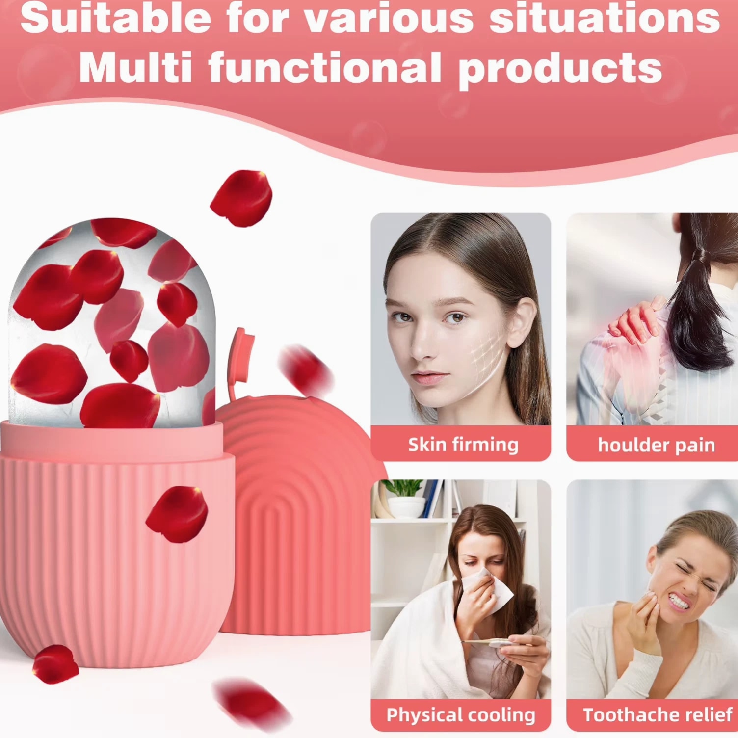 βοΈ Cooling Skin Care Tool: Refresh your skin with a soothing ice massage π Easy to Use: Fill with water, freeze, and glide on skin πΈ Helps Reduce Puffiness: Ideal for morning skin care routine β¨ Smooth & Refreshing Sensation: Leaves skin feeling cool and revitalized πͺΆ Reusable & Durable: Made from high-quality silicone material π― Multi-Purpose: Suitable for face, eye area, and daily skin care Ice Face Roller β Refresh & Revitalize Your Skin βοΈ Upgrade your skincare routine with this silicone ice face roller, designed to provide a cooling and refreshing experience. Simply fill with water, freeze, and gently massage your skin to enjoy a smooth and soothing feel. Perfect for daily use, especially during hot weather or after long days. β Easy and quick skincare routine β Cooling effect feels refreshing β Reusable and eco-friendly β Perfect for everyday beauty care Specifications: Product Type: Ice Face Roller Material: Silicone Usage: Skin Care / Beauty Tool Design: Reusable Ice Mold Perfect For: β Daily skincare routine β Refreshing tired skin β Morning face massage β Beauty & self-care