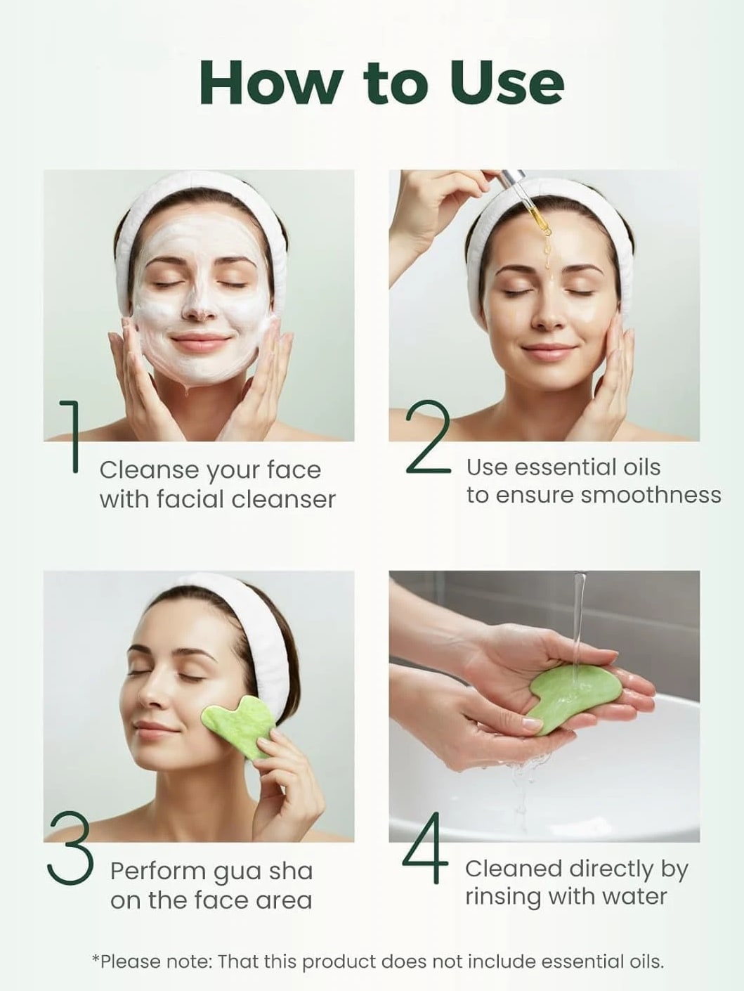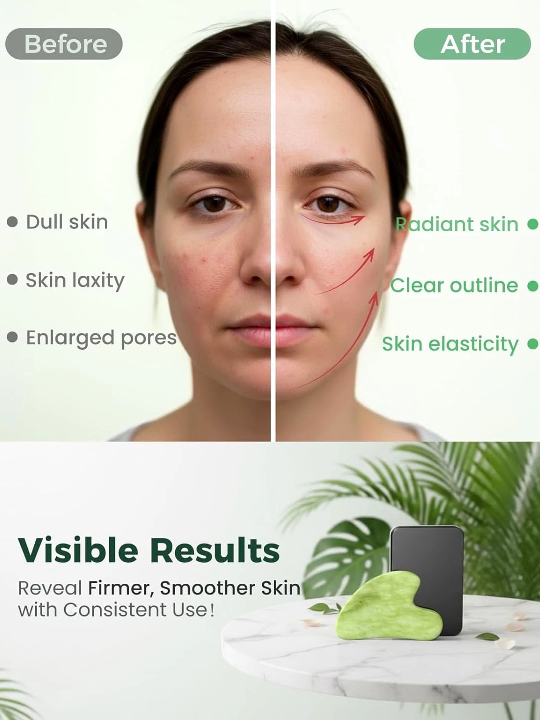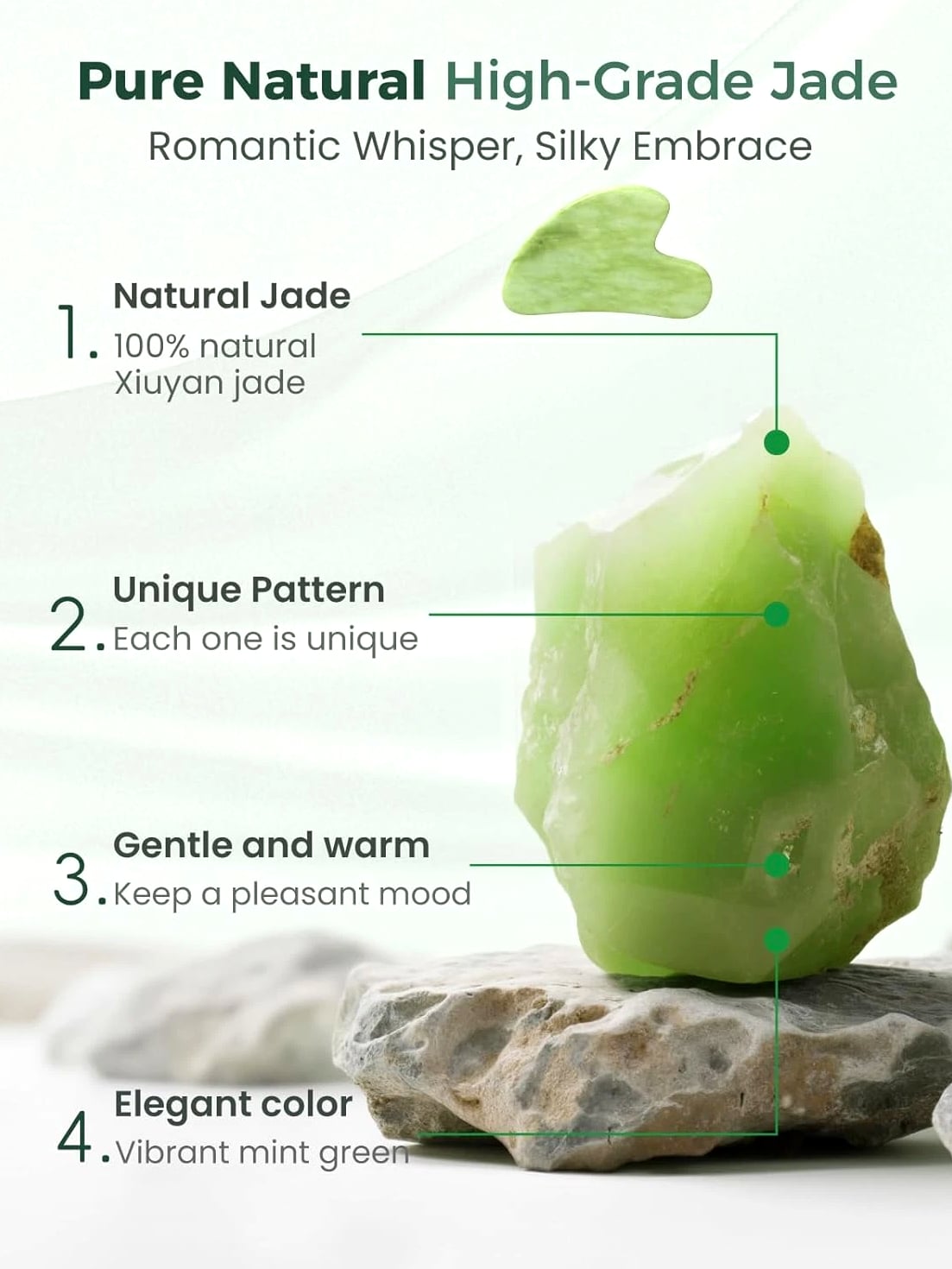 Gua Sha Facial Tools, Natural Jade Stone Guasha Tool for Face, Acupuncture Therapy