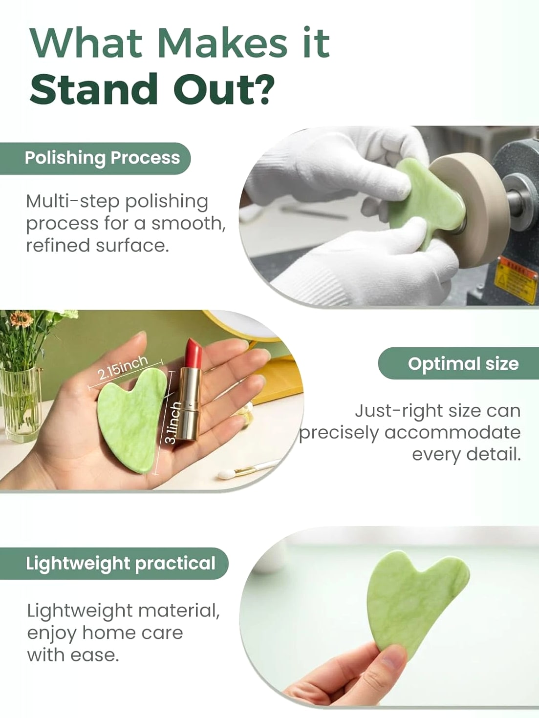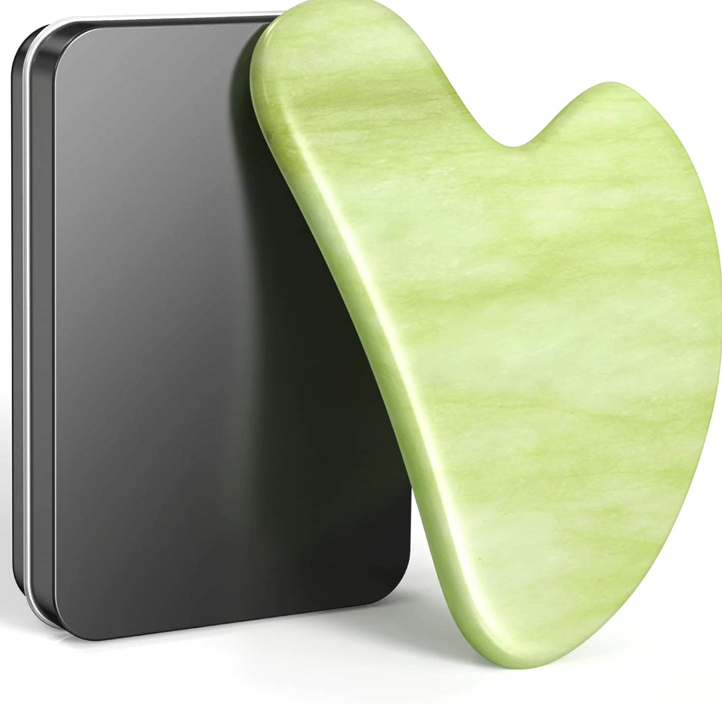 Gua Sha Facial Tools, Natural Jade Stone Guasha Tool for Face, Acupuncture Therapy Magic of the East: Gua sha is a traditional Chinese medicine therapeutic treatment that helps promote blood circulation, reduce puffiness, sculpt the jawline, nourish the skin Natural Material: Gua sha scraping massage tool made from 100% natural jade stone, which has beneficial minerals for skin beauty and body health; Long lasting, super easy to care for Whole Body Caring: Offers you the most complete massage therapy, makes you less stressed, more concentrated, look presentable, feel energized and healthy Heart Shape: Approx 3.2 inch long, 2.2 inch wide, portable and handy; Ultra smooth touch feeling that never hurts your skin Perfect Gift: Exquisite gift box packaging; Jade gua sha tool is the best gift for Christmas, Birthday, Mother's Day, Valentine's Day 2.48 inches x 3.54 inches x 0.67 inches. Weight: 2.08 oz Item model number B0FW4DS2W8 Product Dimensions 3.2 x 2.2 x 0.16 inches; 2.08 ounces