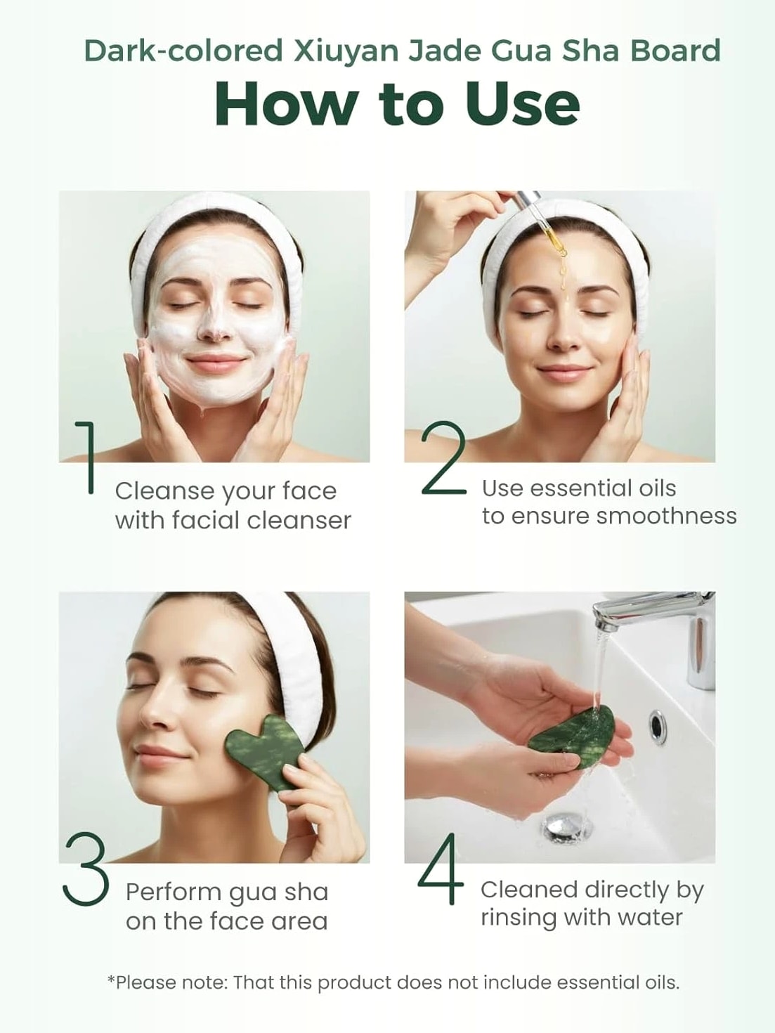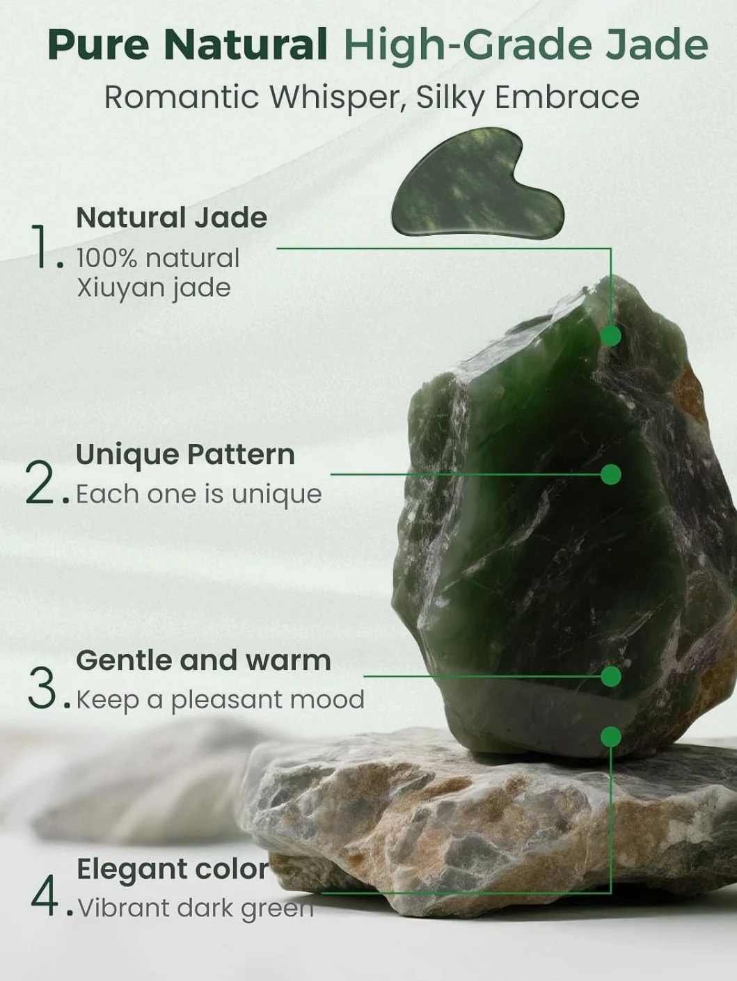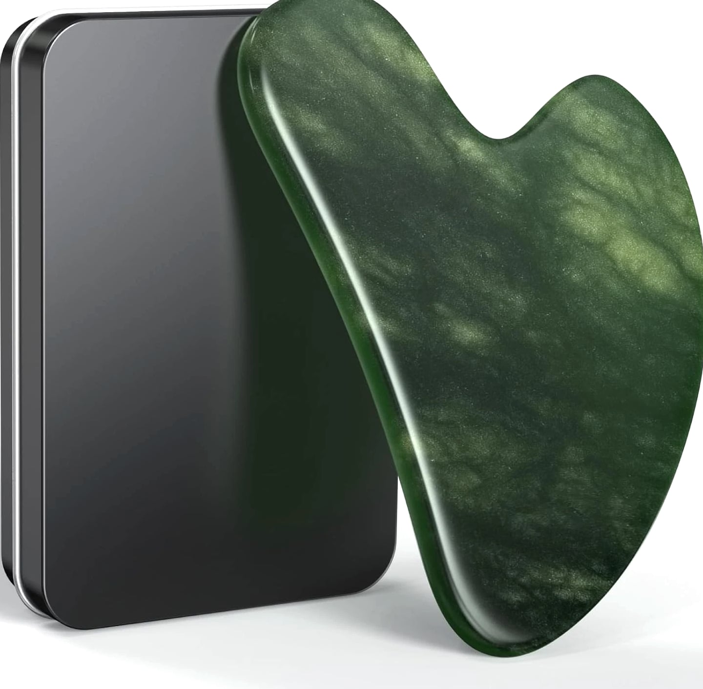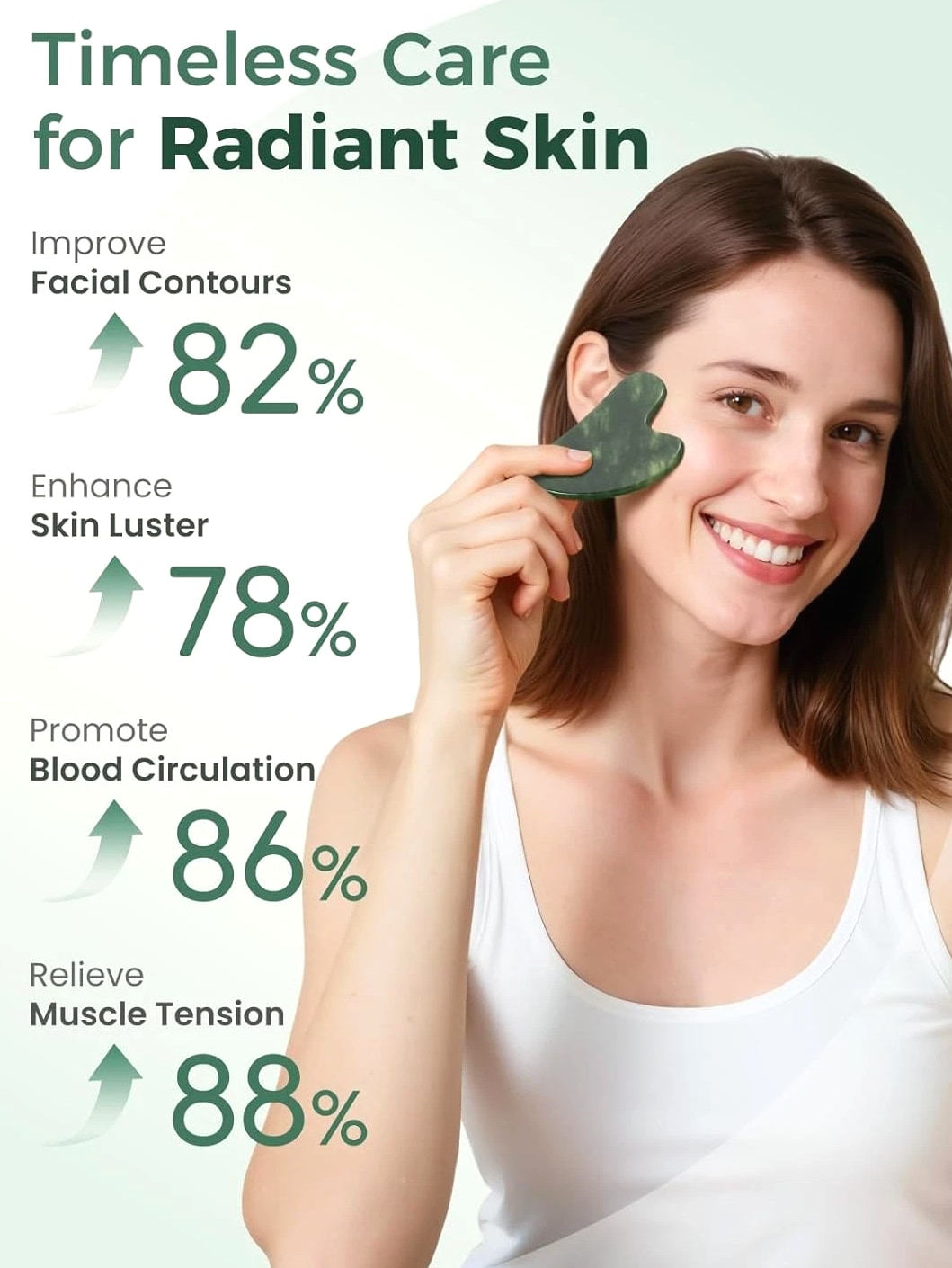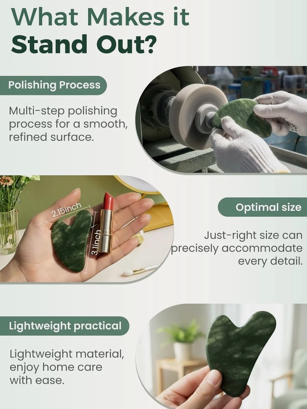 Magic of the East: Gua sha is a traditional Chinese medicine treatment that helps promote blood circulation, reduce puffiness, sculpt the jawline, and nourish the skin Natural Material: Gua sha scraping massage tool made from jade stone, which is beneficial for skin beauty and body health; Long-lasting, super easy to care for Whole Body Caring: Offers you the most complete massage therapy, makes you less stressed, more concentrated, look presentable, feel energised, and healthy Heart Shape: Approx 3.2 inches long, 2.2 inches wide, portable and handy; Ultra smooth touch feeling that never hurts your skin Perfect Gift: Exquisite gift box packaging; Jade gua sha tool is the best gift for Christmas, Birthday, Mother's Day, Valentine's Day