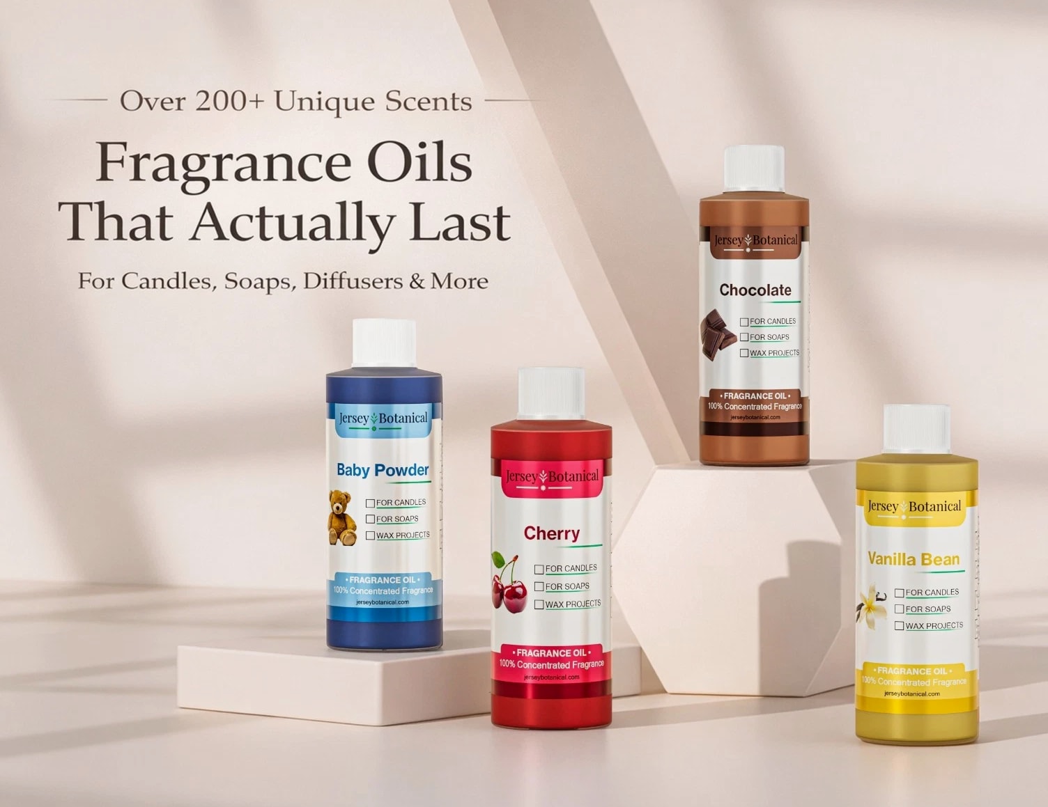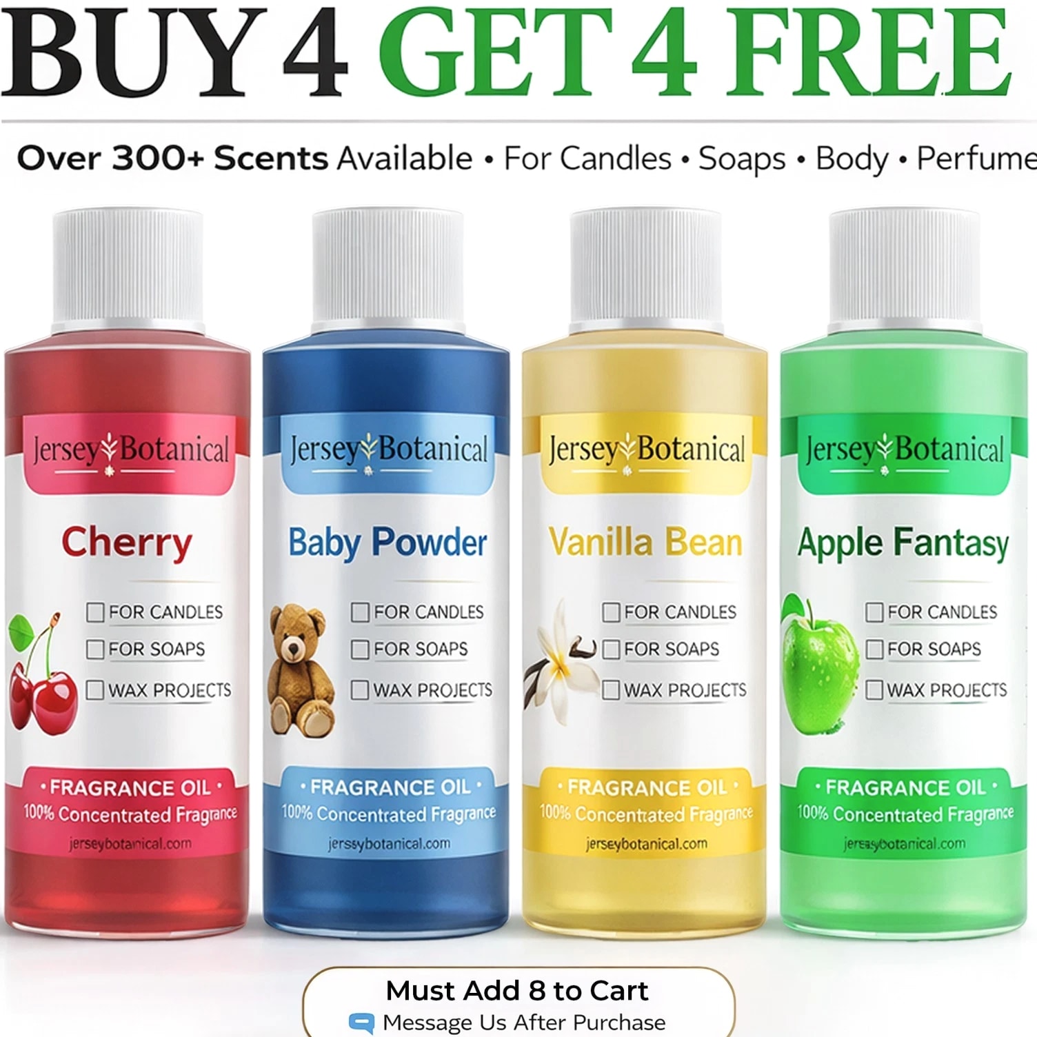 Products Like Our Page Check Our Feedback Contact Us Fair Price TESTED BEFORE USE QUALITY GUARANTEED SATISFACTION GUARANTEED Buy 4 Get 4 Free Must add 8 to cart Great for Bath Bombs Perfect for Candles & Soaps Known to Last Long with Diffusers Amazing for Moisturizing the Body Ultimate Aroma for Perfumery Favorite Product Details Our Fragrance oils are used in a variety of products to enhance their scent, and they are available in a wide range of fragrances, including floral, fruity, spicy, and woody scents. They are also used in aromatherapy and in the creation of custom scents for personal and commercial use. Lasting fragrance hours later for Candles Soaps Perfumes What else can this be used for? Fragrance oils are enchanting essences that add captivating scents to a wide range of products. From perfumes and candles to soaps and home fragrances, they infuse personal care items and living spaces with delightful aromas, creating a sensory experience that uplifts and delights. Explore a world of endless possibilities as fragrance oils become the key ingredient in crafting unique, personalized scents that leave a lasting impression. Pros Phthalate, Alcohol, Cruelty and Dilution Free Why Jersey Botanical? We're your destination for premium grade fragrance oils that won't break your bank! Our store offers a wide range of high-quality fragrances that are perfect for creating your own signature scents. Our Guarantee We stand behind every product we create, and your unconditional satisfaction is our top priority. That's why we offer complimentary shipping across the entire United States Why us Our fragrance oils are known to be GMO FREE PHTHALATE FREE ALCOHOL FREE CRUELTY FREE NO ANIMAL TESTING SKIN GRADE Featured Products Blueberry Premium Fragrance VIEW Cherry Premium Fragrance VIEW Lavender Fragrance VIEW Coco Mango Fragrance VIEW Recent Feedback "I cannot believe how quick the shipping was. I really can't believe that you buy 4 and get 4 free."
