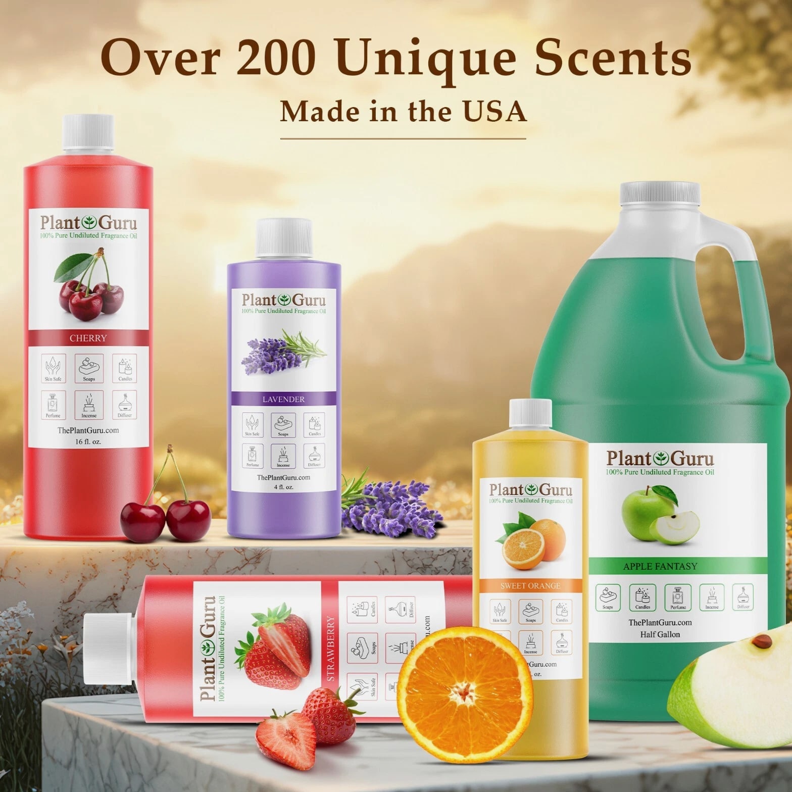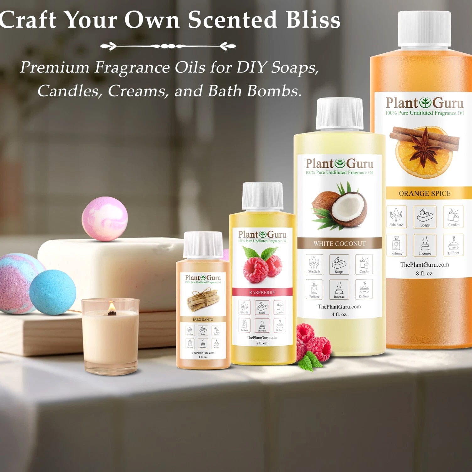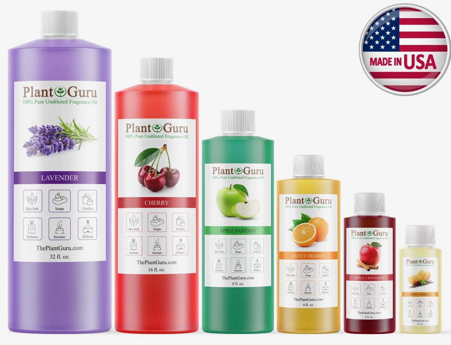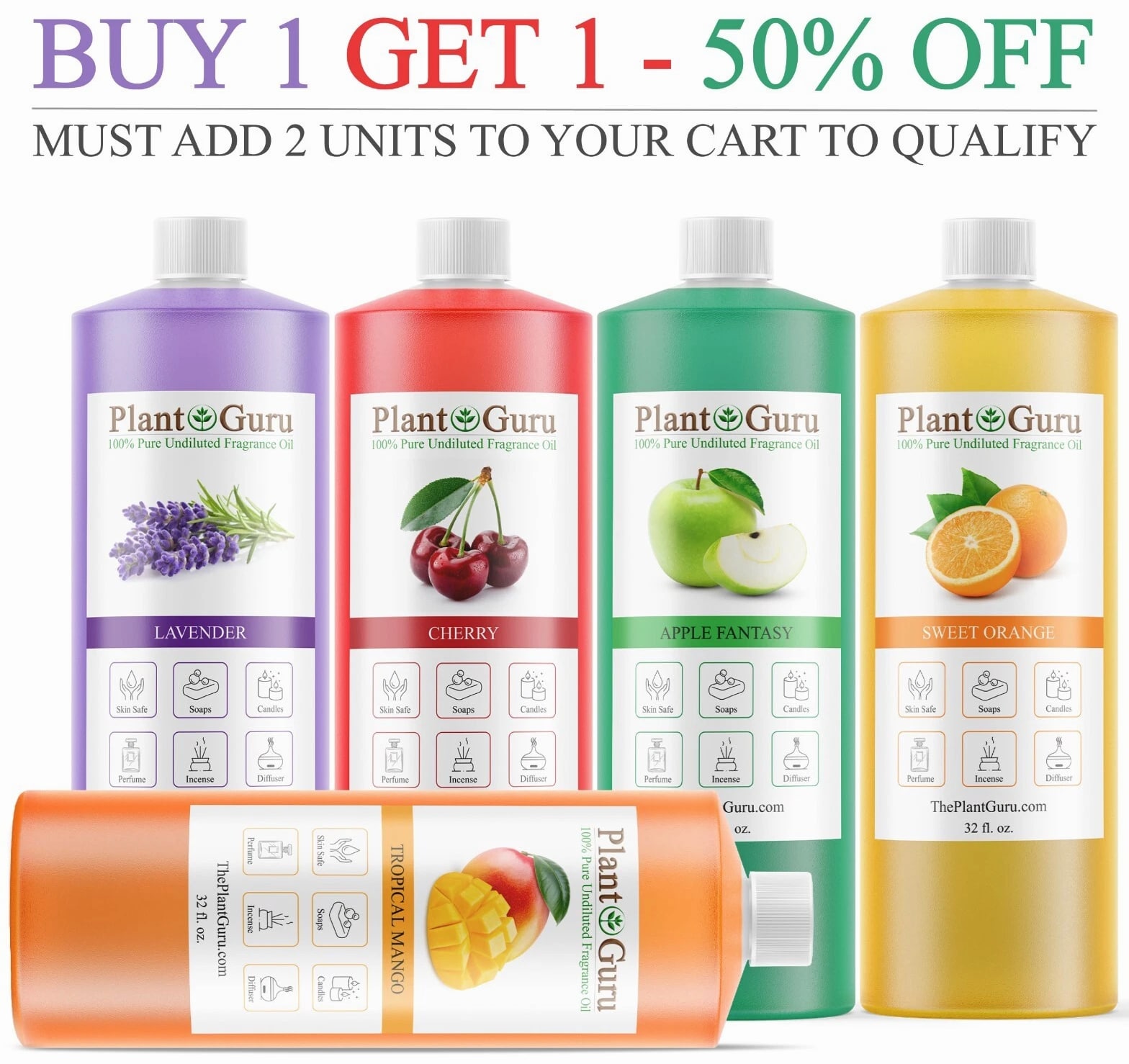 Extensive Variety Of Fragrance Oils 105+ Scents To Choose From Premium Grade Fragrance Oils 32 oz. / 32 ounces *ALCOHOL FREE ** PHTHALATE FREE* 100% CONCENTRATED Candles, Soaps, Incense, Wax tart, Creams, Lotions, Bath Bombs MANUFACTURED IN USA BUY 1 GET 1 - 50% OFF ✅ PHTHALATE & ALCOHOL FREE - An exotic fragrance that's safe on your skin without harmful chemicals. ✅ DIFFUSER - Add a few drops to any aromatherapy diffuser (steam or reed) and fill your entire room with aromatic bliss ✅ DO IT YOURSELF - Candles, Soaps, and More - Including slime making, perfumes, air fresheners, homemade lotions, cleaning products, aromatherapy, soap making, candle making, bath bombs, potpourri, reed diffusers, and more! ✅ LEADERS IN AROMATHERAPY - Plant Guru has been a leading supplier in the aromatherapy industry since 2011 - Offering high quality essential oils and fragrance oils for a wide range of applications. All our fragrances are custom made right here in the USA. ✅ ONE STOP FRAGRANCE SHOP – Here at Plant Guru we carry a wide variety of pure essential oils, fragrance oils, incense and resins. WHY SHOP ANYWHERE ELSE!!! Choose Scent From Drop Down Menu NEED A BIGGER SIZE? Click on the link below to view our Gallon 8 lbs. Fragrance oils BULK WHOLESALE LINK >> Catalog #1 (A - K) LINK >> Catalog #2 (L - Z) LINK >> FRAGRANCE OILS GALLON 8 lbs. BULK WHOLESALE The oils can be used in candle making, tart making, soap making, other bath & body products, and can be used in warmers/burners or fragrance lamps. LINK >>> VIEW OUR FULL LINE OF FRAGRANCE OILS HERE Check out our store for Pure Aromatherapy Essential Oils Click on Link Below to view our full line of Essential Oils, Carrier Oils and Body Butters Click on Link Below to view our full Butters and Oils list LINK >>> 100% Pure Butters LINK >>> African Black Soap LINK >>> Carrier Oils / Pure Plant Oils LINK >>> 100% Pure Essential Oils, Therapeutic Grade. LINK >>> Pure Essential Oil Blends Why Plant Guru ? We source the finest qualit