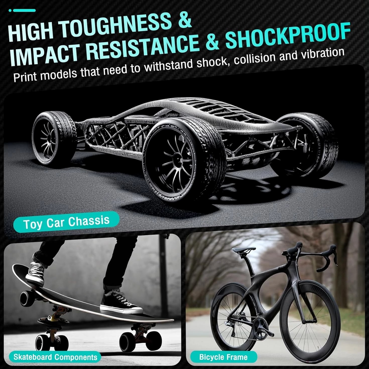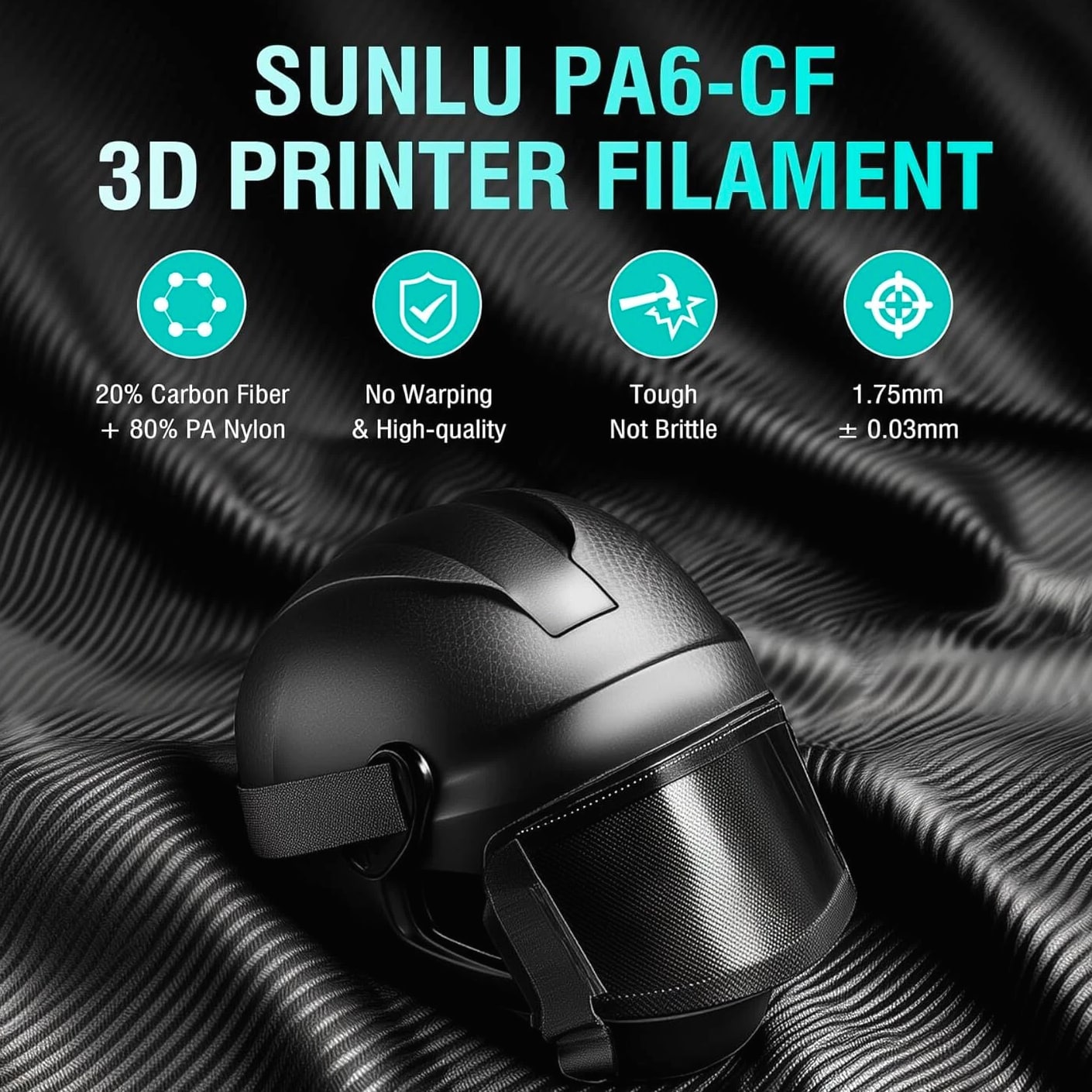 SUNLU PA6-CF 3D Printer Filament 1.75mm Contains 20% short carbon fiber; lightweight; heat deflection temperature is 209°C; high strength and toughness. High strength, prints are strong and durable. High toughness, the prints are resistant to falling and impact. Frosted texture on the surface of the wire. Printing Temperature/Speed: 270-280℃ at 50-100mm/s Platform temperature: 50-70°C with glue application Printing tips: We recommend using wear-resistant nozzles made of tungsten carbide or hardened steel to print engineering materials and replacing them regularly. Engineering materials have high shrinkage stresses and are prone to cracking when printed at low ambient temperatures. Therefore, closed printers or thermal enclosures are required for printing. Open prints have a higher failure rate. Drying Temperature/Duration: 70℃- ≥24h, 80℃- ≥12h, 90℃- ≥10h, 110℃- ≥4h Annealing temperature: 90℃-12H, 110℃-6H, 130℃-3H