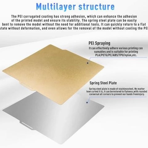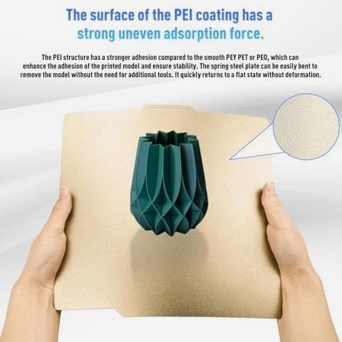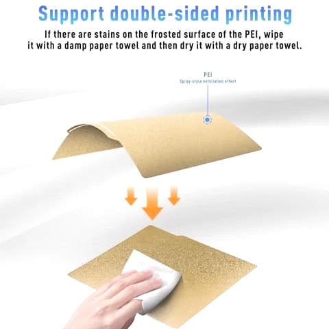 In-Stock Fast Shipping 1-5 Days Quick Delivery Trusted Seller A1 Build Plate, Double-Sided Gold Color PEI Sheet x1 Bed Plate, 3D Printer Surface 257x257 mm p1 Double Side Textured Board, for Bambu Labs a1 Accessories p1s Smooth Pei Plate Product Description Excellent Adhesion - With double-sided spraying PEI spring steel plate, it has strong adhesion to allow the model to adhere in a superior way. You can use either side Easy for Removal: Peel up the top part from the heat bed and bend it to take off models easily as it's flexible Specification Parameters: The size of the building board is 257 * 257mm, the gross weight of a single product is about 1 kg, the package size is 26X26X5 cm In terms of material and design, the build plate is designed with a double-sided PEI coating (textured PEI on the second side) and a stainless steel base with a highly heat-resistant 3M adhesive-laminated PEI film, which balances durability and flexibility. The textured side can provide a frosted texture bottom surface, without additional adhesive can enhance the adhesion of PLA, PETG and other common consumables; glossy side can create a flat bottom surface, suitable for the higher requirements of surface accuracy of the scene, the user is free to switch to double-sided use according to user needs In addition, the building plate is compatible with BAMBU LAB A1 3D printer, with strong adaptability, which can effectively reduce the printing warpage problem and improve the printing stability of large-size models, which is a practical accessory for 3D printing with both function and cost-effectiveness Shipping Returns Payment