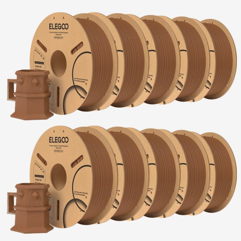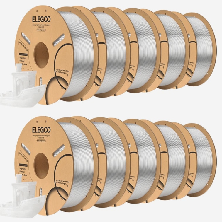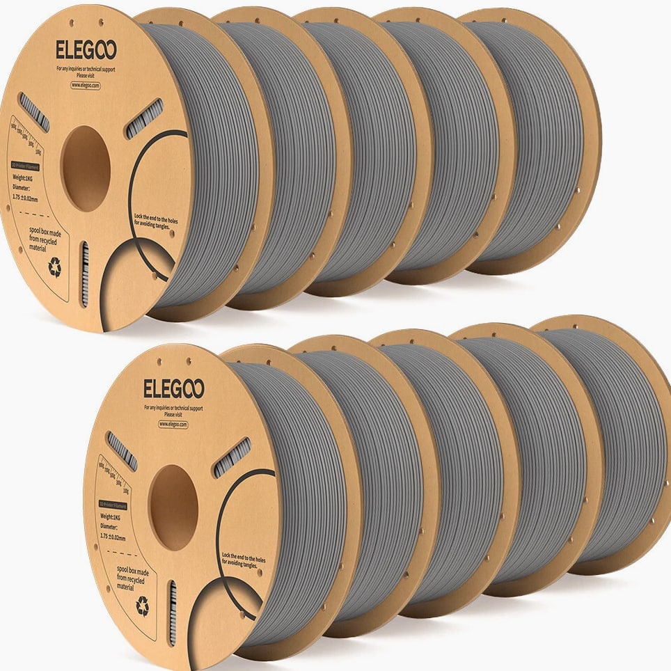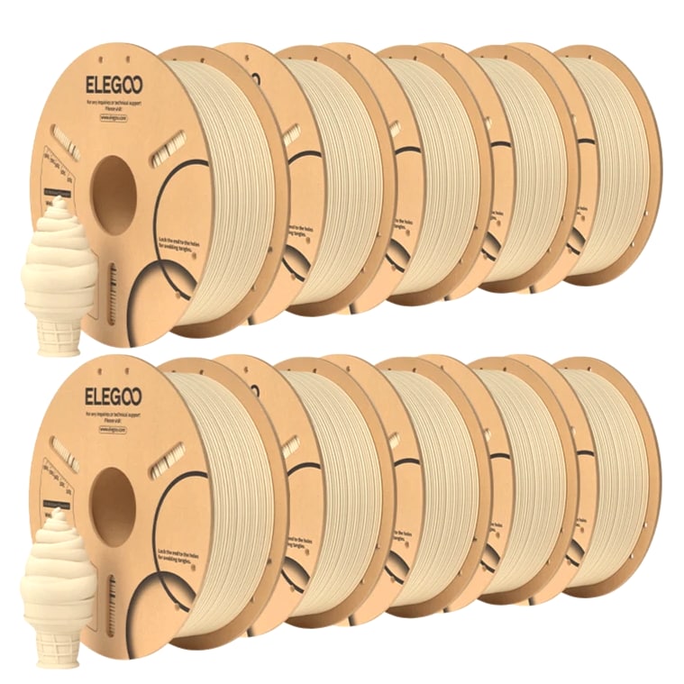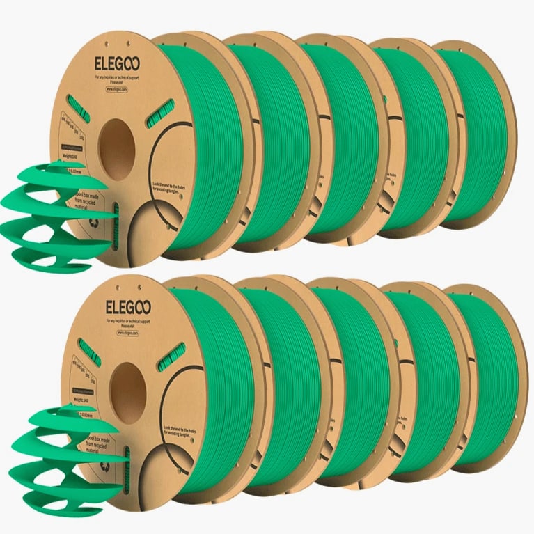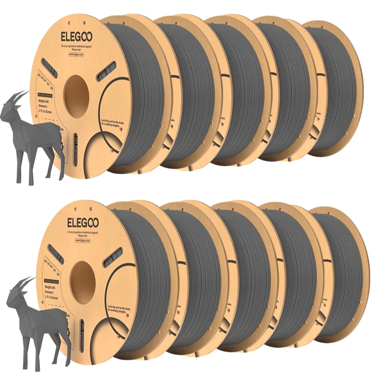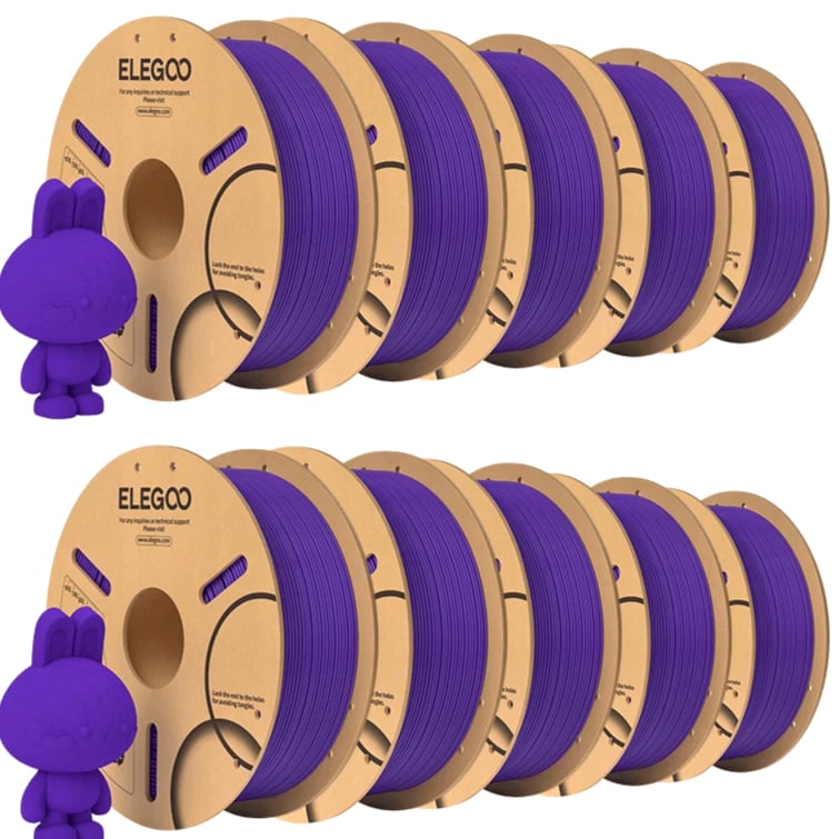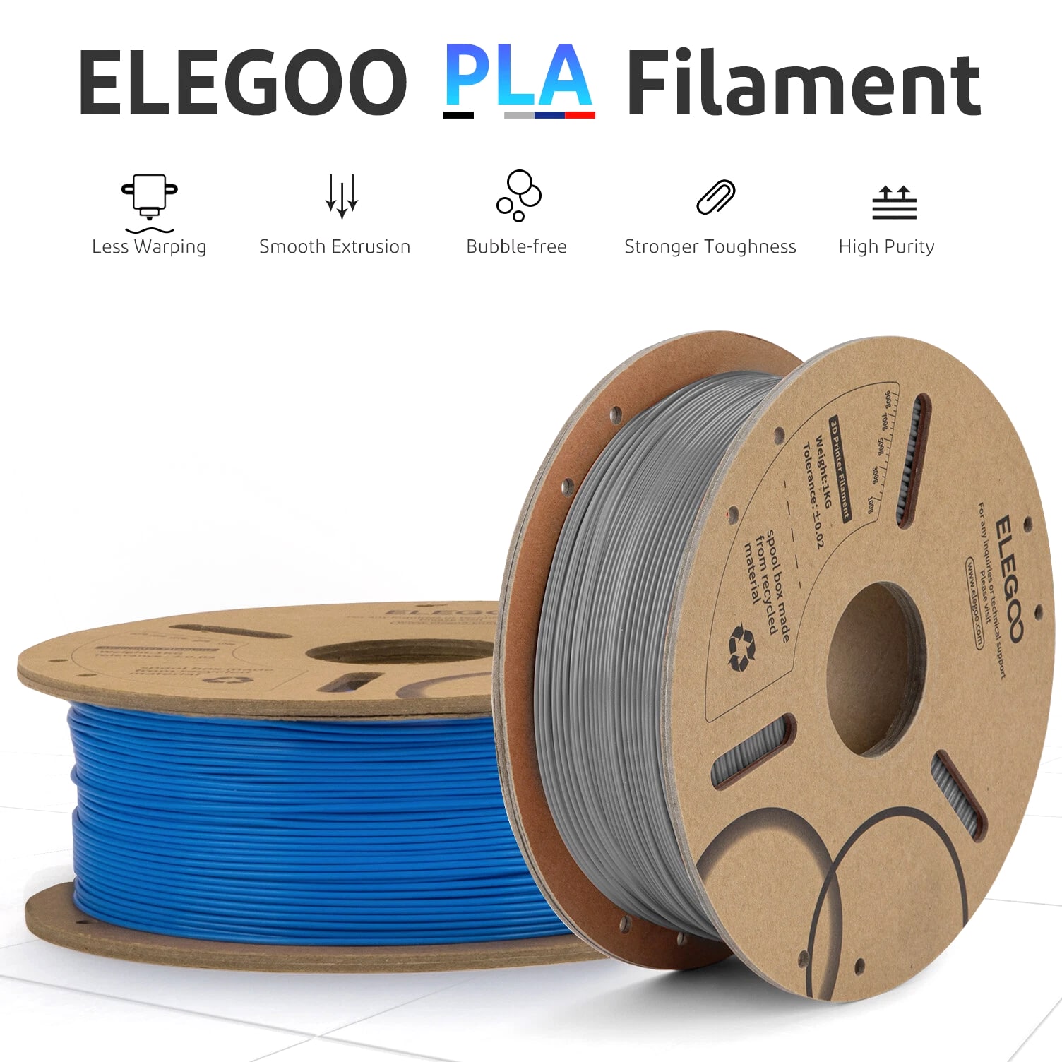 ELEGOO PLA Filament 1.75mm 3D Printer Filament Dimensional Accuracy +/- 0.02mm, Compatible with Most FDM Printers 【High-Quality PLA Filaments】Made of high-quality PLA, a commonly used thermoplastic material featuring lower melting temperature and ease of use, low warp and shrinkage, odorless during printing, and provides a glossy surface finish. 【Clog-Free & Bubble-Free】Designed and manufactured with clog-free properties, superb layer bonding and great fluidity for smooth and stable extrusion. Completely dried for 24 hours before packaging and vacuum sealed with desiccants in the bag to protect the filament from moisture, no clogging and bubbling problems. 【Dimensional Accuracy & Consistency】 Strict tolerances guarantee these PLA filaments of 1.75 mm diameter much smoother and more stable printing with the dimensional accuracy of +/- 0.02 mm; 1 kg spool (2.2lbs). 【Less-Tangle and Easy to Use】Full mechanical winding and strict manual examination to ensure that the line is neatly arranged and less tangled, and to avoid possible snap and line breaking. A larger spool inner diameter design for easy feeding. 【Wide Compatibility】Universal compatibility with most of the common 1.75mm FDM 3D printers on the market due to the high-quality standards in terms of manufacturing accuracy and a small dimensional tolerance of +/- 0.02mm. Technical Specifications Density: 1.20g/Cm³ Melt Index: 14(190°C/2.16kg)G/10min Tensile Strength(X-Y): ≥ 50mpa Elongation At Break(X-Y): 11.2% Bending Strength: 91mpa Bending Modulus: 1913mpa Charpy Impact Strength: 5.4kj/M² Thermal Deformation Temp: 53°C(0.45mpa) Fan: 100% Line Length: (1.75mm) 330-335m Rockwell Hardness: 88 Print Layer Thickness: 0.2mm Recommended Extrusion/Nozzle Temp: 190~220°C(Recommended 205°C) Recommended Heated Bed Temp: 50-65°C Printing Speed: 30-70mm/S Recommendation Platform: PEI/Glass/Fiberglass Board+PVP Glue Stick or Textured Paper