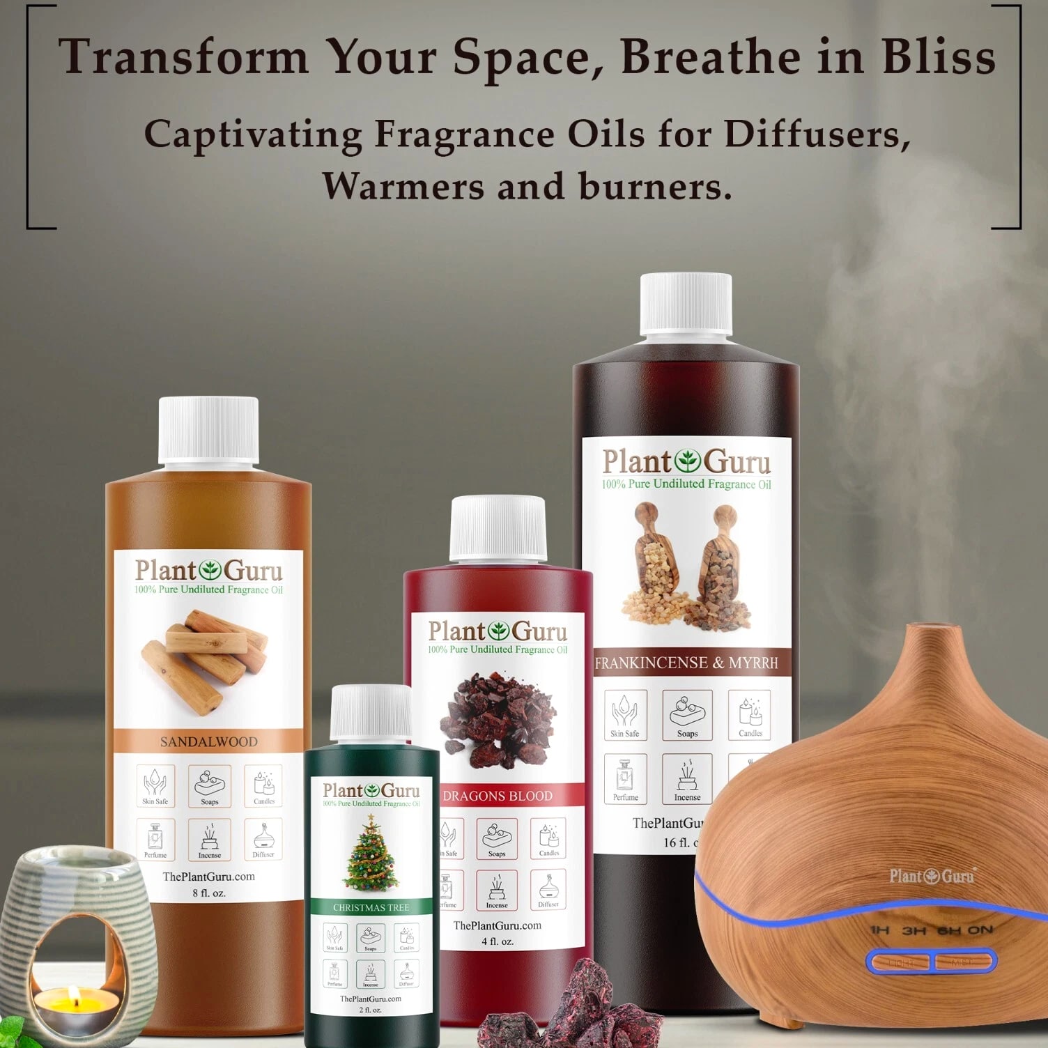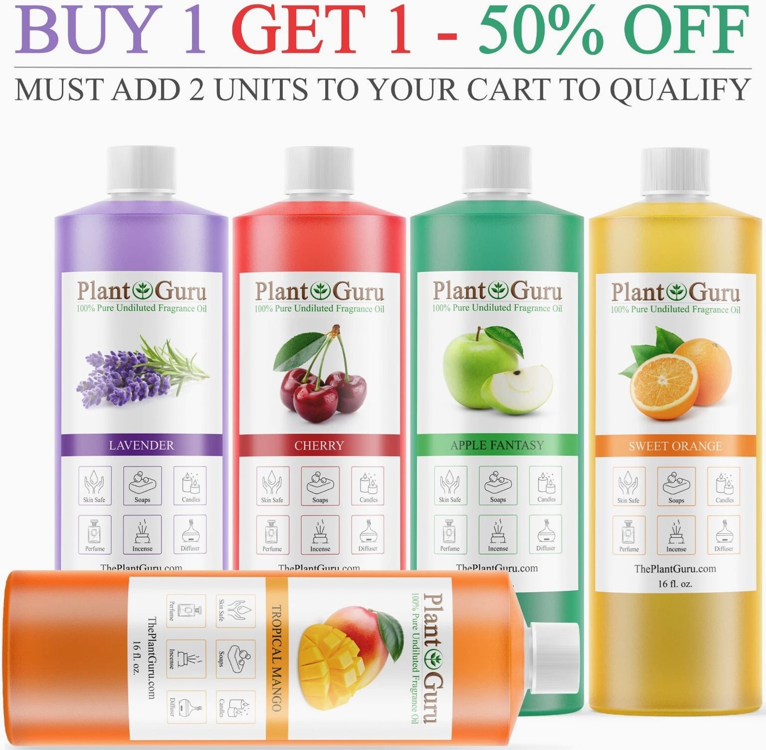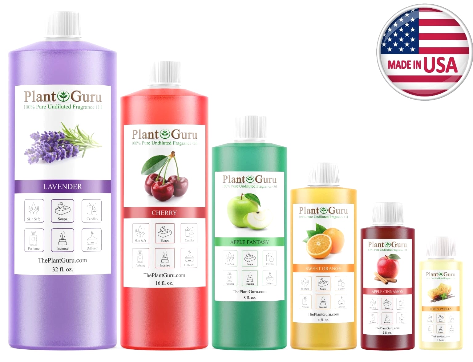 Largest Selection Of Fragrance Oils on 105+ Scents To Choose From Premium Grade Fragrance Oils 16 oz. / 16 ounces *ALCOHOL FREE ** PHTHALATE FREE* 100% CONCENTRATED Candles, Soaps, Incense, Wax tart, Creams, Lotions, Bath Bombs MADE IN USA BUY 1 GET 1 - 50% OFF ✅ PHTHALATE & ALCOHOL FREE - An exotic fragrance that's safe on your skin without harmful chemicals. ✅ DIFFUSER - Add a few drops to any aromatherapy diffuser (steam or reed) and fill your entire room with aromatic bliss ✅ DO IT YOURSELF - Candles, Soaps, and More - Including slime making, perfumes, air fresheners, homemade lotions, cleaning products, aromatherapy, soap making, candle making, bath bombs, potpourri, reed diffusers, and more! ✅ LEADERS IN AROMATHERAPY - Plant Guru has been a leading supplier in the aromatherapy industry since 2011 - Offering high quality essential oils and fragrance oils for a wide range of applications. All our fragrances are custom made right here in the USA. ✅ ONE STOP FRAGRANCE SHOP – Here at Plant Guru we carry a wide variety of pure essential oils, fragrance oils, incense and resins. WHY SHOP ANYWHERE ELSE!!! Choose Scent From Drop Down Menu NEED A BIGGER SIZE? Click on the link below to view our Gallon 8 lbs. Fragrance oils BULK WHOLESALE LINK >> Catalog #1 (A - K) LINK >> Catalog #2 (L - Z) LINK >> FRAGRANCE OILS GALLON 8 lbs. BULK WHOLESALE The oils can be used in candle making, tart making, soap making, other bath & body products, and can be used in warmers/burners or fragrance lamps. LINK >>> VIEW OUR FULL LINE OF FRAGRANCE OILS HERE Check out our store for Pure Aromatherapy Essential Oils Click on Link Below to view our full line of Essential Oils, Carrier Oils and Body Butters Click on Link Below to view our full Butters and Oils list LINK >>> 100% Pure Butters LINK >>> African Black Soap LINK >>> Carrier Oils / Pure Plant Oils LINK >>> 100% Pure Essential Oils, Therapeutic Grade. LINK >>> Pure Essential Oil Blends Why Plant Guru ? We source the finest quality