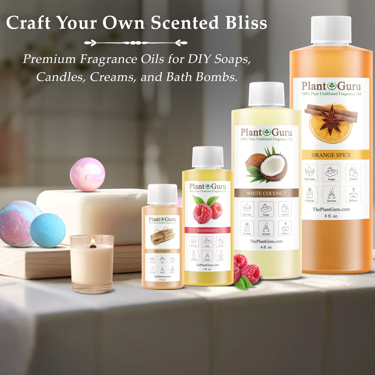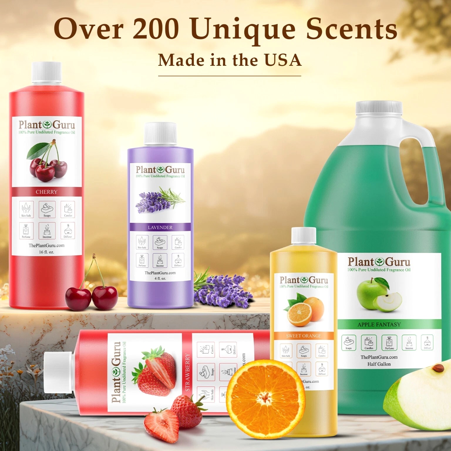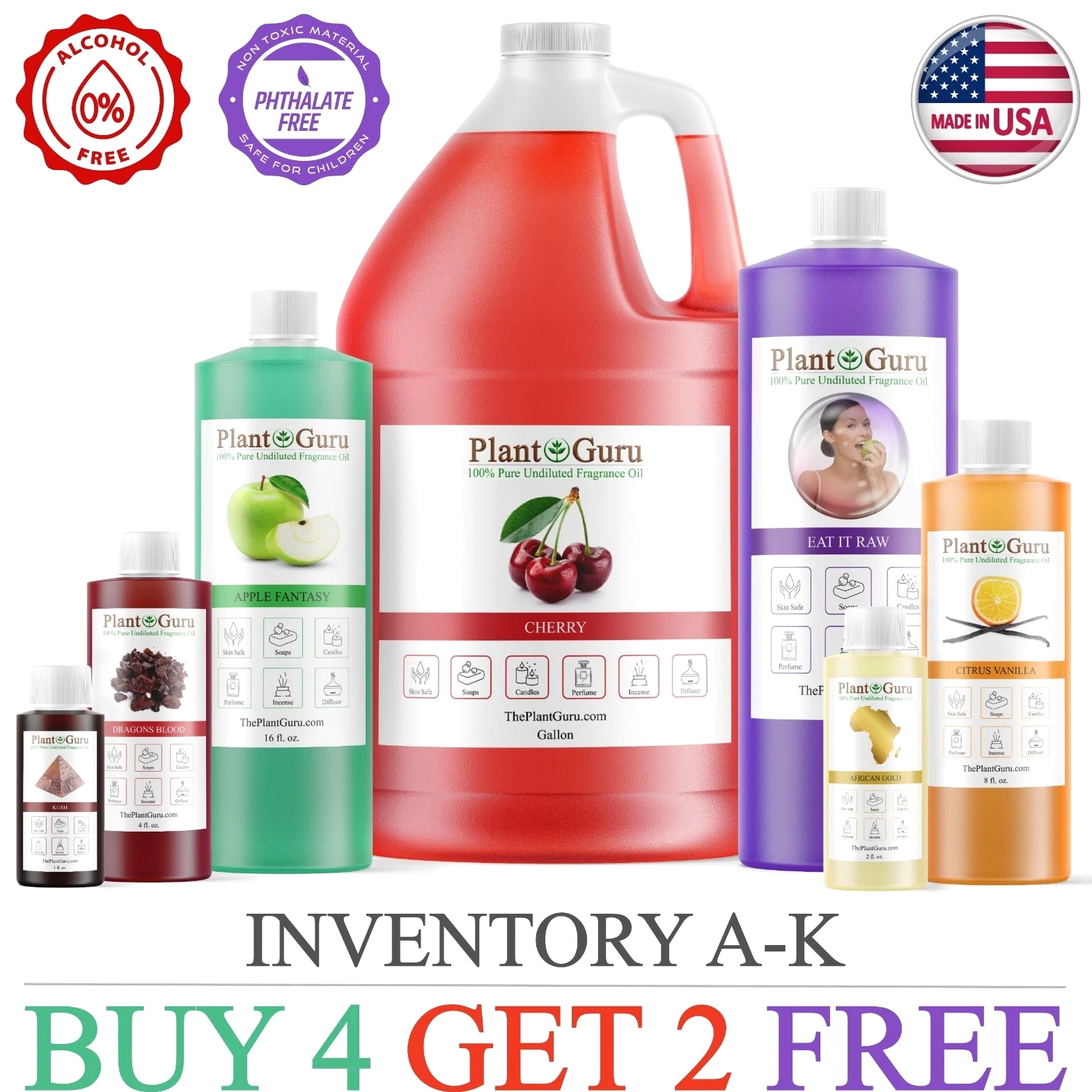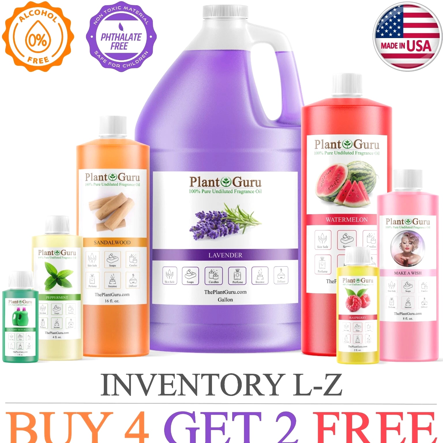 Largest Variety Of Fragrance Oils Available 100+ Scents To Choose From Catalog #1 (A - K) Click On Link To View >>> Catalog #2 (L - Z) Premium Grade Fragrance Oils *ALCOHOL FREE ** PHTHALATE FREE* 100% CONCENTRATED UNDILUTED OILS Candles, Soaps, Incense, Wax tarts, Creams, Lotions, Bath Bombs OVER 150 DIFFERENT SCENTS TO CHOOSE FROM Click On Link To View >>> Catalog #2 (L - Z) MANUFACTURED IN USA Please Read !!! BUY 4 GET 2 FREE Must ADD all 6 items to cart to qualify for this promotion. You will only be charged for 4 at checkout. If you only add 4 to the cart you will only receive 4 MUST ADD 6 TO CART TO QUALIFY ✅ PHTHALATE & ALCOHOL FREE - An exotic fragrance that's safe on your skin without harmful chemicals. ✅ DIFFUSER - Add a few drops to any aromatherapy diffuser (steam or reed) and fill your entire room with aromatic bliss ✅ DO IT YOURSELF - Candles, Soaps, and More - Including slime making, perfumes, air fresheners, homemade lotions, cleaning products, aromatherapy, soap making, candle making, bath bombs, potpourri, reed diffusers, and more! ✅ LEADERS IN AROMATHERAPY - Plant Guru has been a leading supplier in the aromatherapy industry since 2011 - Offering high quality essential oils and fragrance oils for a wide range of applications. All our fragrances are custom made right here in the USA. ✅ ONE STOP FRAGRANCE SHOP – Here at Plant Guru we carry a wide variety of pure essential oils, fragrance oils, incense and resins. WHY SHOP ANYWHERE ELSE!!! NEED A BIGGER SIZE? Click on the link below to view our Gallon 8 lbs. Fragrance oils BULK WHOLESALE LINK >> Catalog #1 (A - K) LINK >> Catalog #2 (L - Z) LINK >> FRAGRANCE OILS GALLON 8 lbs. BULK WHOLESALE These oils can be used in candle making, tart making, soap making, other bath & body products, and can be used in warmers/burners or fragrance lamps. LINK >>> VIEW OUR FULL LINE OF FRAGRANCE OILS HERE Check out our store for Pure Aromatherapy Essential Oils Click on Link Below to view our full line of Essential Oils, Carri