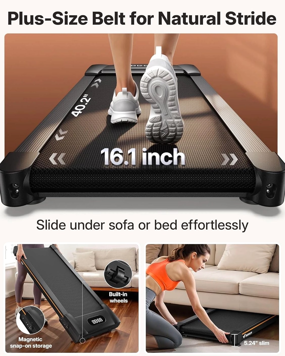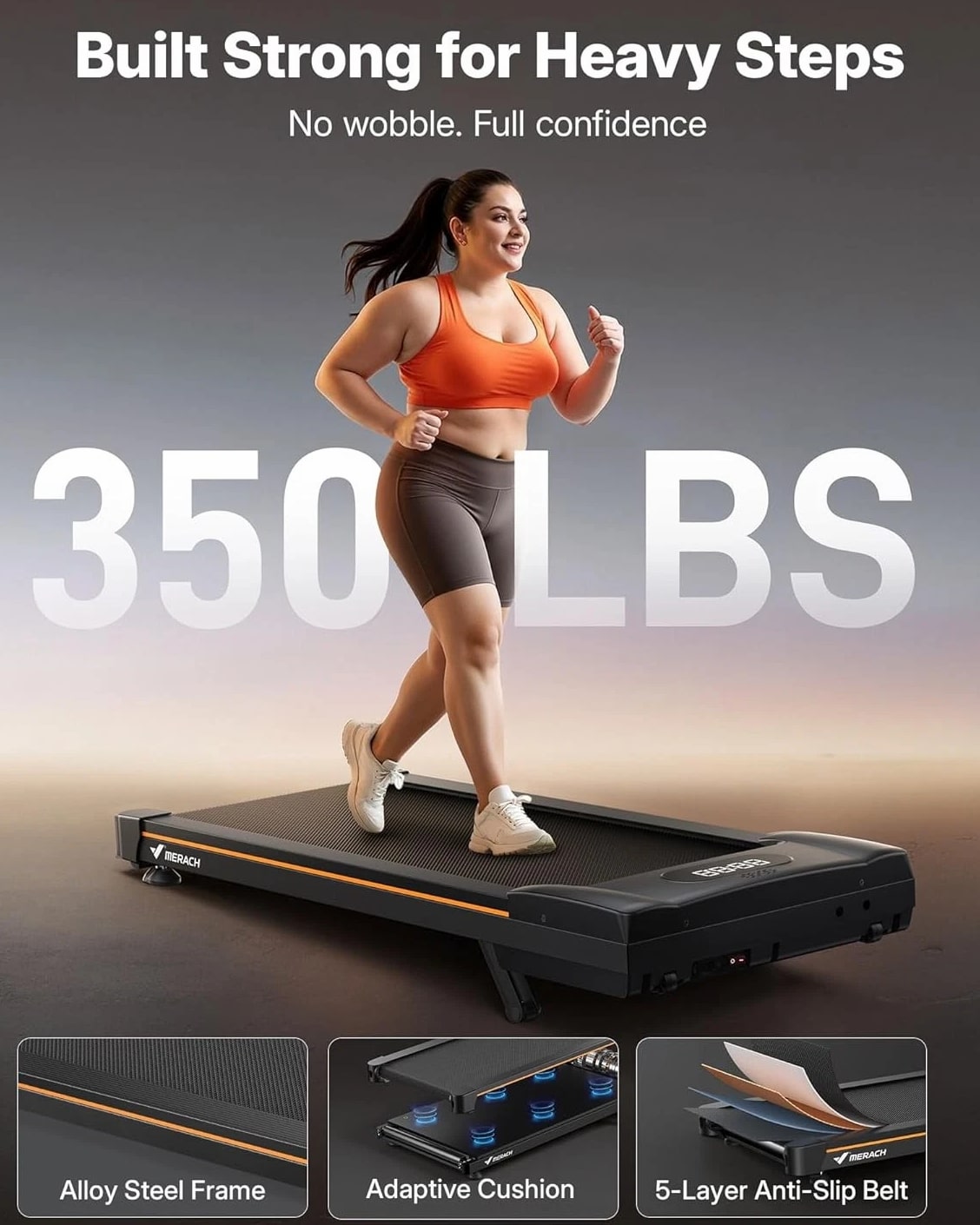⛰️ 10-Level Auto Incline – Outdoor Hiking at Your Workspace Turn flat walks into real uphill sessions. Incline helps protect your knees, while higher levels activate more muscles for up to 3× fat burn efficiency. Adjust incline remotely — no need to stop or step off. Enjoy the feel of outdoor hiking, right from your workspace. 💪 350 lbs Heavy-Duty Stability – Rock-Solid Confidence Engineered for total confidence. The upgraded steel frame and 5-layer anti-slip running belt provide steady steps — no wobble, no slide. Tested to support 350 lbs for lasting durability and peace of mind. Perfect for every body type. 🔇 40dB Whisper-Quiet HushMotor – Day or Night Workouts Walk freely, day or night. The HushMotor brushless drive keeps noise under 40dB — quiet enough for babies, pets, and shared apartments. Focus on work, meetings, or relaxation without a single distraction. 🎵 Bluetooth Speaker + MERACH App Integration – Walk to Your Rhythm Stream your favorite playlists or podcasts through the built-in Bluetooth speakers. Connect with the MERACH App to track calories, distance, and progress. Syncs seamlessly with Apple Health and Google Fit for complete data tracking. Motivation made visible. 📦 Compact for Work & Home – Fits Your Full Day From your desk to your living room — one treadmill fits your entire day. Its compact 40.2" × 16.1" frame rolls easily under desks or into corners after use. Stay active while working, studying, or watching TV — fitness that truly fits your life.