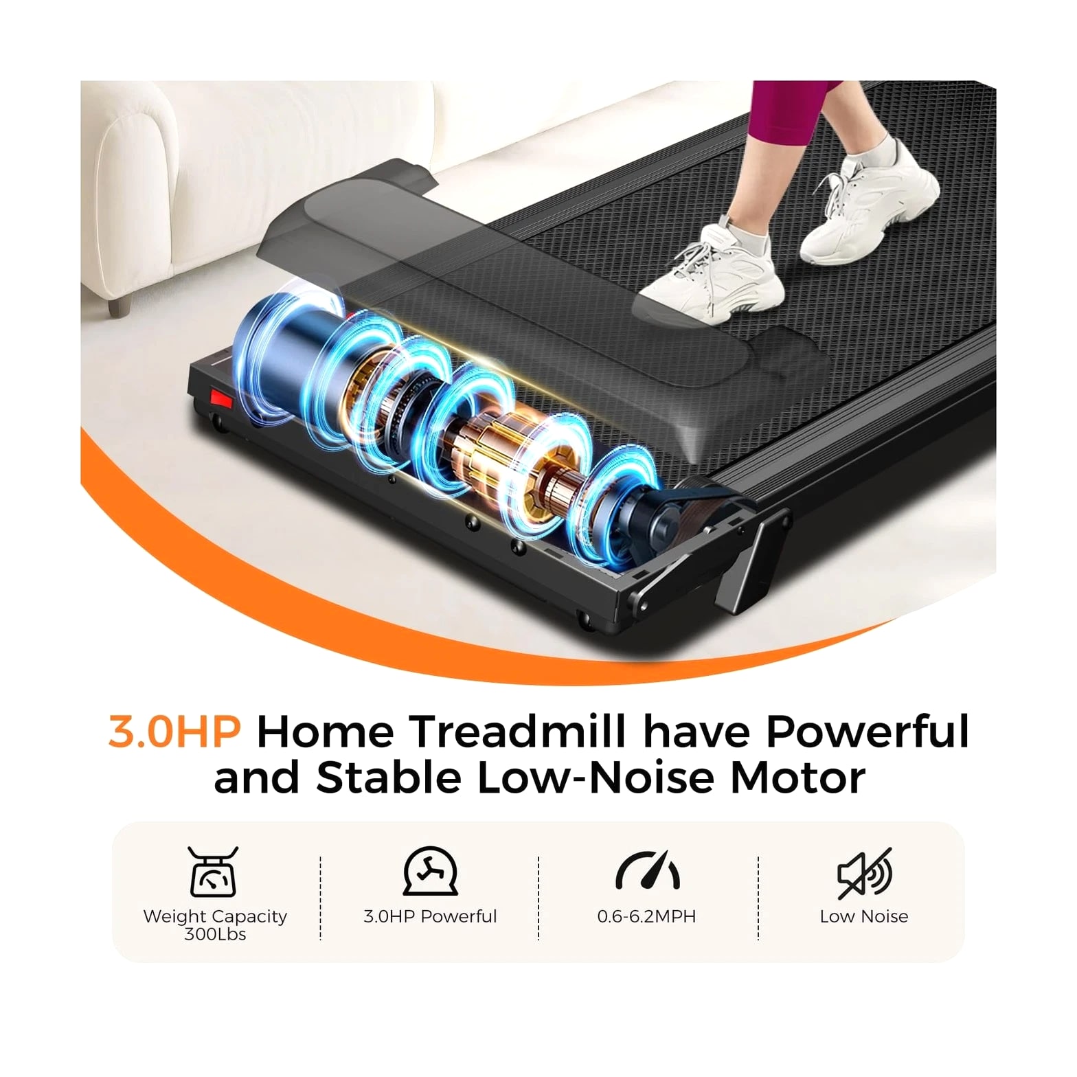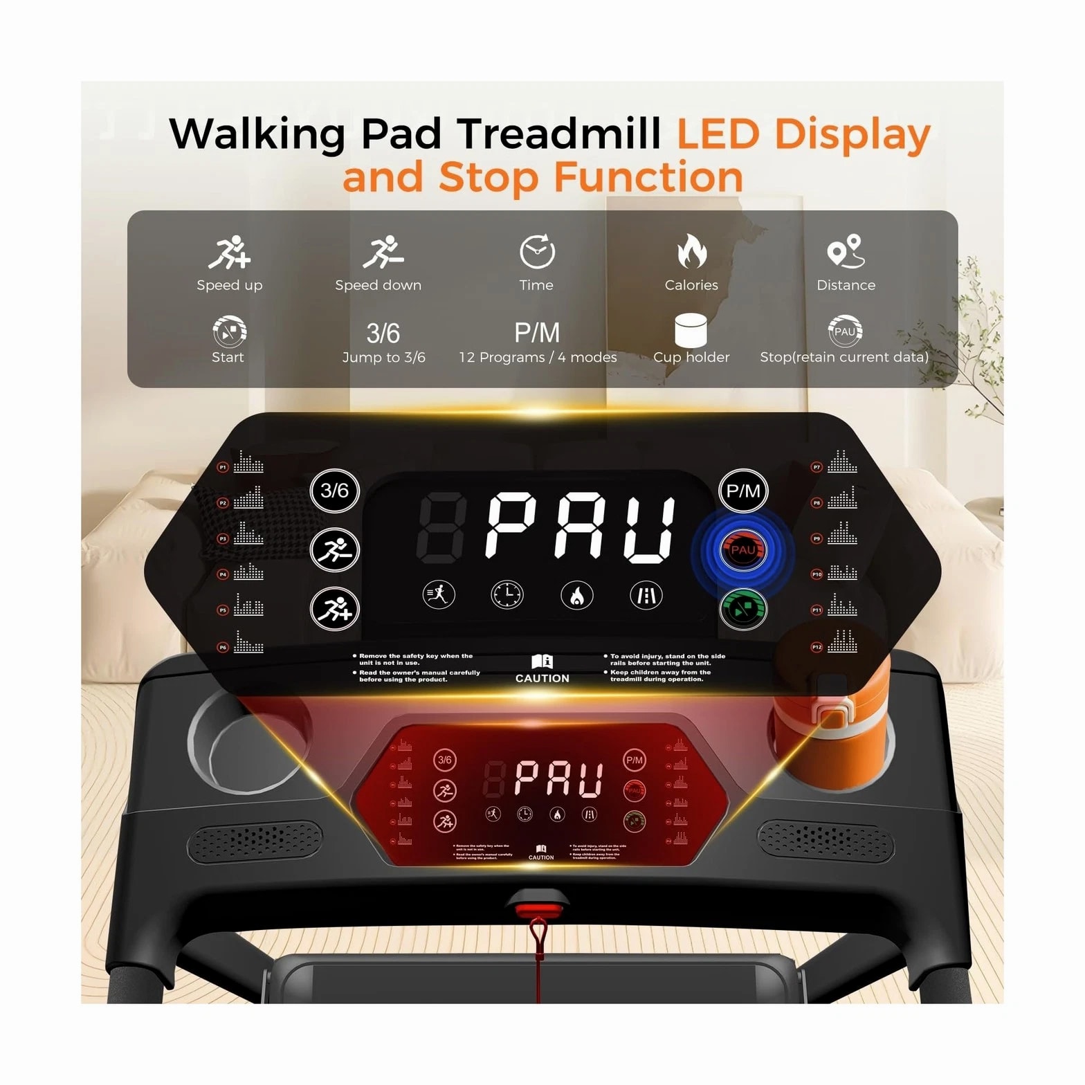 Aiteid Treadmill with Incline, 3.0HP Small Treadmills for Home, Portable Electric Treadmill with Handles, Lightweight Walking Pad, Compact Running Treadmills, Walking Pad with Handle, 300LBS Capacity Description Treadmill with Incline 3.0HP Small Treadmills for Home Portable Electric Treadmill with Handles Lightweight Walking Pad Compact Running Treadmills Walking Pad with Handle LED Display 300LBS Capacity Features: Treadmill with Incline Quiet Brushless Motor: The walking pad treadmills featuring a sturdier steel frame construction has undergone rigorous testing; continuous 8-hour operation tests ensure a stable and durable product. The treadmill is equipped with a brushless motor with a maximum power of 3.0HP and can withstand users up to 300 lbs. This portable treadmill runs smoothly at speeds of 0.6-6.2 MPH. The internal noise reduction layer effectively controls the noise level at 55 dB, providing a smoother sports experience. LED Display and Pause Function: The LED display of the walking pad treadmill clearly shows time, calories, step, speed and distance, keeping your movement data at a glance. The P button on walking pad treadmill has 12 preset programs, and PAU button pauses the treadmill operation (retain current data), providing different intensity of exercise and allowing you to improve and adjust your workout program. Treadmill with 12% Incline: This walking pad treadmill has a manual incline of 12%, which can be increased to 12% with the small black foot pads to simulate realistic walking and running hill climb scenarios. This incline function not only effectively boosts calorie burn, but also adds fun and challenge to the user's workout. This feature is particularly suitable for users who wish to workout at home, helping them to achieve more efficient training results in the same amount of time. Shock-Absorbing Running Belt Protects Joints: This treadmill with handle comes with a durable six-layer running belt designed to increase shock absorption and provide non-slip functionality.