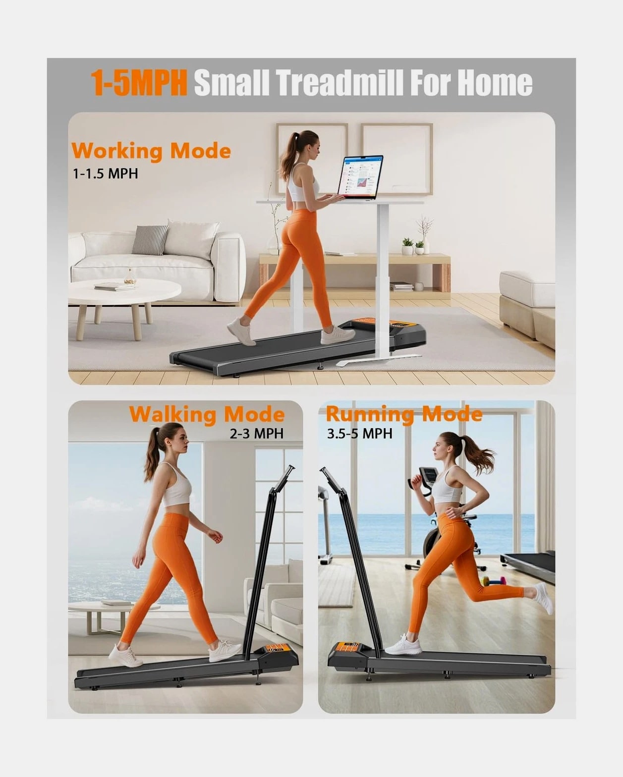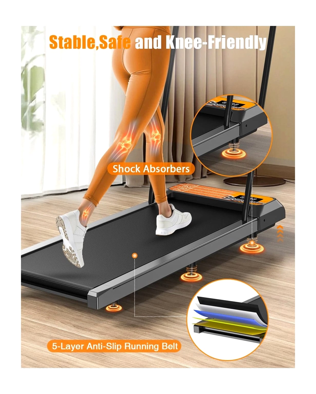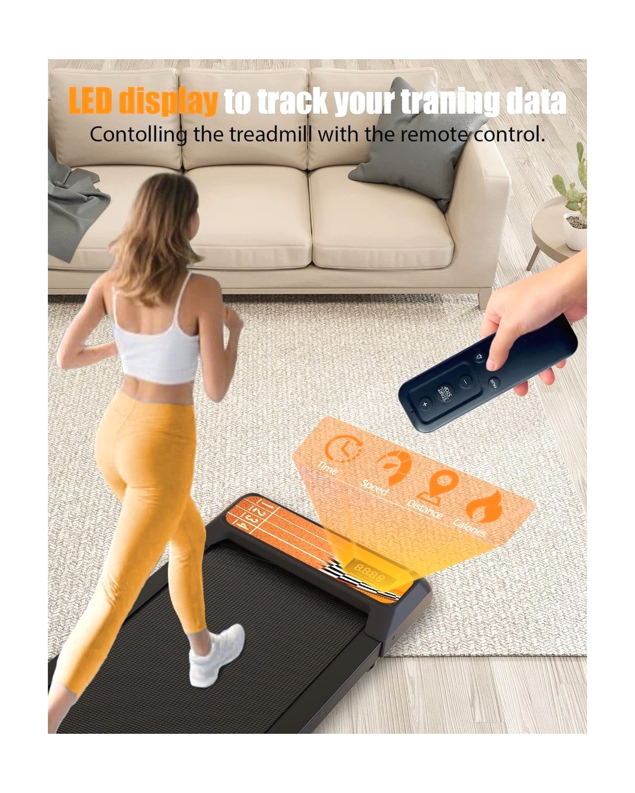 HCOIW Walking Treadmill Pad with Incline - Portable Under Desk Treadmill, Walking Mat with Handle Bar, 2.5HP Low Noise, 2 in 1 Treadmills for Home Office, Remote Control with LED Screen Description HCOIW Walking Treadmill Pad With Incline and Handle Bar – Compact, Lightweight, Quiet, and Easy to Store. This treadmill is the ideal fitness companion for the modern home. Compact and quiet, it easily stores and takes up little space. Its 8% manual incline and 1.0-5.0 mph speed allow you to comfortably walk, jog, or run without disturbing those around you. The intuitive LED display and remote control make your workout experience smooth and effortless. Whether you're working from home or just busy with your daily routine, this small walking treadmill pad will help you stay active and easily start a healthy lifestyle. Features: 8% Adjustable Incline and 2.5HP Quiet Motor: This walking treadmill pad with incline features a built-in 2.5HP quiet motor, allowing you to exercise without disturbing others. It can support a maximum weight of 270 lbs. The 8% incline adjustment simulates an uphill climb, adding a challenge to your workout while burning calories; perfect for your home workout needs. 1.0-5.0mph Speed Walking Treadmill Pad With Handle Bar: Our walking treadmill pad with incline offers a speed range of 1 to 5 miles per hour, perfect for walking, jogging, and running. With our portable walking treadmill pad with handle bar, you can meet your work-life balance needs and stay active all day. Wider Running Belt and Shock-Absorbing Design: The small treadmills for home are equipped with a spacious 15*35.4-inch running area, which has enough space to satisfy you. It is also equipped with a 5-layer non-slip running belt, silicone shock absorbers and soft rubber pads to help reduce impact and noise, making your running quieter and more stable, ensuring your knees, muscles and joints are protected while running. Remote Control and LED Display: This walking small pad with handle bar features intuitive controls for convenient operation.