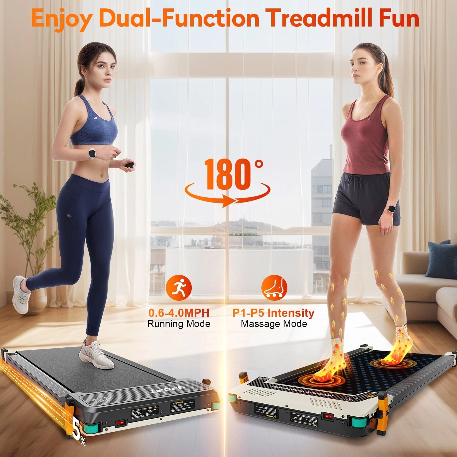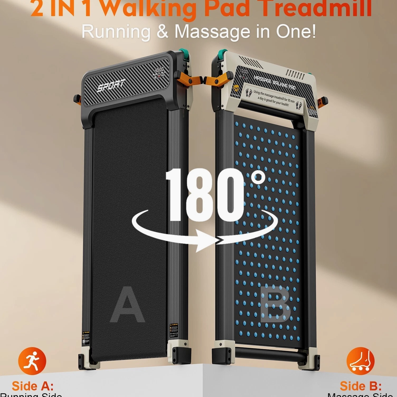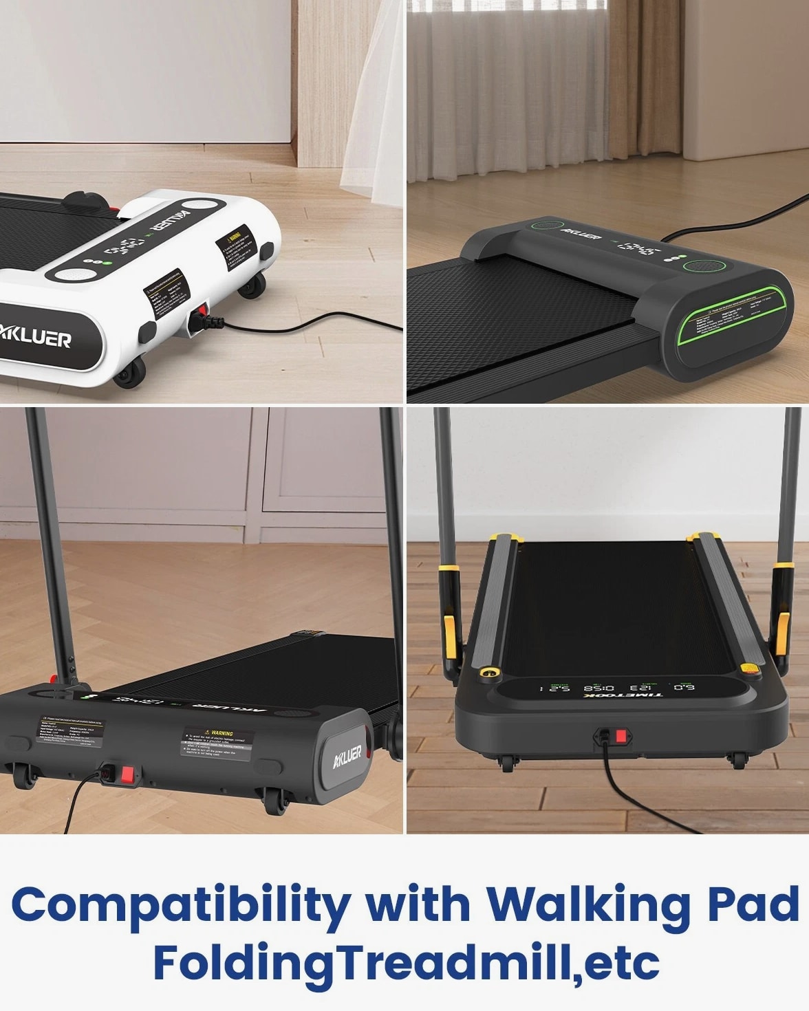 Akluer Walking Pad with Incline, Dual-Sided Walking Pad & Foot Massage Used About this item--Dual-Function Treadmill Dual-Function Treadmill: Walking pad treadmill can be used on both sides. Side-A walking pad with incline. Side-B treadmill with foot massage. After you finish your running workout, our treadmill effectively relieves fatigue and muscle tension, alleviates foot soreness, and provides a soothing massage effect for relaxation Running & Massage in One: On the Side-A, our treadmill offers a running platform perfect for your daily workouts. Its stable design ensures a smooth experience, helping you burn calories and tone your legs effortlessly. Flip it to the Side-B, where a massage walking pad. It effectively relieves fatigue, reduces muscle tension, and alleviates foot soreness after a long day. With our dual-function treadmill, elevate your fitness routine and experience double the benefits Quite Portable Treadmill: Under desk treadmill with a 2.5 hp powerful motor. Running side can reach 0.6-4.0 mph. Massage side P1-P5 intensity adjustment. Maximum weight capacity of 330LBS and a running area size of 35.43" x 15.7". It's suitable for everyone's exercise needs, so as to achieve exercise and relaxation purposes LED Display & Remote Control: Incline 2 IN 1 treadmill has built-in LCD screens on both sides, you can track calories, speed, time, distance and massage intensity in real time. The remote control allows you to easily adjust the speed and gear you want while using the treadmill, meeting a variety of plans. Portable treadmill with built-in wheels making it easy to move around About this item--power cord Universal compatibility: The power cord is suitable for most models of treadmills, providing a perfect charging experience. Please check the charging interface of the product when purchasing to ensure compatibility. Power Cord Details: Replacement power cord is 8 ft long, 300V 3-prong charger cord, allowing you to place the treadmill in any position to a