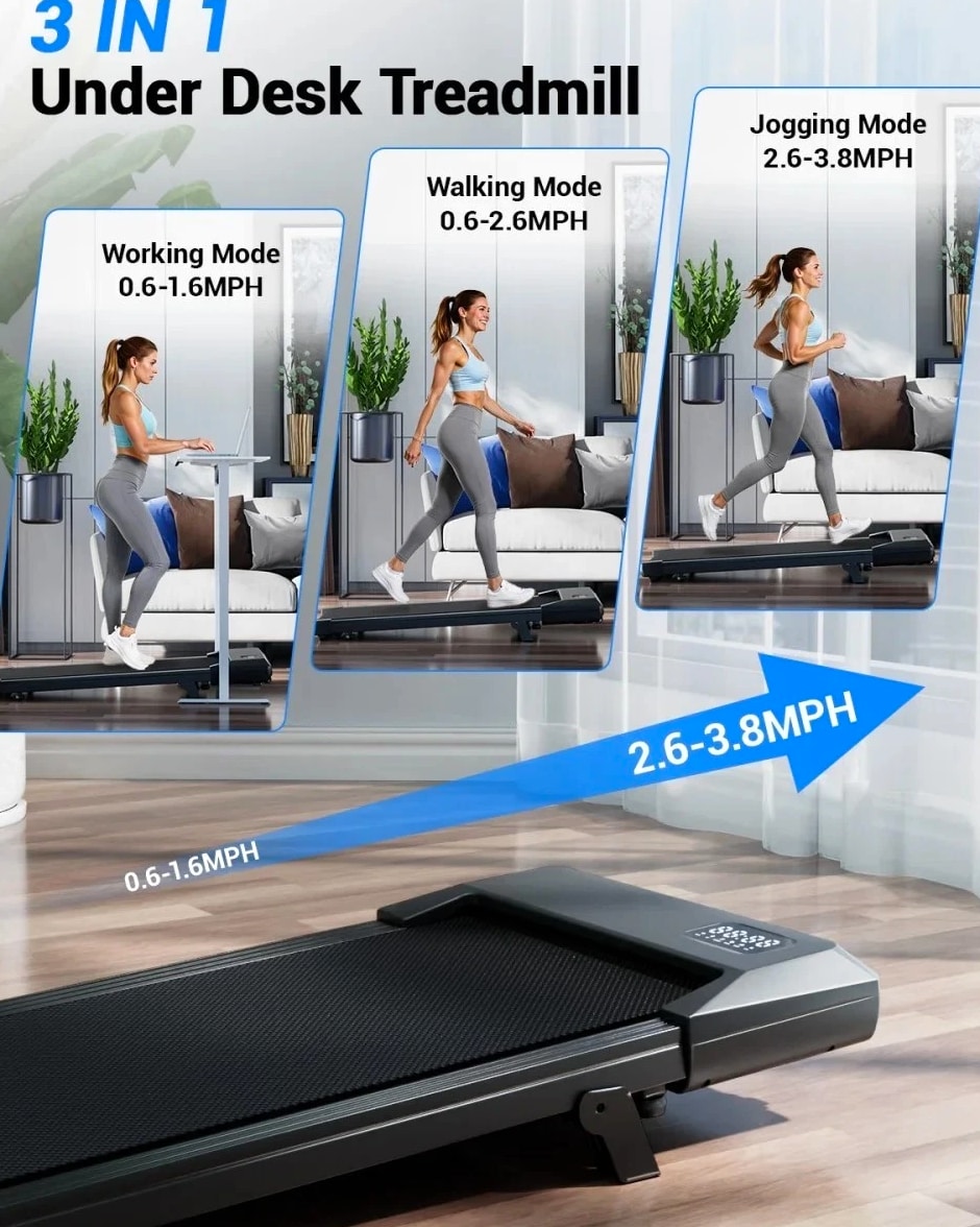 Foldable Under Desk Treadmill 2.5HP Walking Pad, 300lbs LED Remote Quiet