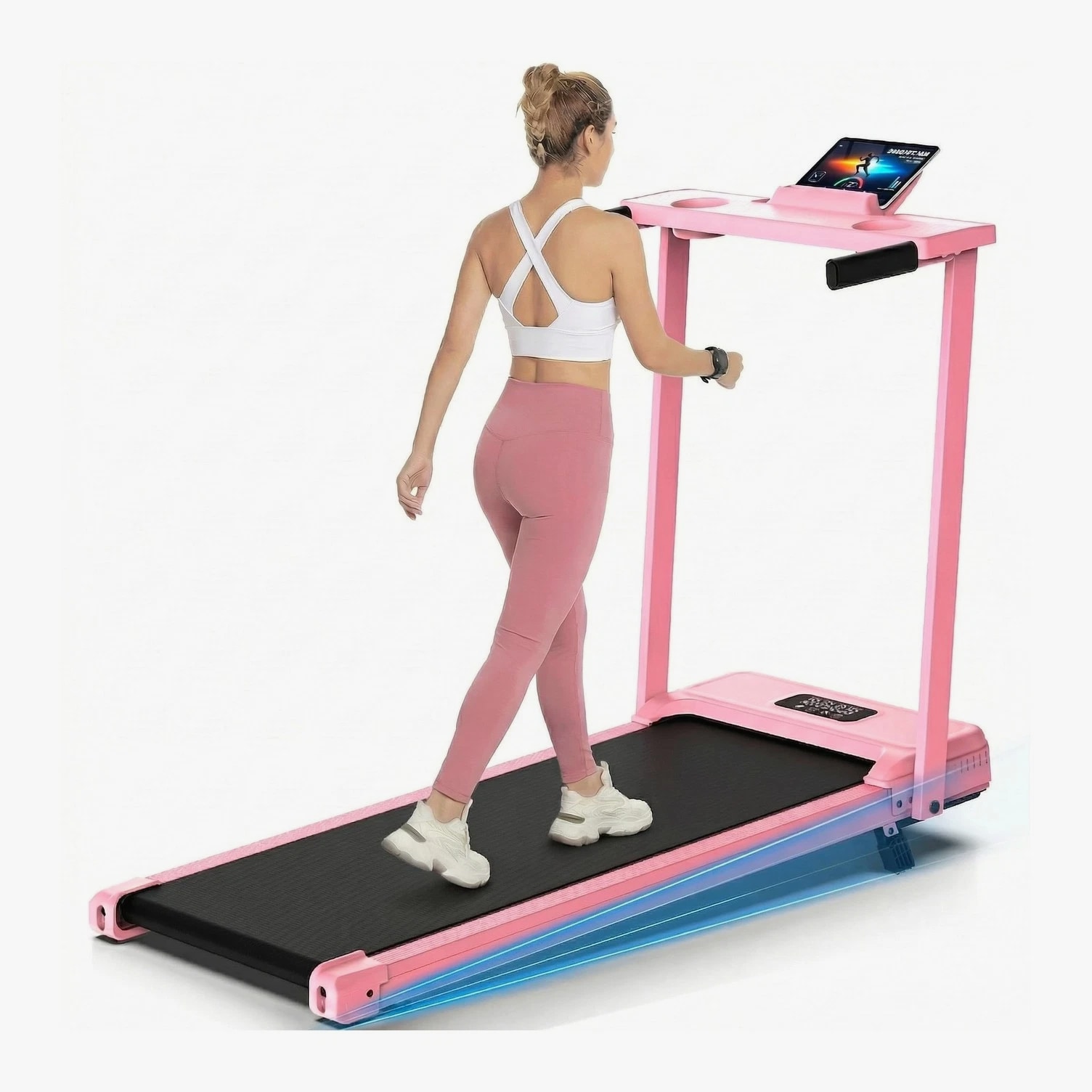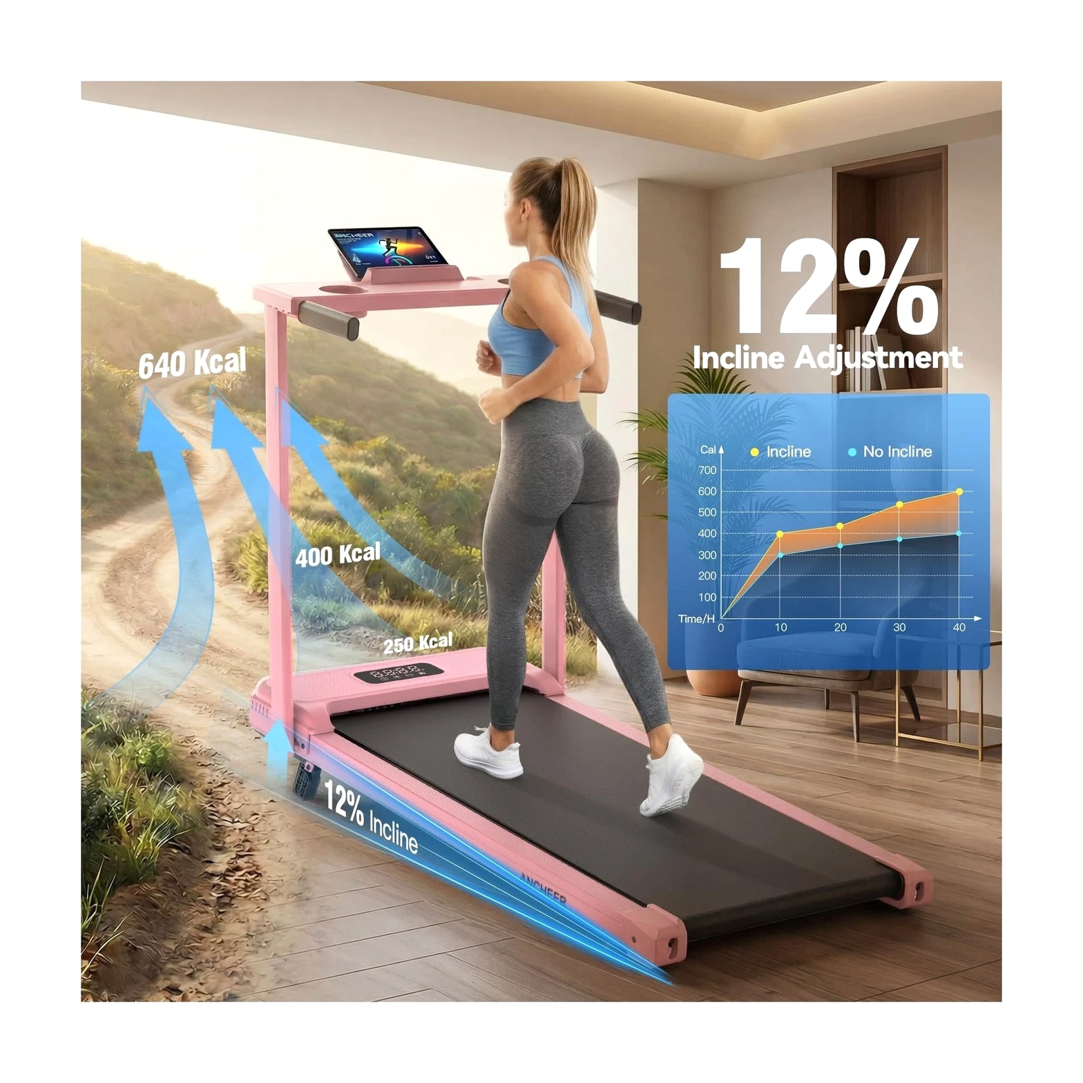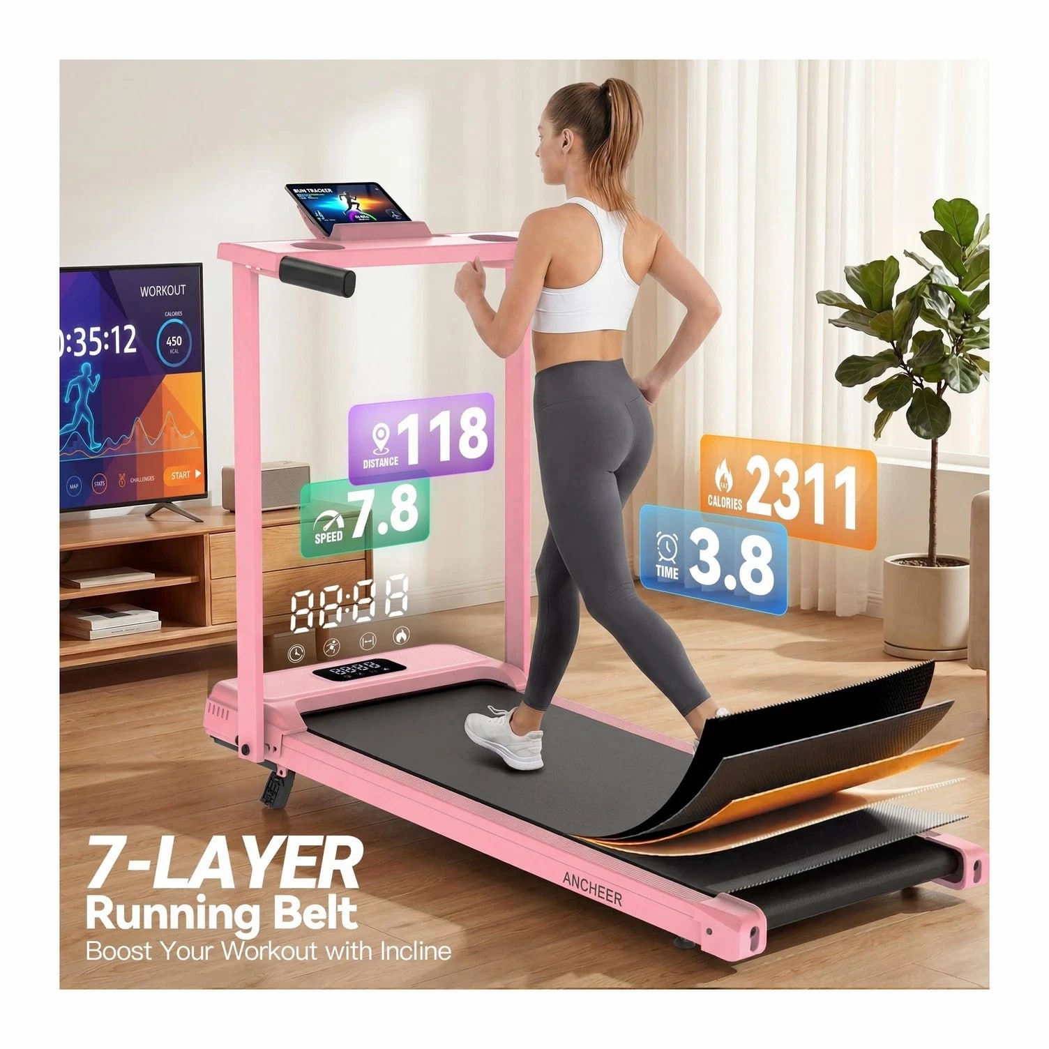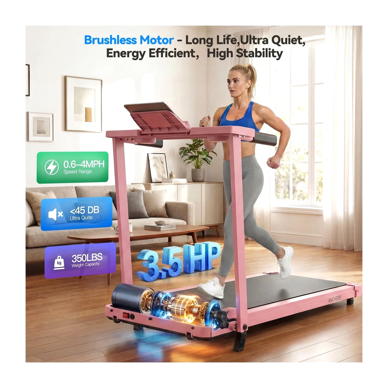 FUNMILY 3.5HP Walking Pad Incline Treadmill with Desk & Handle Bar, Heavy Duty 350 lbs Weight Capacity Portable Treadmill for Home and Office, Remote Control & LED Display Description Features: 3.5HP Quiet Brushless Motor: This treadmill features a robust steel frame structure, rigorously tested with 8 hours of continuous operation to ensure stability and durability. Powered by a 3.5HP brushless motor, it supports up to 350 lbs. The portable design offers smooth operation with a speed range of 0.6-4 MPH. A built-in noise reduction layer keeps sound levels below 45 dB, delivering a quieter, smoother workout. Treadmill with 12% Incline: This walking pad treadmill features a 12% manual incline adjustment function. Users can increase the incline to 12% using the black foot pad to simulate real walking and running uphill scenarios. The incline adjustment not only effectively boosts calorie consumption but also adds fun and challenge to workouts. This feature is particularly suitable for home exercisers, helping them achieve more efficient training results. LED Display and Preset Programs: This portable treadmill is equipped with a high-quality LED display, allowing you to easily track your workout progress. The bright and clear screen shows essential metrics such as speed, distance, time, and calories burned. Additionally, it comes with 12 built-in exercise programs, offering variety to meet different fitness levels. Shock-Absorbing Running Belt Protects Joints: This treadmill features a durable 7-layer running belt designed to enhance shock absorption and anti-slip performance while prolonging its service life. It is equipped with two silicone shock absorbers, four cushioning pads, and non-slip handrails. The thickened handles work in synergy with the shock absorption technology to reduce knee pressure by 40%. Walking Pad with Removable Desk Workstation: The treadmill