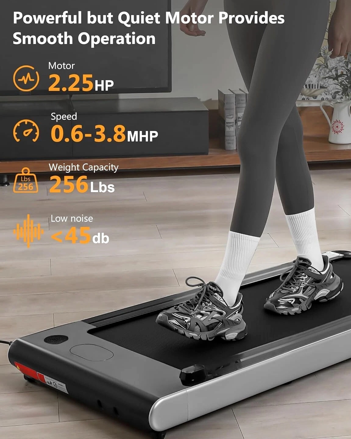 Walking Pad Treadmill with Incline & Remote Control | 2.25HP Under Desk Treadmill, 256 LBS Capacity & No Assembly Required | Portable for Home, Office & Small Spaces 🔇 Super Quiet 2.25HP Motor with Shock Absorption – Experience peaceful workouts with our under desk treadmill, featuring a quiet motor and shock-absorbing running belt that won't disturb your household. 🧳 Space-Saving & Easy Storage – This compact walking pad treadmill features lightweight construction and transport wheels, sliding easily under furniture like sofas or beds to maximize home space. ⚡ True Plug & Play Operation – Start walking minutes after unboxing! Our walking pad requires zero assembly, making it the perfect gift for busy families, parents, and home office workers. 🏠 Dual-Use Under Desk & Jogging Design – Versatile enough for walking while working at 0.6-3.8 MPH, yet spacious enough for jogging. The 43.5" x 16" non-slip belt offers security for both modes, making it one of the most adaptable treadmills available. 🛡️ Customer-First Support Promise – Your satisfaction is our priority. We offer professional service with a commitment to respond to all inquiries within 24 hours, ensuring a confident purchase.