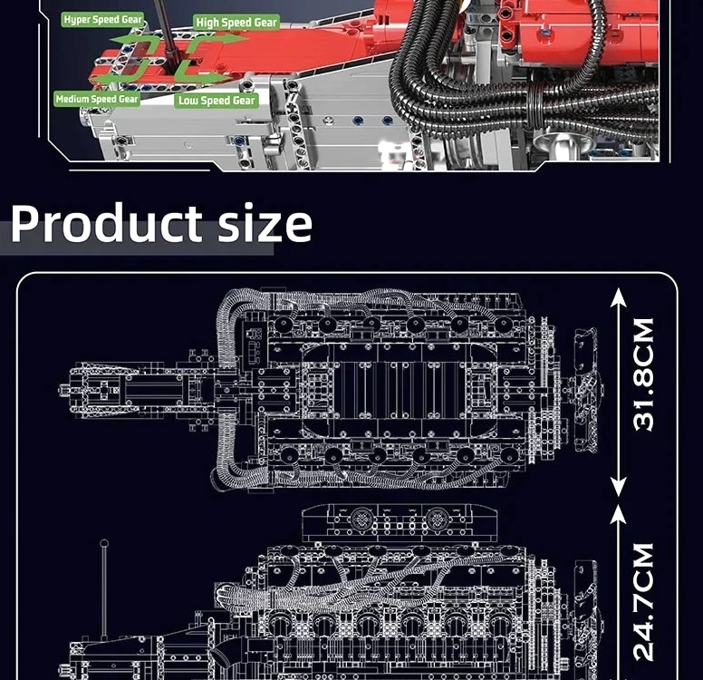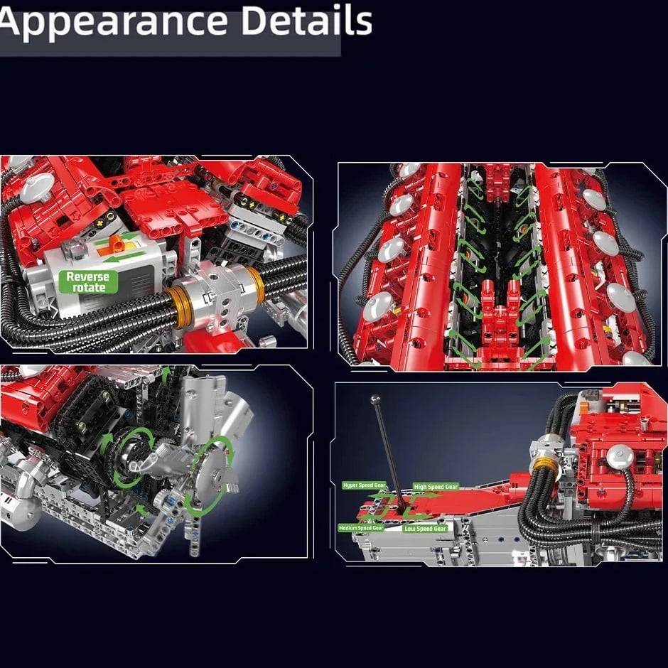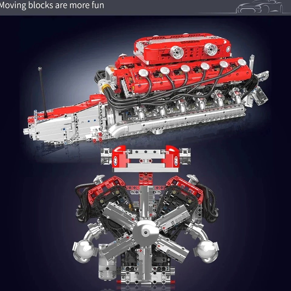 MOULD KING 10169 V12 Engine Model - 3472 Pcs Motorized Building Kit for Adult Car