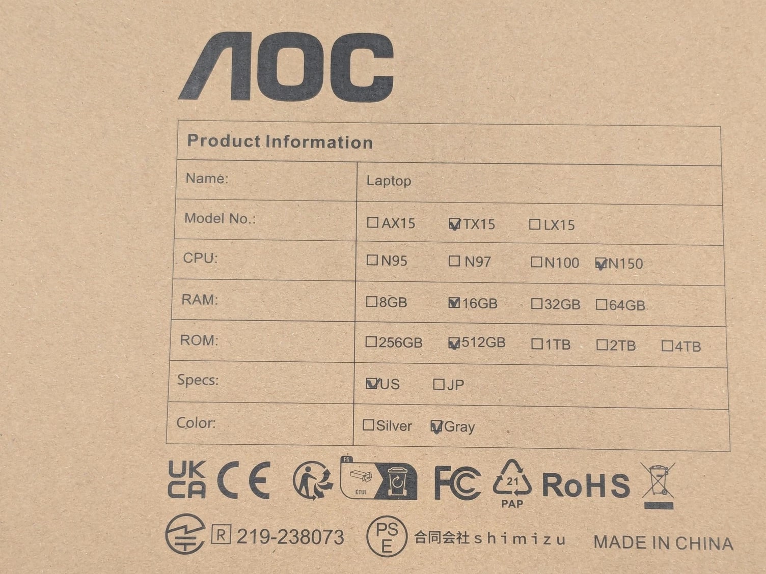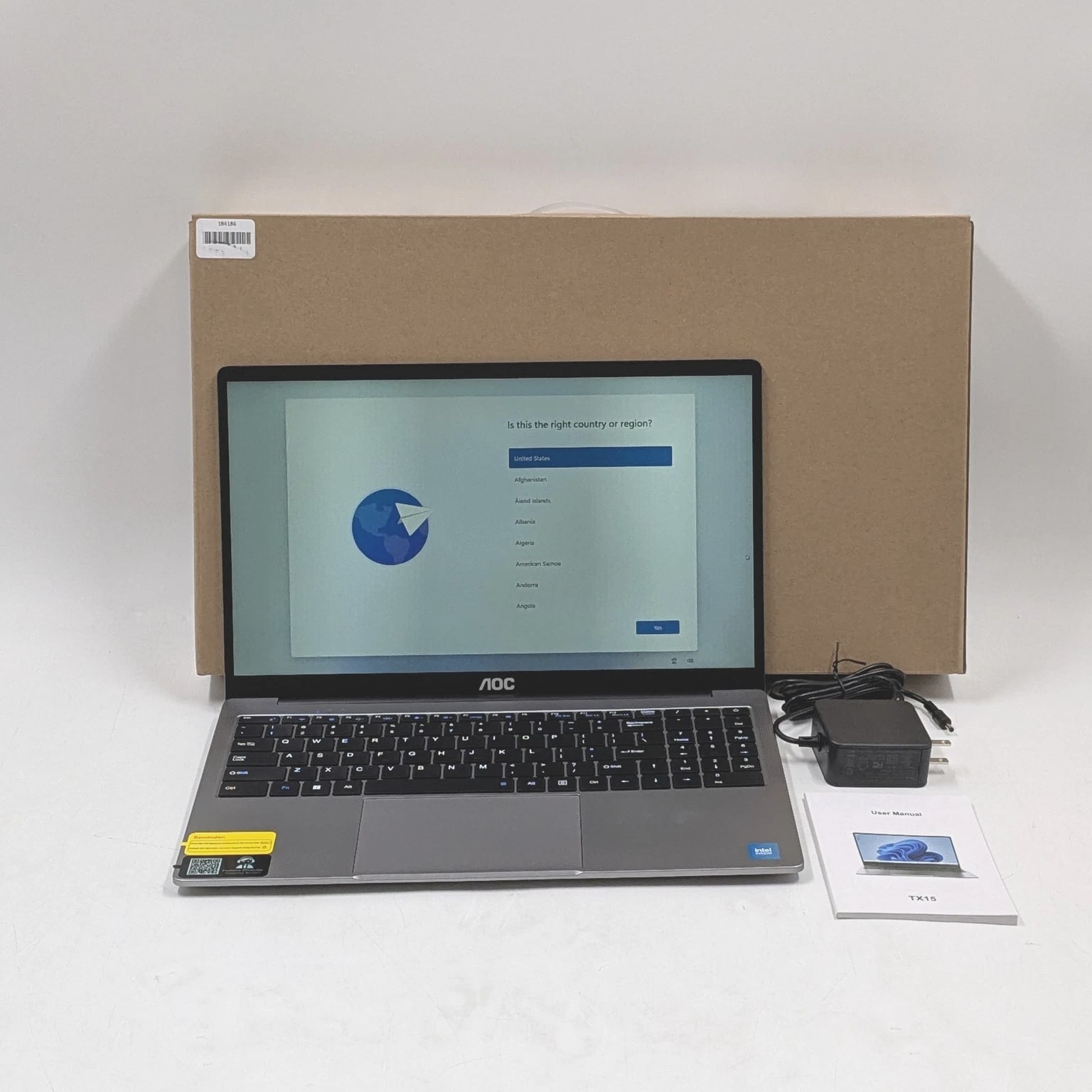 Open box. AOC TX15 15.6 inch Intel N150 16GB DDR4 512GB SSD Windows 11 Home in Gray Condition: Open box The item is in excellent, new condition with no wear. The item may be missing the original packaging or protective wrapping, or it may be in the original packaging but not sealed. The item includes original accessories. The item may be a factory second. Photos are of the actual device. Reference images to see what accessories are included. All devices are factory reset. If you have questions regarding warranty information please contact us. Shipping: We dispatch within 1 business day. If you pay on Tuesday, we ship before end of day Wednesday. If you pay Friday through Sunday, we ship before end of day Monday. Returns: If you receive a defective or damaged item, you can return it within 30 days of ordering. Contact us and we will resolve any issue. We appreciate honest feedback as it helps our business.