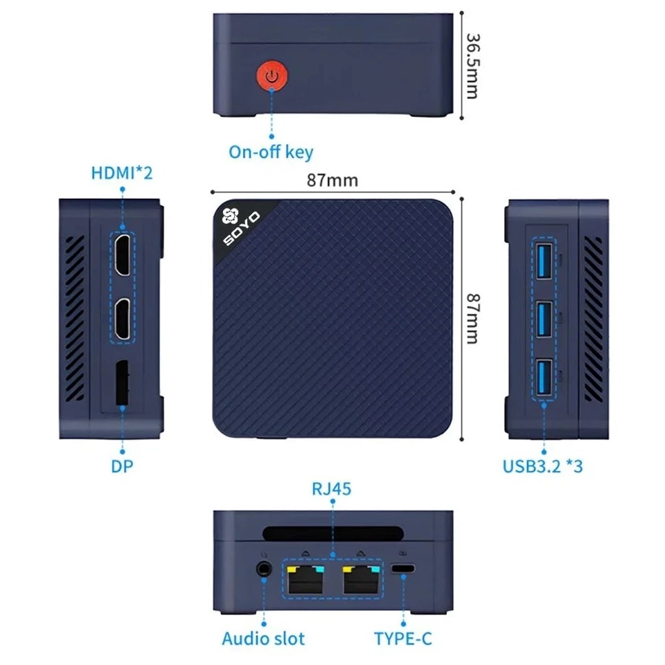 SOYO M4 Mini PC Intel N150 12GB DDR5 512GB SSD Windows 11 Pro Desktop Computer WiFi
