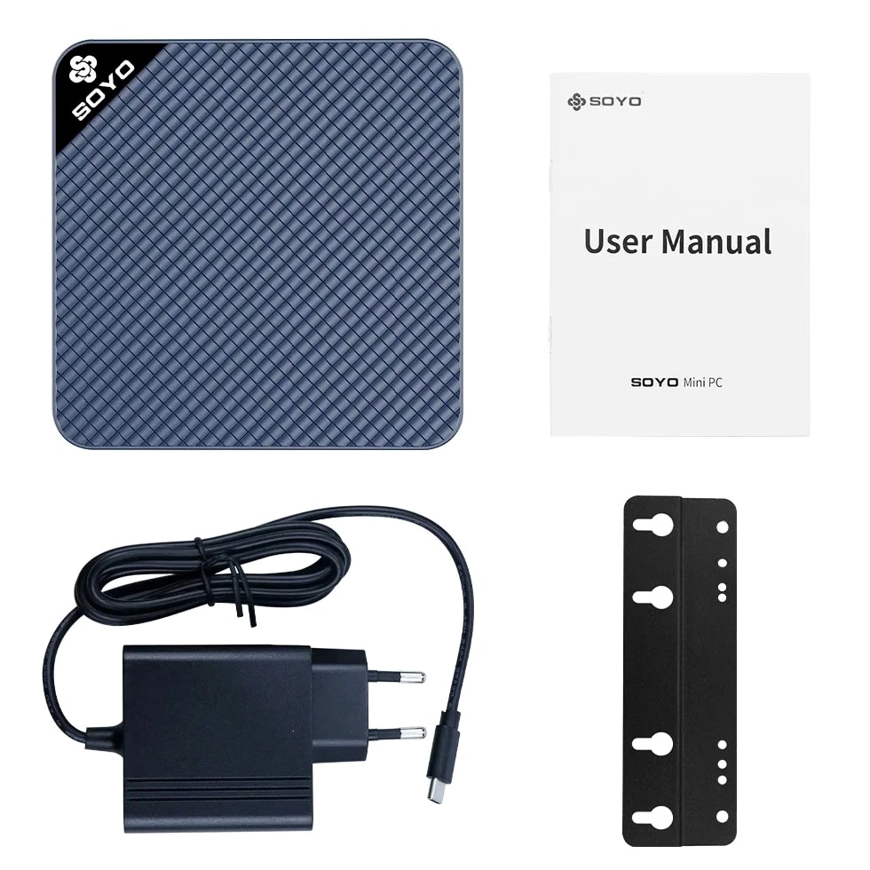 Mini PC SOYO M4 - Intel Twin Lake N150 Performance meets compact design | Windows 11 Pro | 12 GB DDR5 🚀 Upgrade for your home office SOYO M4 è un propulsore ultracompatto. Dotato dell'ultimo Processore Intel N150 e velocissimo 12 GB di memoria DDR5, offre prestazioni significativamente superiori rispetto ai modelli tradizionali con DDR4. Perfetto per lavori d'ufficio, streaming e multitasking. Key Features Latest Processor: Intel Twin Lake N150 CPU for smooth operation. High-Speed RAM: 12 GB DDR5 memory (faster and more efficient than DDR4). Large Storage: 512 GB SSD for rapid system boot and plenty of space. Operating System: Windows 11 Pro pre-installed and activated (Plug & Play). Connectivity: WiFi 5 dual band and Bluetooth 5.0 for wireless freedom. Space Saving: Fits any desk or behind your monitor. Technical Specifications CPU / Processor Intel Twin Lake N150 Memory (RAM) DDR5 12 GB (high-speed) Hard Drive 512 GB SSD Operating System Windows 11 Pro (64 bit) Graphics Intel UHD Graphics Network WiFi 5 (802.11ac) + Bluetooth 5.0 Connections HDMI, USB 3.0, audio jack, LAN Shipping Contents: 1 x SOYO M4 Mini PC, 1 x power adapter, 1 x HDMI cable, 1 x user manual. Fast shipping from Europe | Secure packaging | Customer support