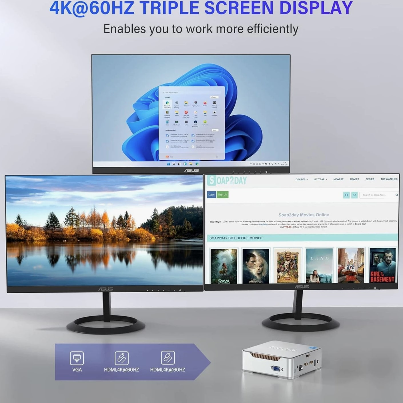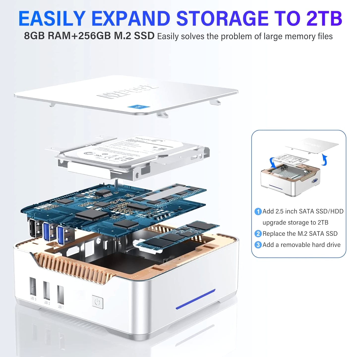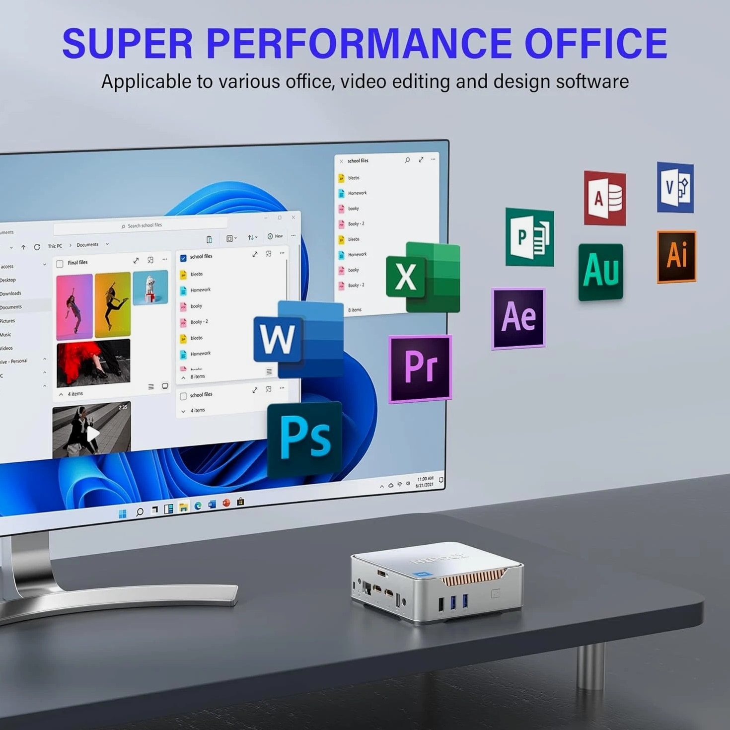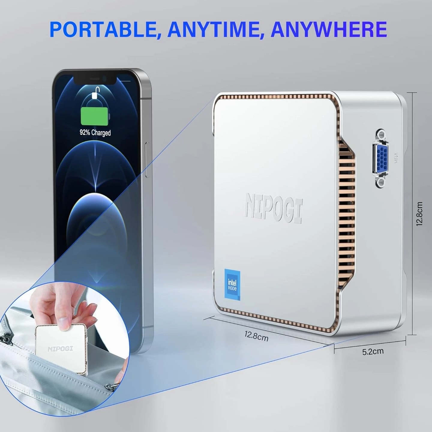 NiPoGi Mini PC Intel Alder Lake-N95 12th (up to 3.4GHz), 8GB RAM 256GB M.2 SSD Brand NiPoGi Specific uses for product Multimedia, Personal, Business Personal computer design type Mini PC Memory storage capacity 128 GB CPU model Atom Operating system OS CPU speed 2666 GHz Cache size 128 GB Graphics card description Integrated Graphics co-processor Intel UHD Graphics 600 Product Dimensions 13.2 x 13 x 4.3 cm; 370 g Item model number GK3-8-128 Manufacturer NiPoGi Series GK3PLUS 8GB+256GB/Intel Celeron Alder Lake N95 Colour Silver Mini Desktop PC Form Factor Small Form Factor Standing screen display size 51 Inches Screen Resolution 3840 x 2160 Resolution 3840x2160 Pixels Processor Brand Intel Processor Type Atom Processor Speed 2666 GHz Processor Socket LGA 3647 Processor Count 4 RAM Size 8 GB Memory Technology LPDDR4 Computer Memory Type DDR4 SDRAM Maximum Memory Supported 8 GB Memory Clock Speed 1200 MHz Hard Drive Size 128 GB Hard Disk Description SSD Hard Drive Interface ATA100 Hard Disk Rotational Speed 7200 Graphics Coprocessor Intel UHD Graphics 600 Graphics Chipset Brand Intel Graphics Card Description Integrated Graphics RAM Type GDDR3 Graphics Card Interface Integrated Connectivity Type Wi-Fi Wireless Type 802.11a/b/g/n/ac Number of USB 2.0 Ports 2 Number of USB 3.0 Ports 2 Number of HDMI Ports 2 Voltage 230 Volts Hardware Platform PC Operating System OS Are Batteries Included No Item Weight 370 g Guaranteed software updates until unknown