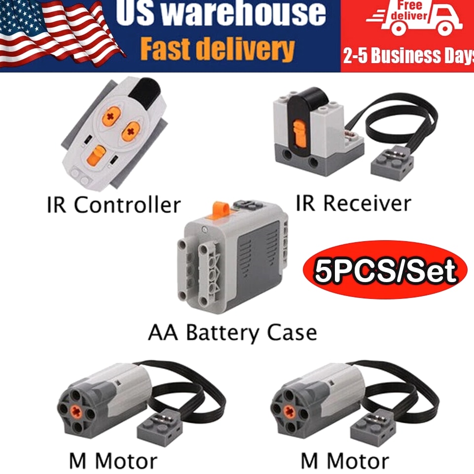 5 Pcs MOC Power Functions M Motor Battery Box Remote Receiver Set PF Technix 5-in-1 Power Functions M Motor Battery IR Remote Receiver for LEGO PF Tech-nic Parts MOC Train Parts Control Two Motors with an IR Infrared Remote Control. Package List: 2 - Power Functions M Motors 1 - Power Functions AA Battery Box 1 - Power Functions IR Infrared Remote Transmitter 1 - Power Functions IR Infrared Receiver Any question please feel free to contact us at the first time. PaymentShippingDelivery timeReturn PolicyContact us Payment Please kindly make payment asap, so that we can arrange your order promptly. If you have any problem with payment, please feel free to contact us. Shipping We provide tracking number for ALL orders. You can track your parcels. Delivery time Normally it arrives in 10-15 business days to US and European countries. DHL /Fedex/UPS arrives in 7-8 business days. Return Policy 1. All products are eligible for 30-days money back guarantee. 2. All returns should be guided by us. Please contact us for details before you return anything. Contact us Please don't hesitate to contact us BEFORE you give us neutral or negative feedback, so that we can satisfactorily address your concerns. We accept dropshipping, bulk orders and customized products. We are selling for Arduino module, sensors, Nextion display and other OLED or LCD screens, lidar range finder sensors, servo motors, various electronic components and for LEGO LED, etc. Country of Origin China Brand WishIot MPN Does not apply UPC Does not apply Model FZ4207*2+FZ4207E+FZ4207F+FZ4207H Material Plastic and metal Item Type MOC Tech-nic Power Functions Character MOC Tech-nic Power Functions Features MOC Power Functions Theme MOC Power Functions Packaging Our own package Product Line MOC Power Functions Set Set Name 5-in-1 M motor MOC Power Functions Set Age Level 5-8,9-11,12+ Type Minifigure