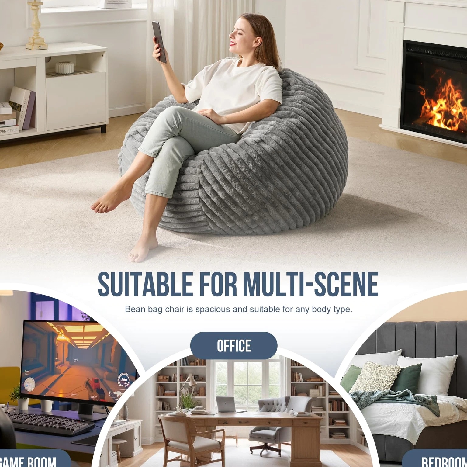 bean bag chairs' soft, thick fabric feels like baby's skin. And this beanbag chair is filled with clean, high-resilience memory foam, which supports and fits the human body comfortably and ensures you complete relaxation whether you're sitting or lying down. Compare with hard sofas, the large bean bag chair is more suitable for you and your family, even pets, to enjoy good time to rest, play games, read, study, work or watch games due to its softness and high-elasticity. The bean bag chair is your good choice when you return home after a day of work, study or play and just want to relax. Various and Comfortable: The beanbag chairs are made of skin-friendly and fluffy fabric that gives a cozy and soft touch. The bean bag chairs can be used in a variety of ways. Lay it down to sink in the bean bag chair, or flip the bean bags over, and you will get a beanbag chair with a backrest. Enjoy your leisure time with bean bag chairs Bean Bag with Filler: This 6ft bean bag chair is filled with high-resilience memory foam providing you with comfort and support. Giant bean bag chair comes in a condensed box; once opened, the bean bags start to expand within few minutes, and it will take 2 days to fully expand. Shake the whole bean bag chair after using for a period, and it will bounce back with comfort Removable and Washable Cover: The bean bag cover is machine washable. There is a hidden zipper on the side of bean bag chairs, so you can easily remove the cover for future maintenance. When an accident occurs, particularly in a family with children or pets, take off the cover, put it in the washing machine, and clean it as new Thoughtful Parts: bean bag chair adopts the zipper hidden design that will not affect the beautiful appearance of the comfy lazy chair at all. The large handle makes it more convenient to move the large beanbag chairs, allowing you to lie down and enjoy your personal time in every corner of the house. One large pocket is also added on one side to hold mobile phones, tablets, books