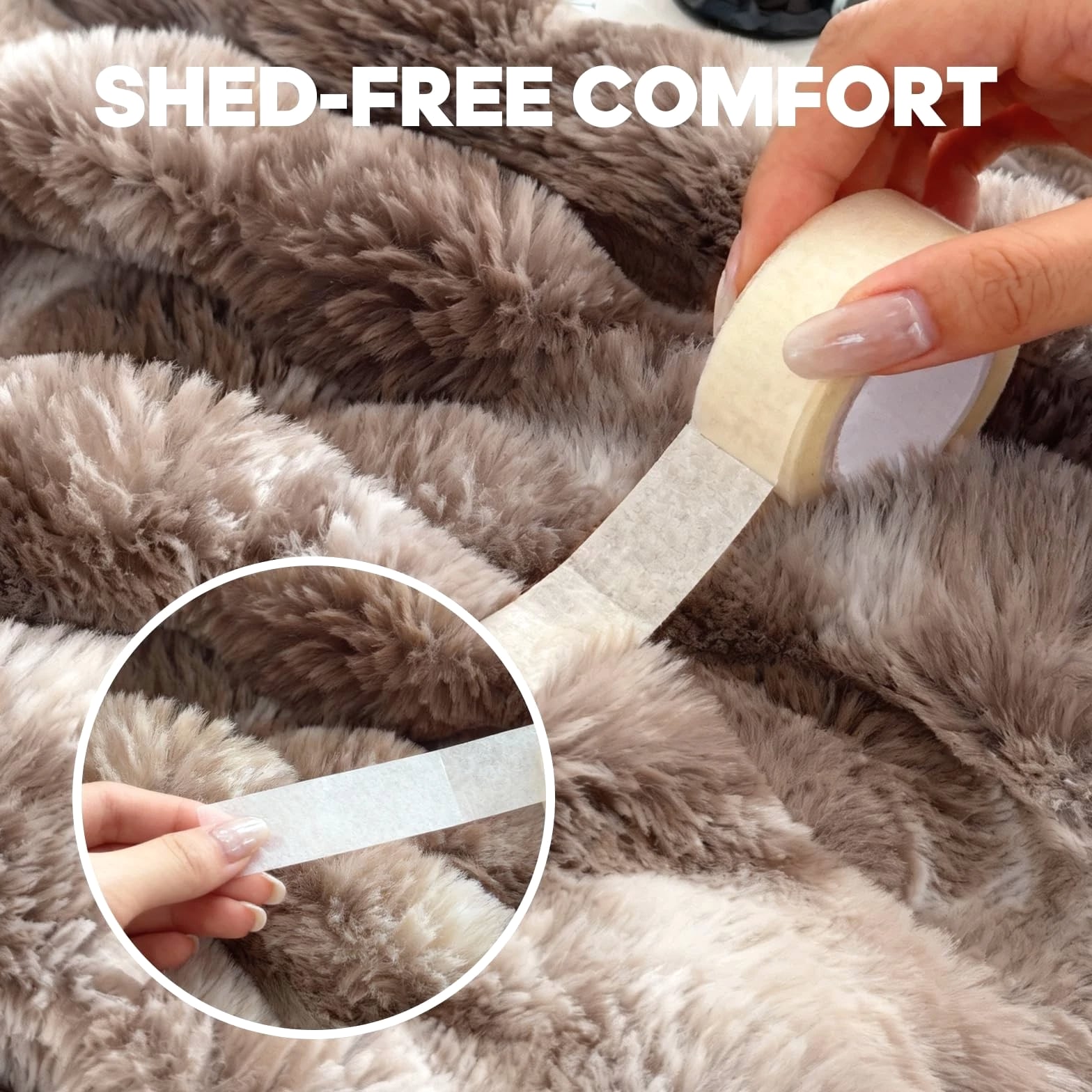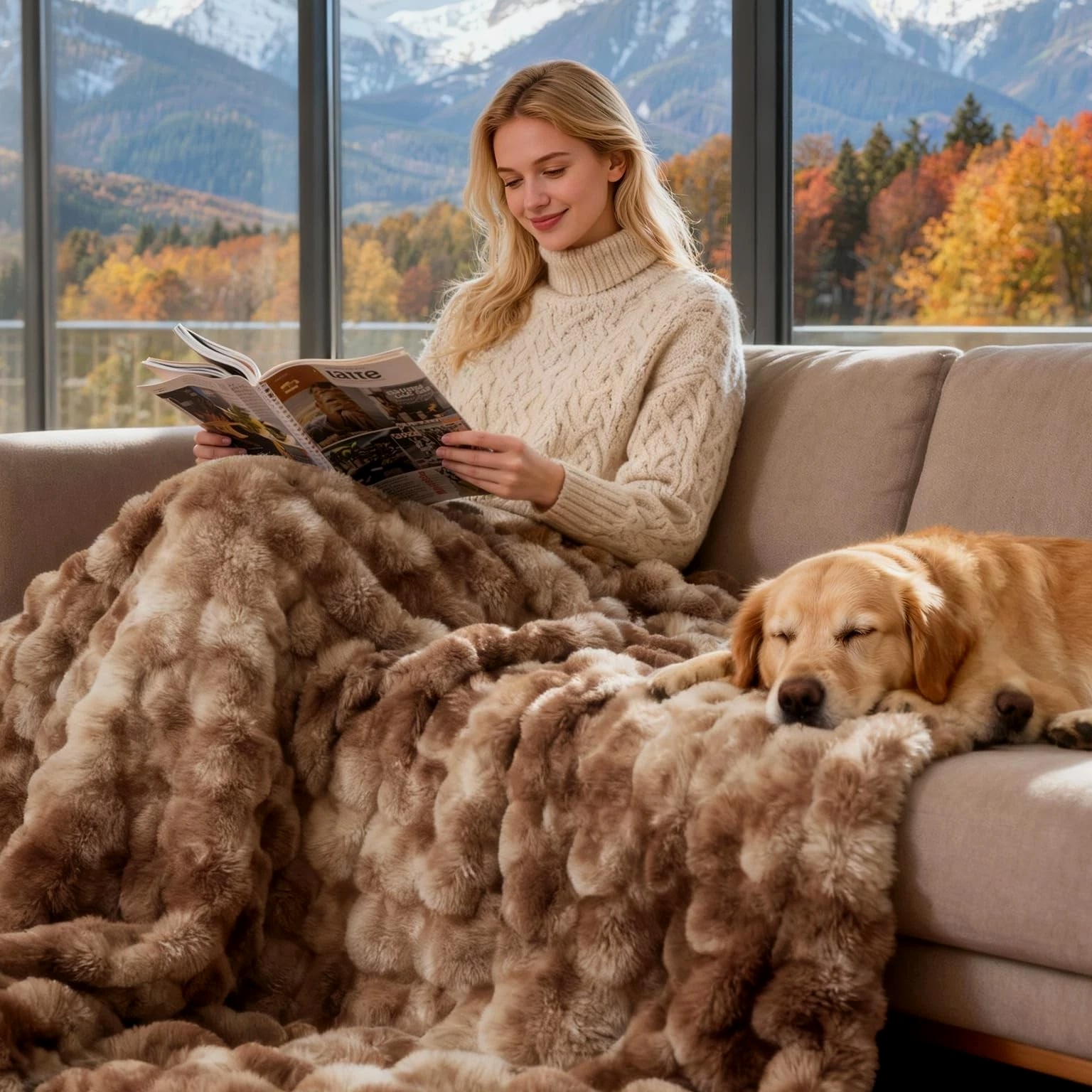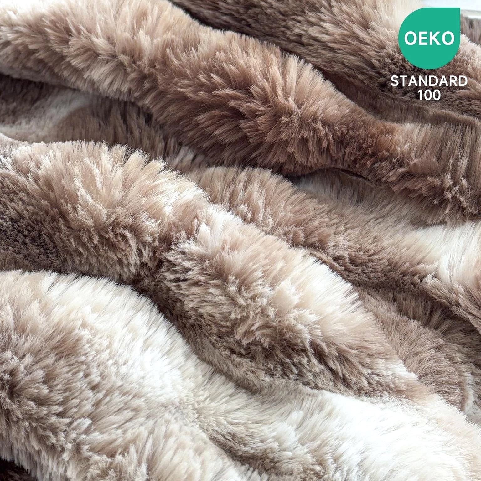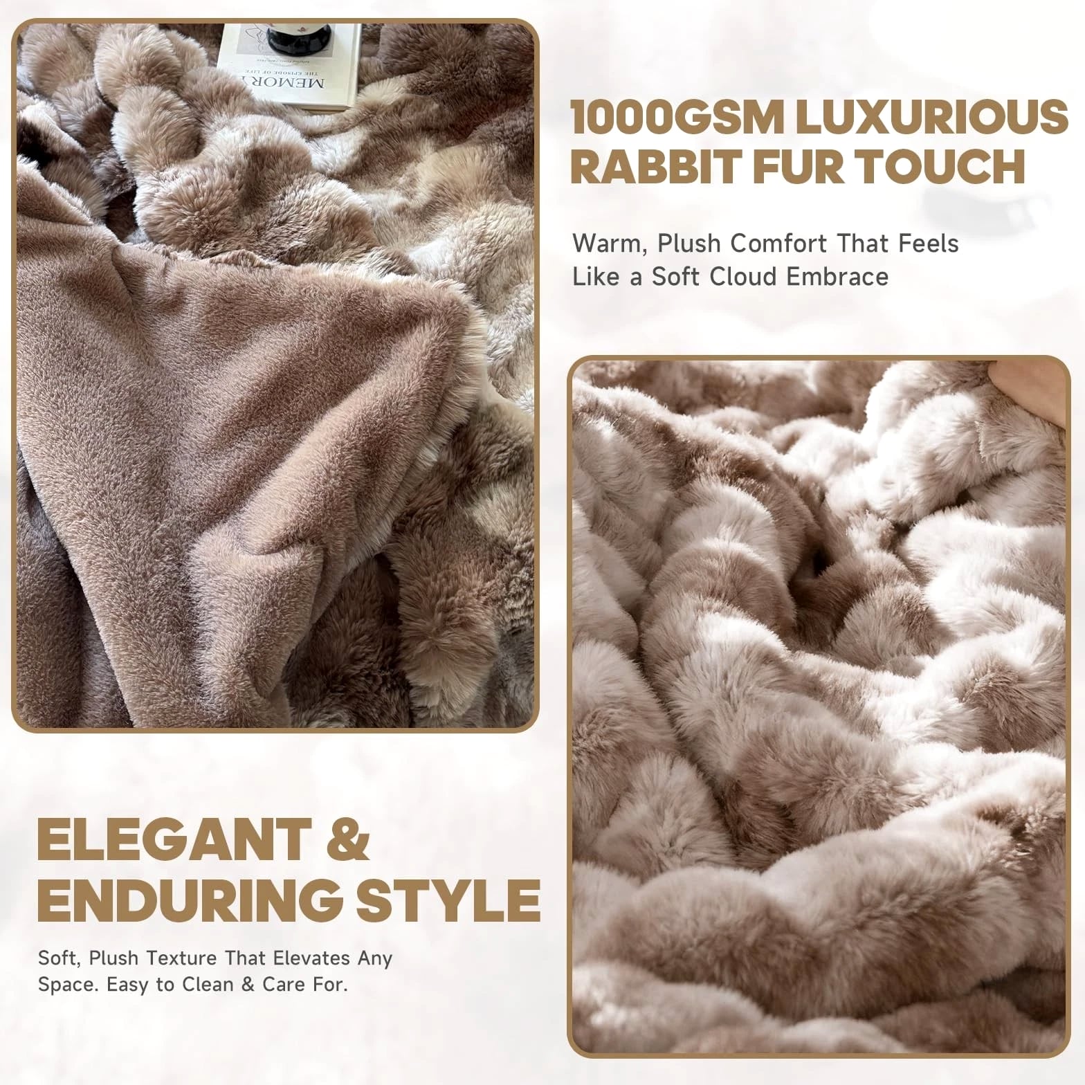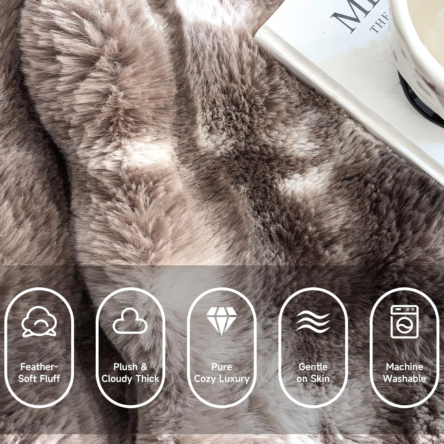Luxury 1000GSM Faux Rabbit Fur Throw Blanket - Tie-Dye Brown, Ultra Soft Plush...