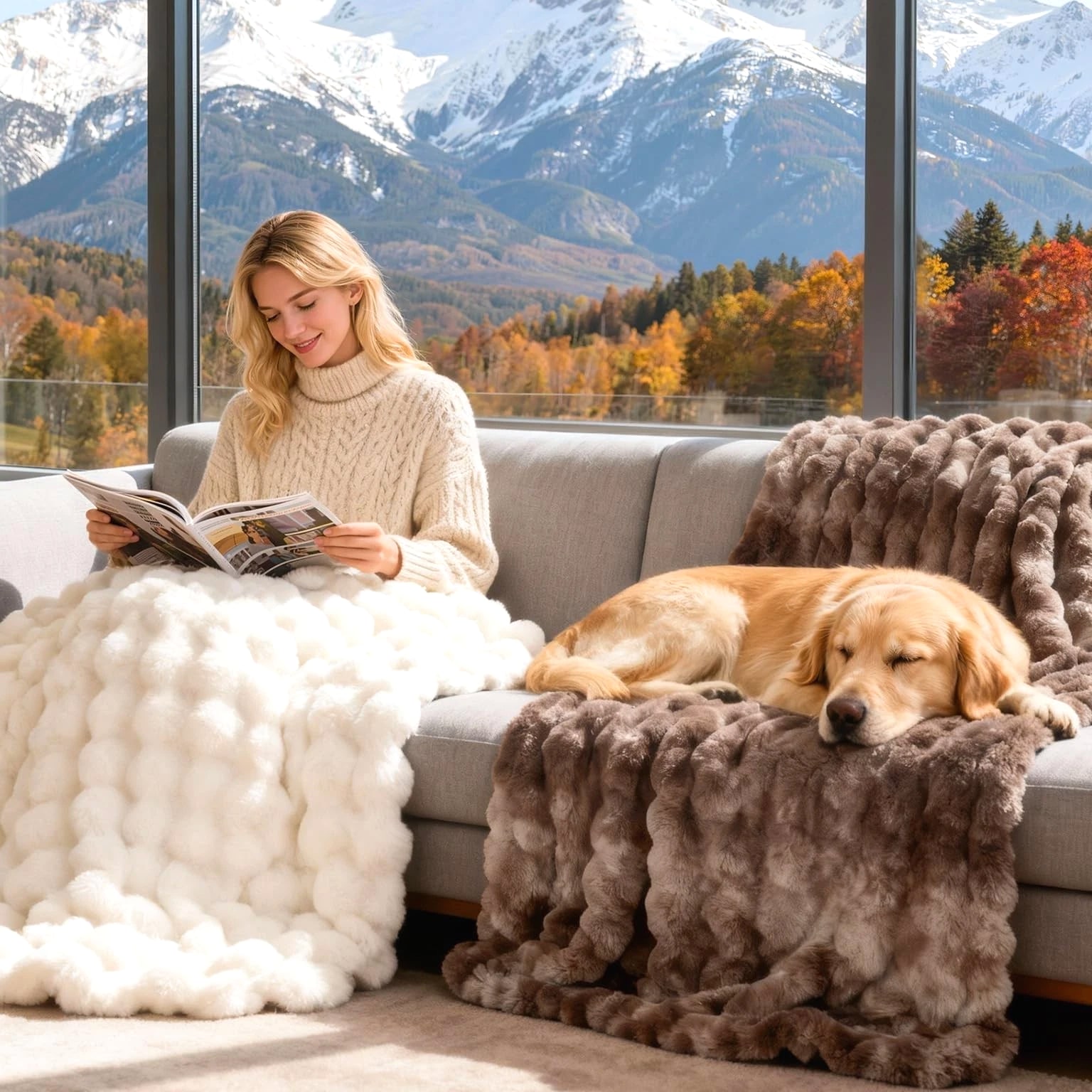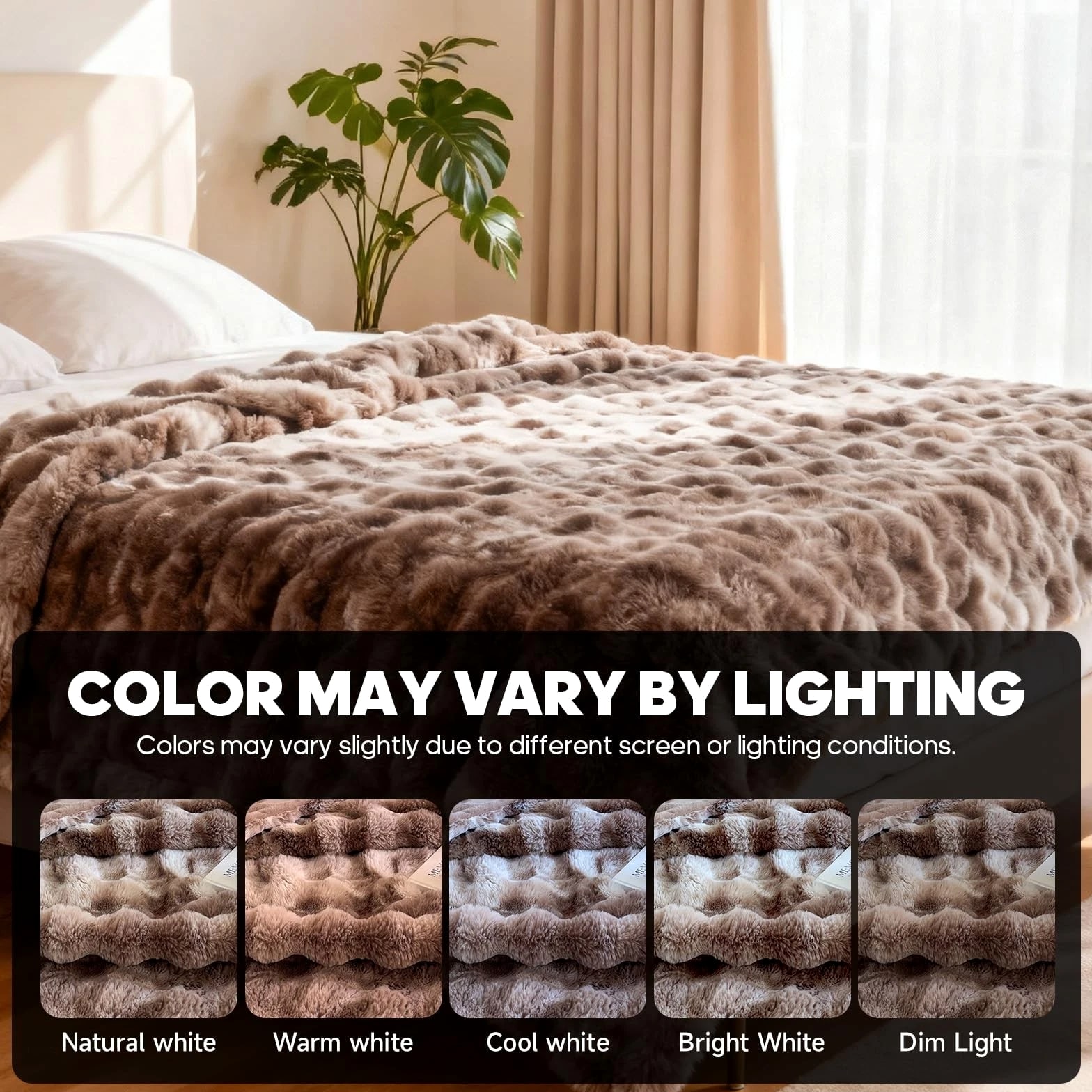Luxury 1000GSM Faux Rabbit Fur Throw Blanket, Tie-Dye Brown, Ultra Soft Plush 3D Bubble Design, Reversible Mink Brown Blanket for Couch, Sofa, Bed & Living Room, 50"x60", Gift for Women & Family Product Details Color: Brown (Faux Fur Bubble + Flannel) Size: Throw (50" x 60") Brand: Fruaros MPN: Does not apply UPC: Does not apply EAN: Does not apply Material: 1000 GSM Faux Fur Color: Brown (Faux Fur Bubble + Flannel) Brand: Fruaros Special Feature: Cozy, Fluffy, Reversible, Soft, Thickened Style: Elegant Color: Brown (Faux Fur Bubble + Flannel) Style Name: Elegant Blanket Form: Throw Blanket Theme: Elegance Pattern: Tie Dye Additional Features: Cozy, Fluffy, Reversible, Soft, Thickened Recommended Uses For Product: Bed, Camping, Couch, Sofa Seasons: All, Fall, Spring, Summer, Winter Fabric Warmth Description: Medium Weight Material Type: 1000 GSM Faux Fur Fill Material: Polyester Product Care Instructions: Machine Wash Fabric Type: 100% Polyester Brand Name: Fruaros Age Range Description: All Ages Number of Items: 1 Model Name: CBTH-5060 Manufacturer: Fruaros Model Number: USFLU24CPBB2511V1CBTH Item Dimensions L x W: 60"L x 50"W Size: Throw (50" x 60") Item Weight: 1.46 Kilograms A plush bubble blanket designed to wrap you in comfort like a warm hug at the end of the day. Wrap Yourself in Cloud-Like Comfort: Wrap yourself in pure comfort with our 1000GSM tie-dye brown faux rabbit fur throw blanket. The unique 3D bubble texture adds a plush 4D look and feel, creating cloud-like softness that's irresistibly cozy yet breathable. Every touch feels like a gentle hug, enveloping you in warmth and indulgent comfort—perfect for curling up on the couch, sofa, or bed and turning any evening into a soothing retreat. Upgrade Your Space with Cozy Style: Transform any room into a haven of warmth and elegance with this brown throw blanket. Perfectly suited for living rooms, bedrooms, or reading nooks, it complements farmhouse, boho, or modern decor effortlessly. Its plush texture an
