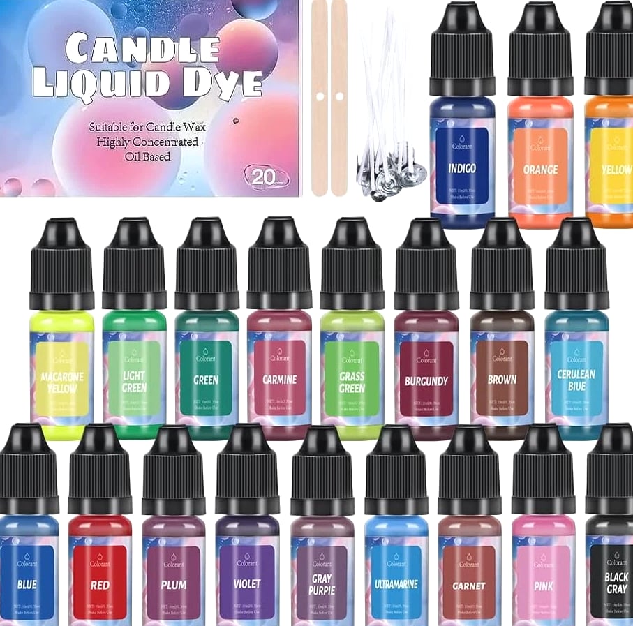 Candle Dye - 20 Colors Liquid Candle Making Dye for DIY Candle Making Supplies Kit