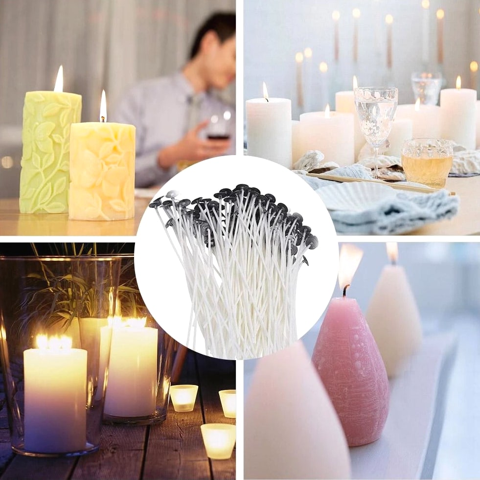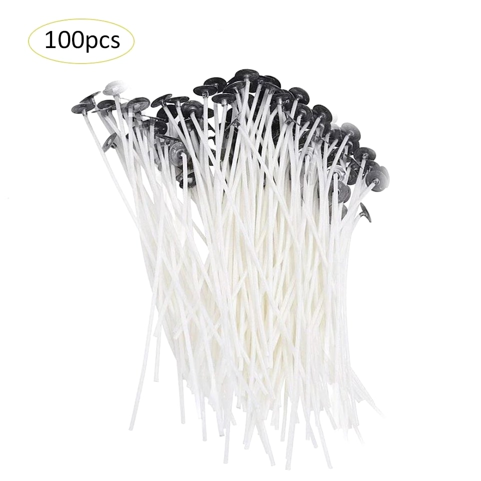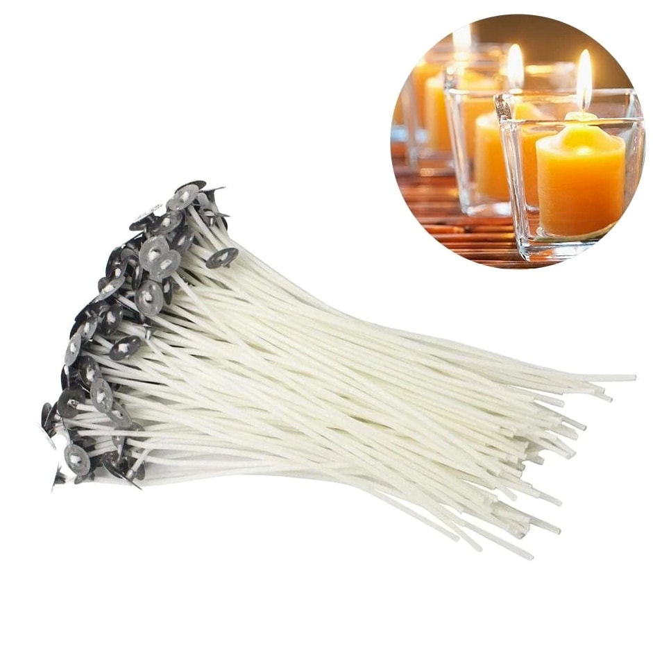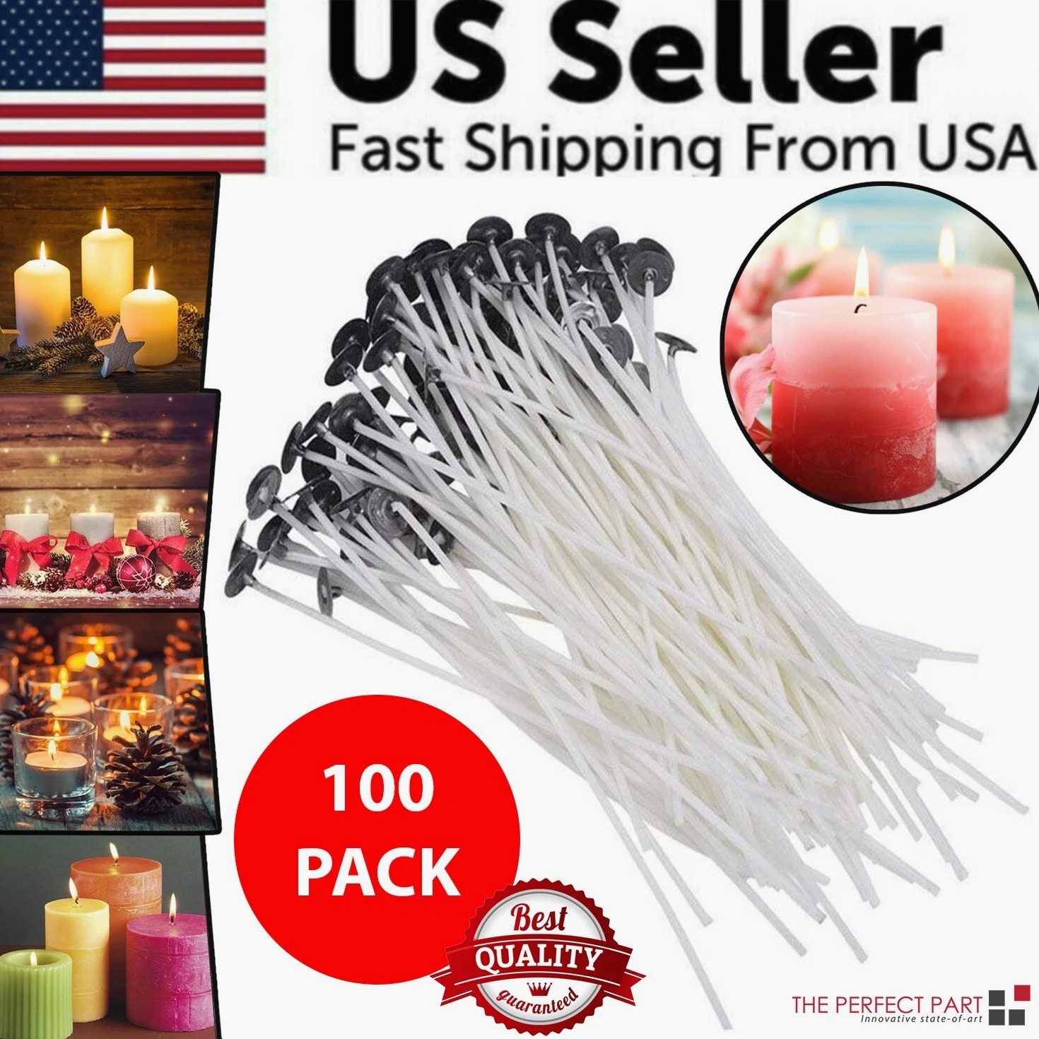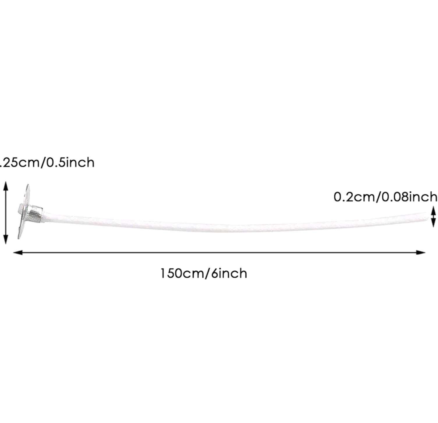 Candle Wicks 6 Inch Cotton Core Candle Making Supplies Pre-Tabbed 100 PCS 🕯️ QUALITY: Pre-Waxed Paraffin, Natural Cotton-Core Wicks provide the rigidity of Zinc without the Metal Wire. When Burning, the Specially Treated Core is Completely Consumed by the Flame. Our Wicks contain no lead, zinc or other metals and are 100% Plant-Based Fibers. The Perfect Replacement for Zinc Core Wicks and HTP Wicks. 🕯️ PROFESSIONALS & AMATEURS: Core Wicks Are Made From 100% Cellulosic Plant-Based Fibers, Mostly Cotton. The Wax Applied Is Paraffin Wax; The Candle Maker Is Safe Between 190° And 200°f. Superior Quality Control for Consistency Batch to Batch. Our Cotton-Core Wicks Work Well With Paraffin, Soy, Palm, Beeswax, Coconut & Blended Waxes. 🕯️ VERSATILE: Candle wicks for making candles, wicks coated with soy wax. Low smoke wicks suit soy wax, beeswax, palm, coconut, paraffin and other candle making. Pre-waxed cotton wicks can also be used in the making of holiday candles, birthday candles. Essential candle making supplies when making candles. 🕯️ EXTRA LONG SIZE: 6" long candle wicks are great for making large size candles. Allowing for a 10 minute burn time and exceeding others. Trim-able wick, suitable for making wick candles in most sizes. Such as the production of tea wicks, multi-size candlestick wicks and various mold wick candles. 🕯️ MORE INFO: Cotton wick candle making, please pay attention to the amount of dye and fragrance, too much may affect the burning effect, produce smoke and reduce the ability of the candle to stay lit. Specifications: Color:White Material: 100% Cotton Length: 6 inch Wick Diameter: 2.5mm Base Diameter: 12.5mm Quantity: 100 Pack Features & Tips Size of our Candle Wicks Measures 6 inch in length and base 0.5 inch/12.5 mm in diameter. Perfect for all size candle making, they feature long combustion time and good combustion stability. Strong bottom Works well in pillars and most containers, Large and stable flame. Suitable for