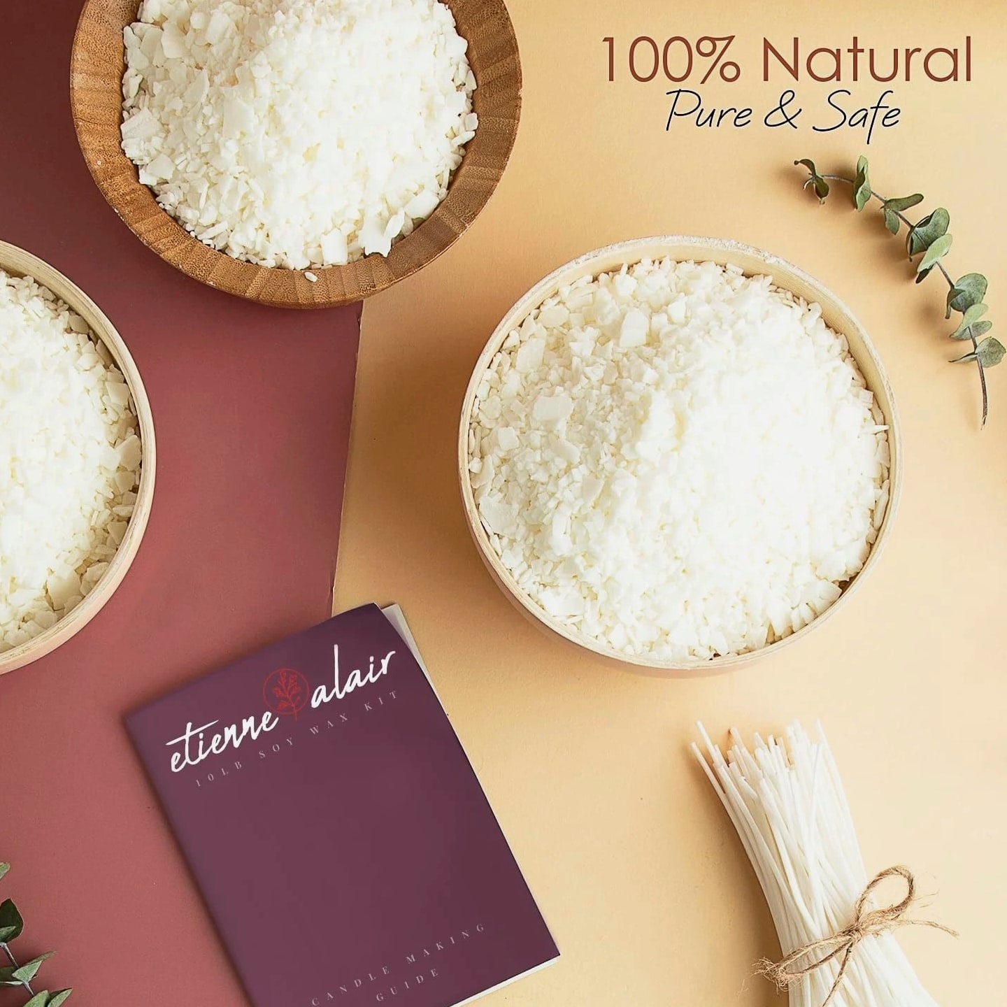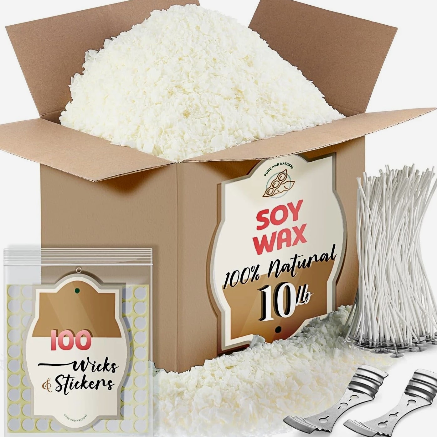 Natural Organic Soy Candle Wax Bulk For Candle Making, 10 lbs Soy Wax Flakes Kit All-In-One Starter Kit – Everything you need to dive into candle making. Our Etienne Alair soy candle wax for candle making includes 10 lbs of smooth soy wax flakes, 100 cotton wicks, 100 adhesive stickers, and 2 centering tools. Perfect for beginners or seasoned DIYers. Super Easy to Use – No messy blocks or confusing steps — our flakes melt quickly and smoothly. Just heat to 160°F using a microwave, wax melter, or double boiler, add your favorite fragrance and color, then pour into your container or mold. Incredibly simple. Strong Scent & Custom Colors – Designed for a maximum fragrance load of 10% (1.6 oz per pound), our wax for candles holds scent beautifully for long-lasting aroma. Pair with candle-safe dyes for bold, even color and clean-burning candles every time. Clean, Safe & Eco-Friendly – Free from paraffin, additives, and animal products, our soy wax for candle making is non-toxic and sustainably sourced. With a low melting point of 115–121°F, they're safe and easy to work with — excellent for solo projects or candle making wax parties. A Thoughtful DIY Gift Idea – Whether you're gifting the kit or your homemade candles, this is a perfect pick for holidays, birthdays, housewarmings, or creative nights in. Make it personal, make it smell amazing. Product description CRAFT BEAUTIFULLY, CONSERVE MINDFULLY Make the right choice to craft your candles while also being kind to the planet with soy wax from Etienne Alair. Our brand manufactures high-quality soy wax that is plant-based and features only natural additives, eliminating the presence of harmful chemicals featured in traditionally-made paraffin candles. Perfect for seasoned candle crafters and beginners alike, our soy wax includes all necessary candle-making supplies: wicks perfectly trimmed to 6", wick stickers, and centering devices. EASILY CREATE ELEGANCE Our soy wax lets you start crafting as soon as it arrives at your door. Simply s