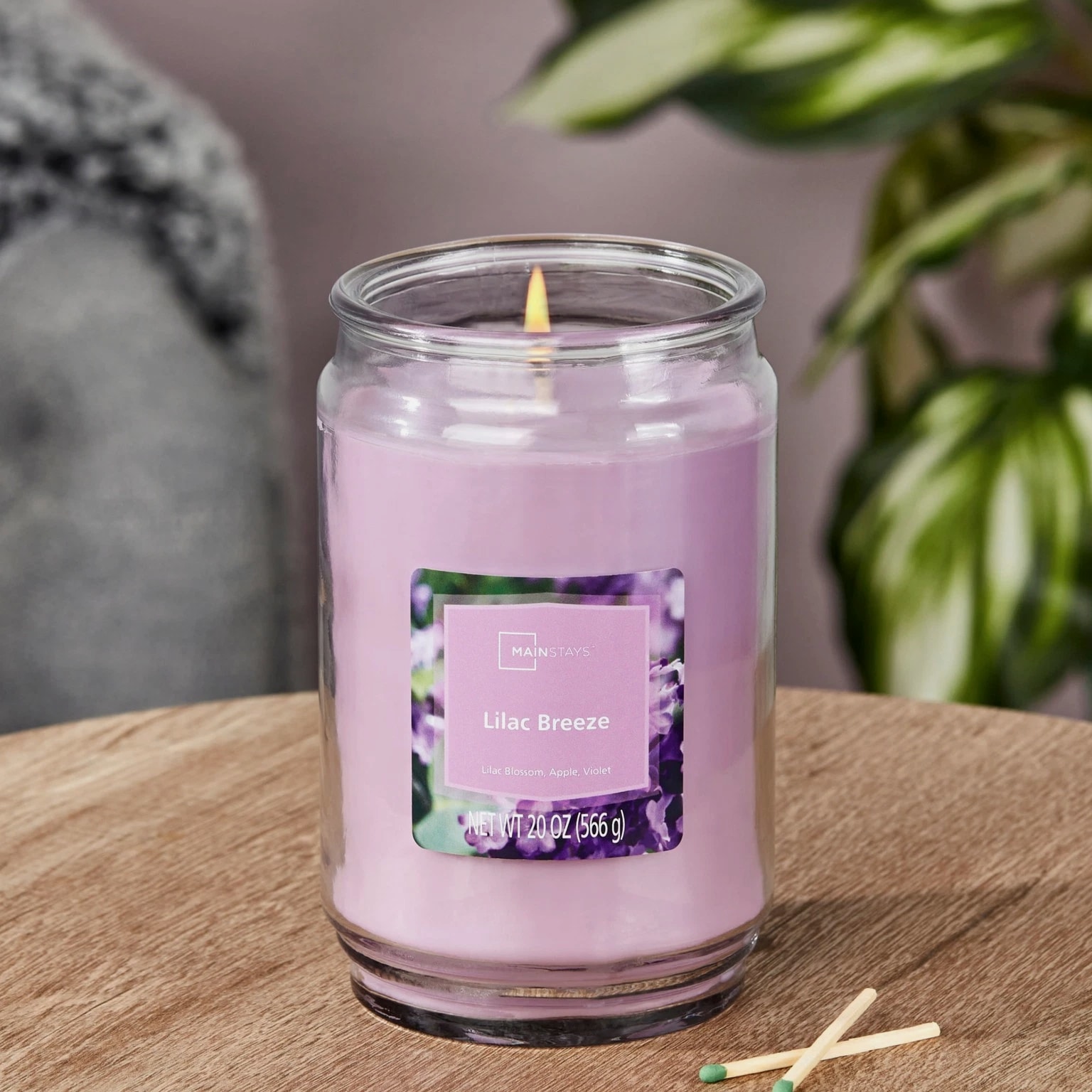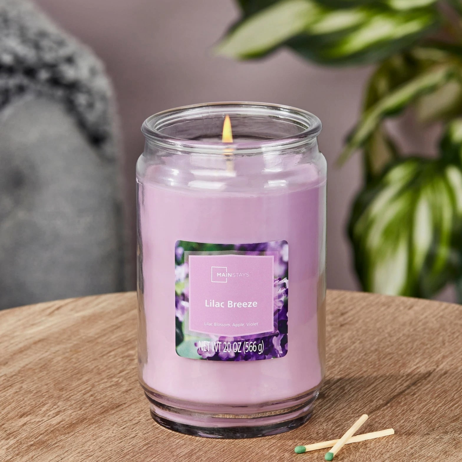 Mainstays Lilac Breeze Scented Single-Wick Large Glass Jar Candle 20 oz