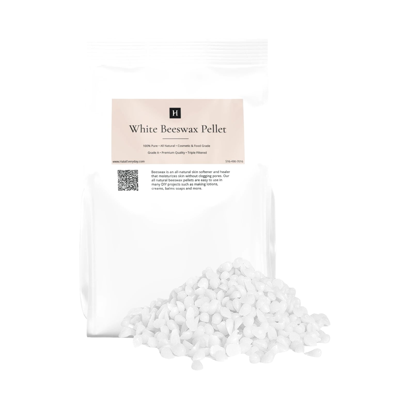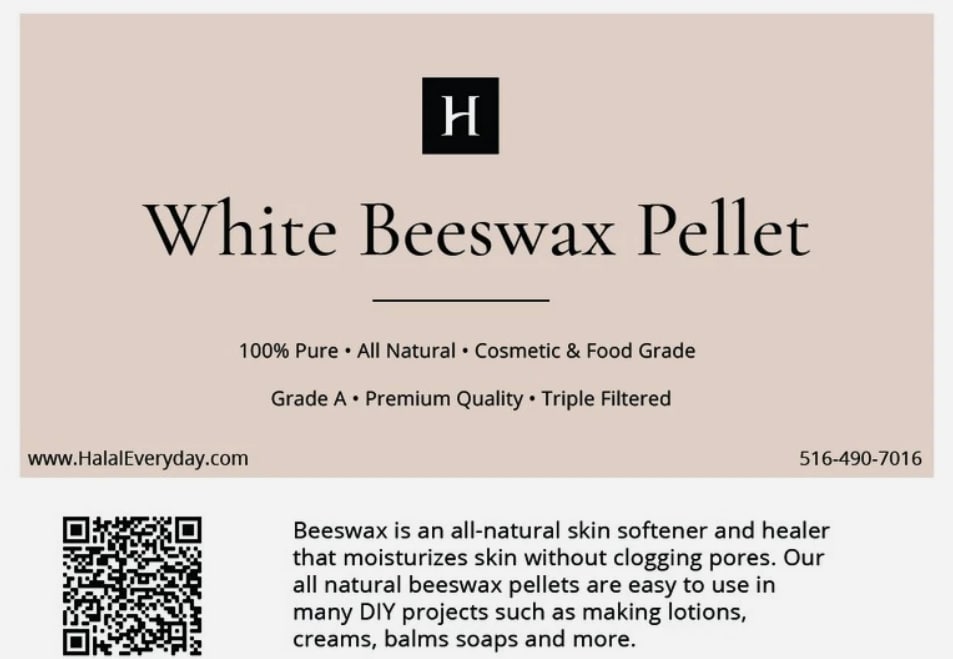 White Beeswax Pellets 100% PURE Odorless | Triple Filtered | Refined Cosmetic Grade | Food Grade GRADE A FREE SHIPPING! Our Pure Beeswax is raw and unrefined, ensuring it retains its high concentration of natural properties. With its rich, golden color and subtle honey aroma, it offers an exceptional ingredient for your creations. Key Features: 100% Natural and Organic: Sourced from high-quality honeycombs. Raw and Unrefined: Preserves natural nutrients and properties. Rich Golden Color: Adds a natural, attractive hue to your products. Subtle Honey Aroma: Provides a pleasant, natural scent. Non-GMO and Halal: Suitable for various dietary and ethical preferences. Versatile Use: Ideal for skincare, candles, lip balms, crafts, and more. Premium Quality: High-quality beeswax with a smooth, pliable texture. Benefits of White Beeswax: Natural Ingredient: Perfect for a variety of applications. Versatile: Can be used in cosmetics, crafts, and household projects. Eco-Friendly: Sustainable and biodegradable. How to Use: Melt a small amount of beeswax and incorporate it into your desired recipe or project. Suitable for making candles, lip balms, lotions, and more. Perfect for DIY crafts and home projects. Ingredients: 100% Pure Beeswax Why Choose Us? Our dedication to quality ensures you receive pure beeswax free from additives and fillers. We source our beeswax from trusted organic beekeepers, promoting sustainability and ethical practices. Our beeswax is produced with care to preserve its natural benefits, providing superior ingredients for your creations. Packaging: Comes in a resealable, airtight bag to maintain freshness and convenience. FDA Disclaimer: These statements have not been evaluated by the Food and Drug Administration. This product is not intended to diagnose, treat, cure, or prevent any disease. Please consult with a professional before starting any new project or using a new ingredient. Pure White Beeswax, Organic Beeswax, Raw Beeswax, Unrefined Bees