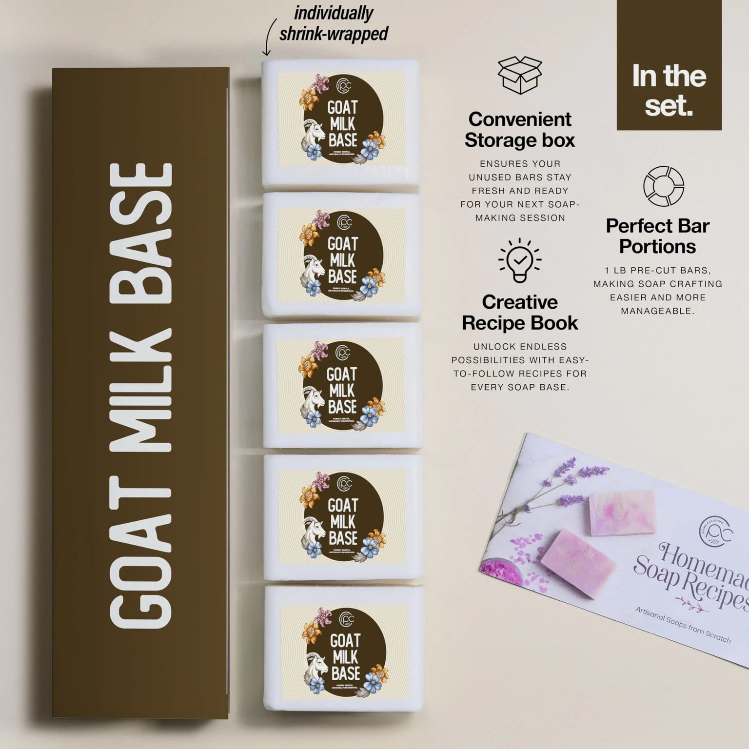 SOAP BASE SKIN SAFE AND MOISTURIZING Our soap is naturally made with the finest ingredients. Our soap is GMO FREE, PARABEN FREE, CRUELTY FREE, SLES/SLS FREE and PALM OIL FREE! Enjoy the benefits of pleasant and moisturizing effects of our pure soap. 100% NATURAL AND PREMIUM HIGH QUALITY Our soap base is made with high quantity of glycerin and only natural ingredients. We have pretested the soap so it's the perfect combination of melting and pouring smoothly, plus being very easy to cut. 5 POUNDS DIVIDED IN 1 POUND BARS For your convenience, we have cut our soap into packaged 1 lb bars so you have an easy time working with the soap, and it's easy to store the rest. DIY RECIPE BOOK INCLUDED Stunning recipe book with premium selection of captivating DIY recipes for soap making! Gift a loved one with a beautiful bar of homemade soap! GIFT A LOVED ONE WITH AN ARTISTICALLY DECORATED BAR Get Creative! Enjoy this as an activity or to spend time with a loved one. Melt and Pour DIY is a great entertainment activity for family and friends. You can simply melt, add fragrances and coloring to the mix, and pour into your favorite shaped molds. Let it rest for 12-24 hours before removing from the molds, and voila! You got some stunning bars!