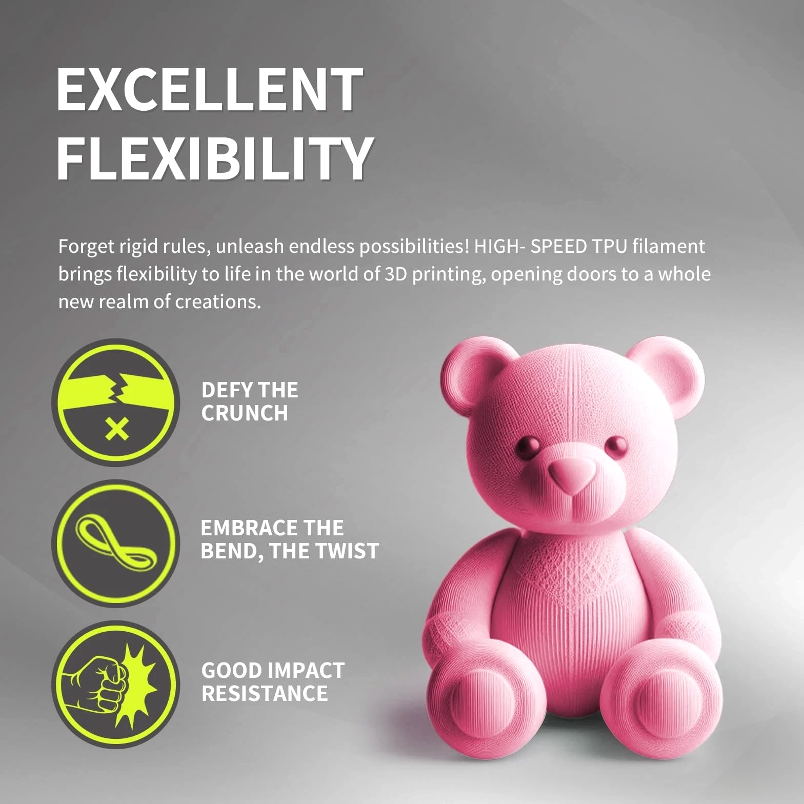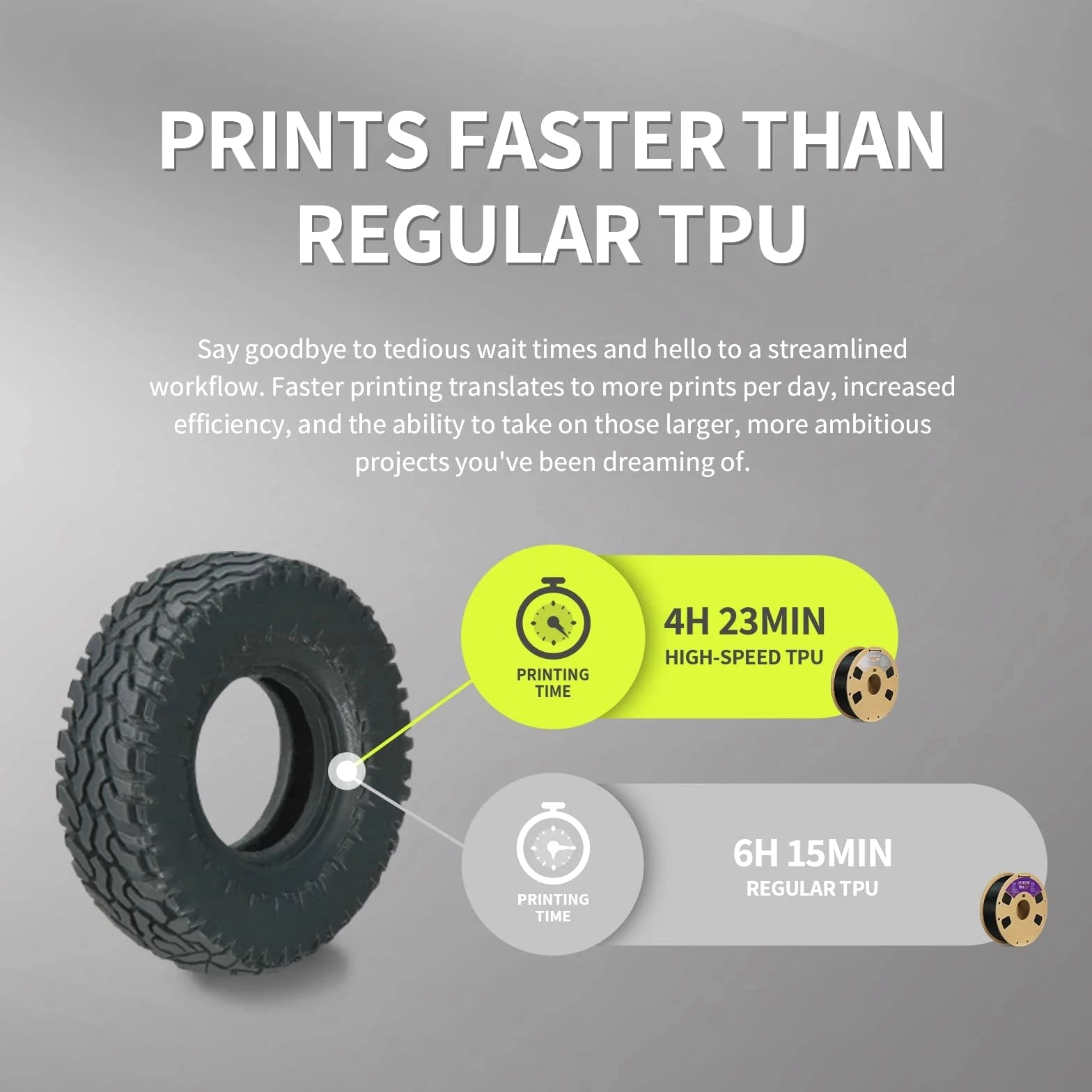 ★★★★★ 100% Positive Fast Dispatch Premium Support ✔【Rapid 95A TPU Filament】This premium TPU 95A is engineered to print up to 5x faster than standard TPU filaments while maintaining exceptional flexibility and durability. Overture High Speed TPU strikes the ideal balance between softness and resilience ✔【Superior Layer Adhesion at Speed】Achieve flawless, strong prints even at high velocities. Our High Speed TPU formulation ensures optimal layer bonding and a smooth surface finish, providing the high elasticity and dimensional stability needed for reliable, high-quality 3D printer filament TPU outputs without compromise ✔【Clog-Free & Bubble-Free】Experience consistent, hassle-free performance. The patented clog-free formula minimizes jams during fast extrusion, and every spool of Overture TPU is pre-dried for 24 hours and vacuum-sealed to a bubble-free, moisture-protected TPU filament 1.75mm ready for your printer ✔【Wide Compatibility & Vivid Color Options】This versatile Filament TPU is compatible with most high-speed capable 3D printers. Fuel your creativity with our selection of vibrant colors, ideal for prototyping and finished products. Stock up with our cost-effective TPU filament bundle for all your flexible printing needs ✔【Supported & Smooth Printing】Print with confidence. Overture filament comes with dedicated support and a 1-year shelf life for unopened spools (proper storage required). We're committed to timely solutions for a seamless printing experience. Your reliable 3D printing partner