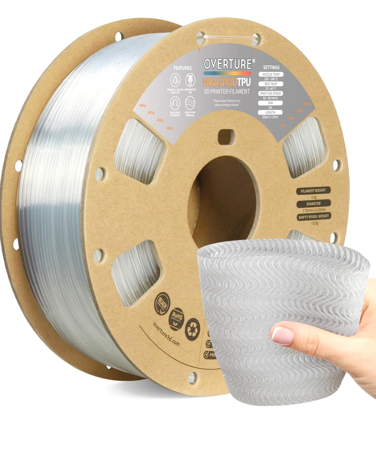 OVERTURE TPU High Speed Filament 1.75mm Flexible HS TPU Transparent