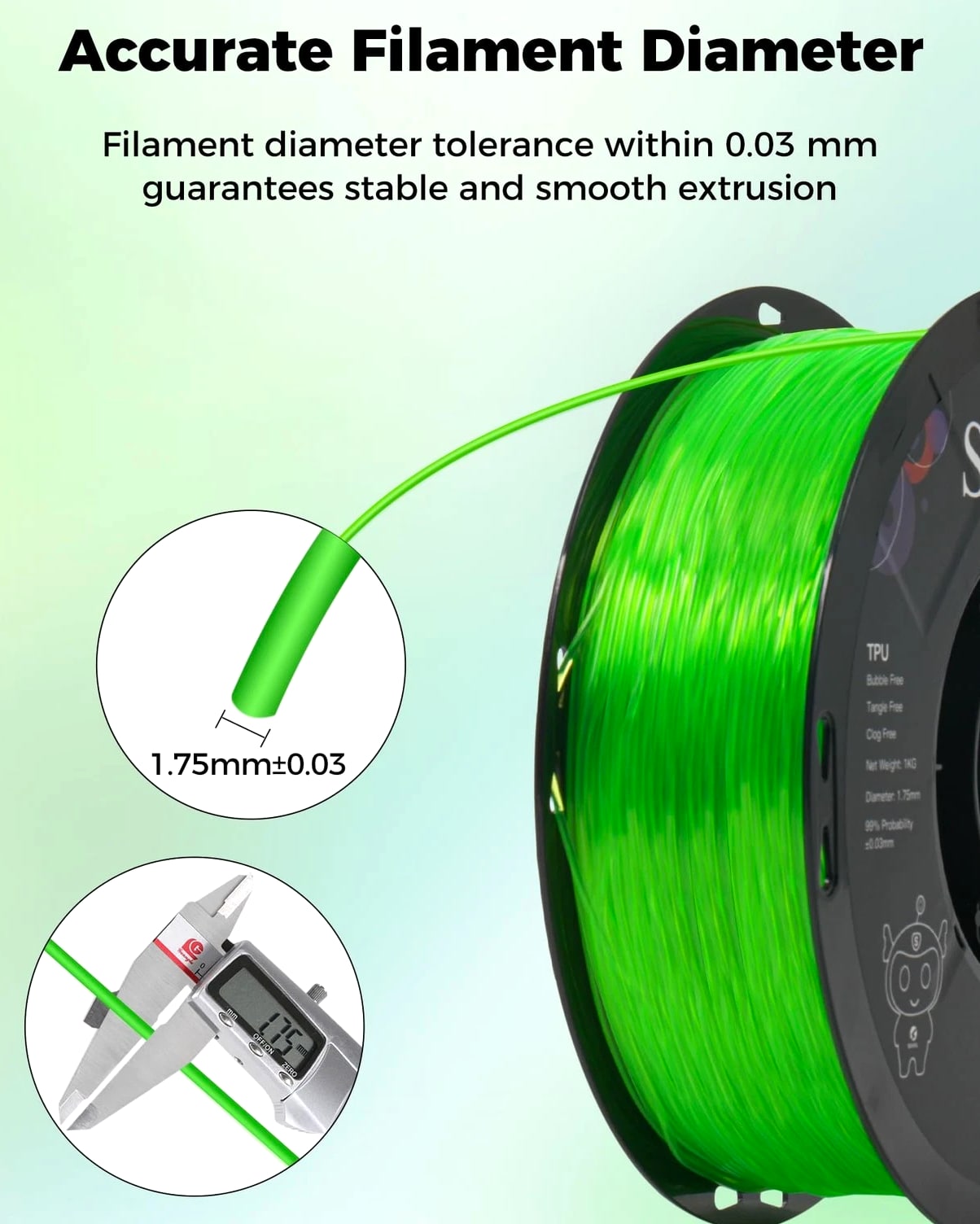 Sovol TPU Filament 1.75mm 95A Soft Flexible 3D Printer - 1 KG Clear Green