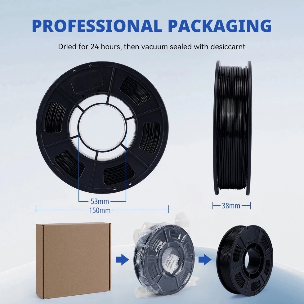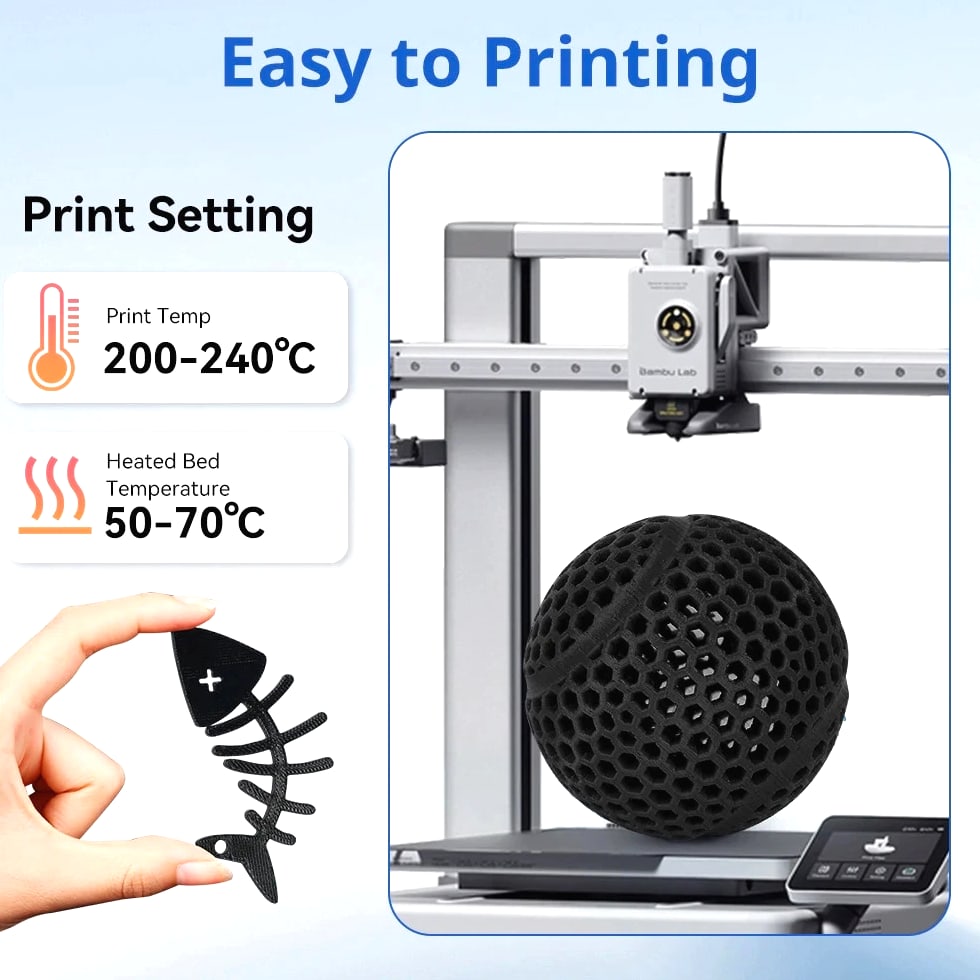 Why Choose 300g Spool *More than 200g content, more convenient for testing and printing; *The diameter of the spool is larger, making it more adaptable to various drying boxes; *The middle aperture of the spool can perfectly fit the AMS rack (color cannot be recognized) Basic Information *Name : TPU Filament *Color : Black *Diameter: 1.75mm *Tolerance: +/- 0.05mm *Print Temperature: 190 - 220℃ (374 - 428℉) *Net Filament Weight : 300g / 200g Option * Vacuum Sealed With Desiccant * Shore hardness 95A TPU Filament 1.75mm 0.3KG (Not 1kg) - Flexible 95A Soft 3D Printer Material, 200g 300g Spool For AMS Bracket & Dry Box SHIPPING POLICY: Item will be shipped within 5 business days when payment is received. Please make sure your address is correct before completing your purchase. Delivery time depends on the destination and other factors. RETURN POLICY: ● All items are in brand new condition. ● If you are not satisfied with the item or it is defective, please return it within 30 days for a replacement or refund. PAYMENTS: ● All payment methods are accepted. FEEDBACK: Customer satisfaction is very important to us. If you have any problem with your order, please contact us. We are here to assist you and resolve any issues, so please give us a chance to do so prior to posting feedback. We are sure that we can provide a solution that makes you satisfied. CONTACT US: If you have any queries, please contact us. We usually respond within 24 hours on weekdays.