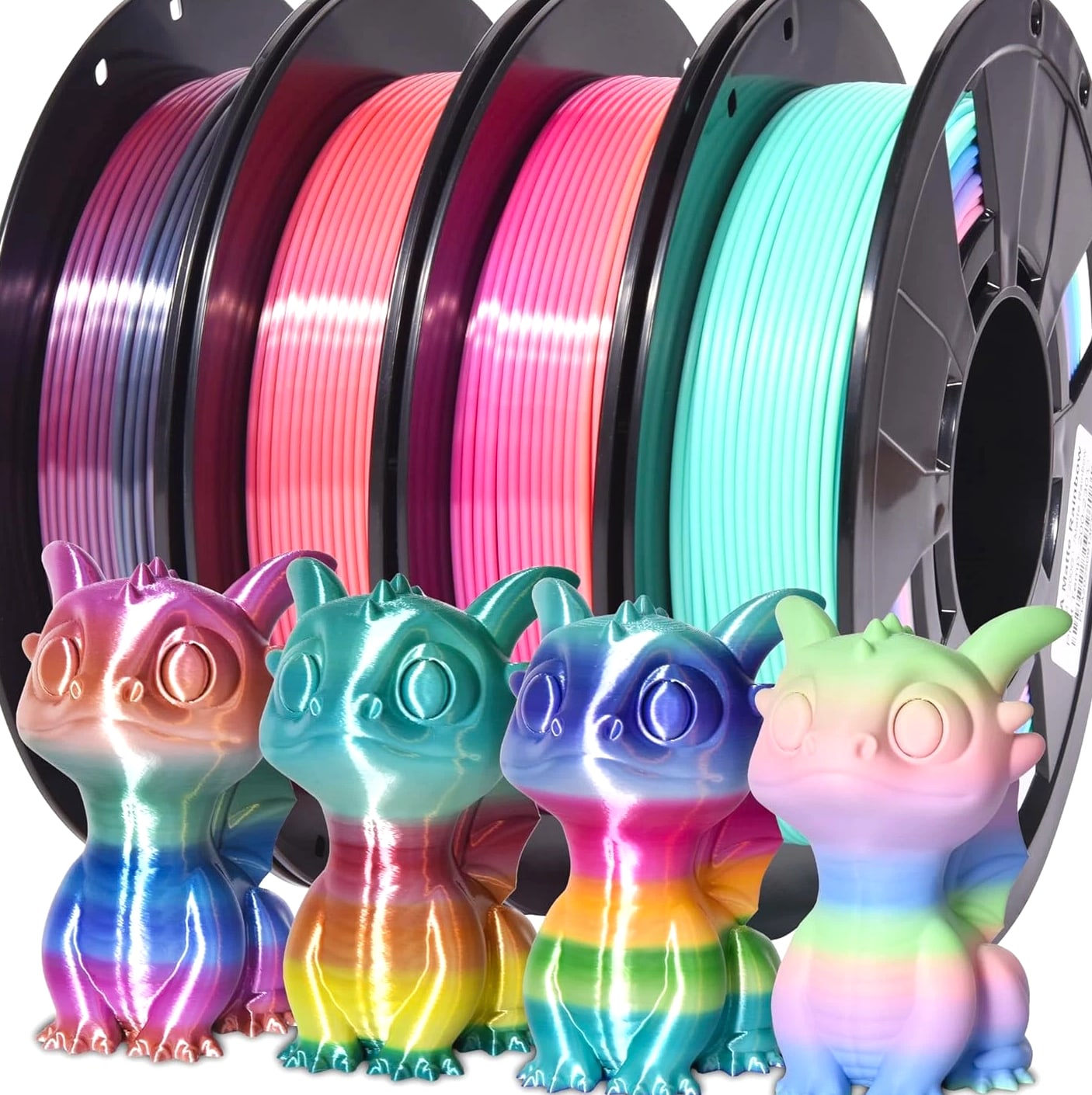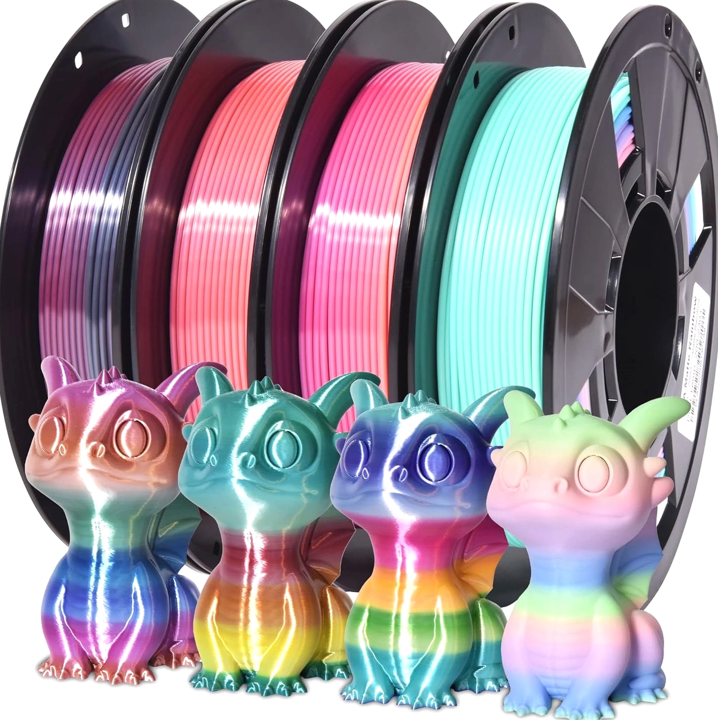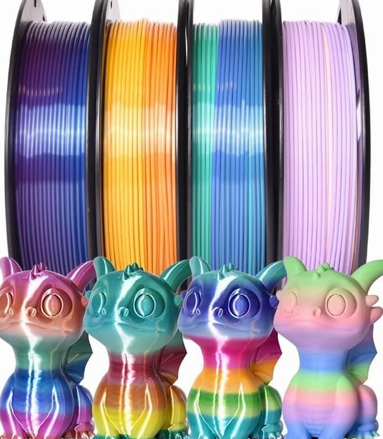 4-Pack Silk Matte Rainbow PLA Filament 1.75mm - Multicolor Fast Color Change 3D
