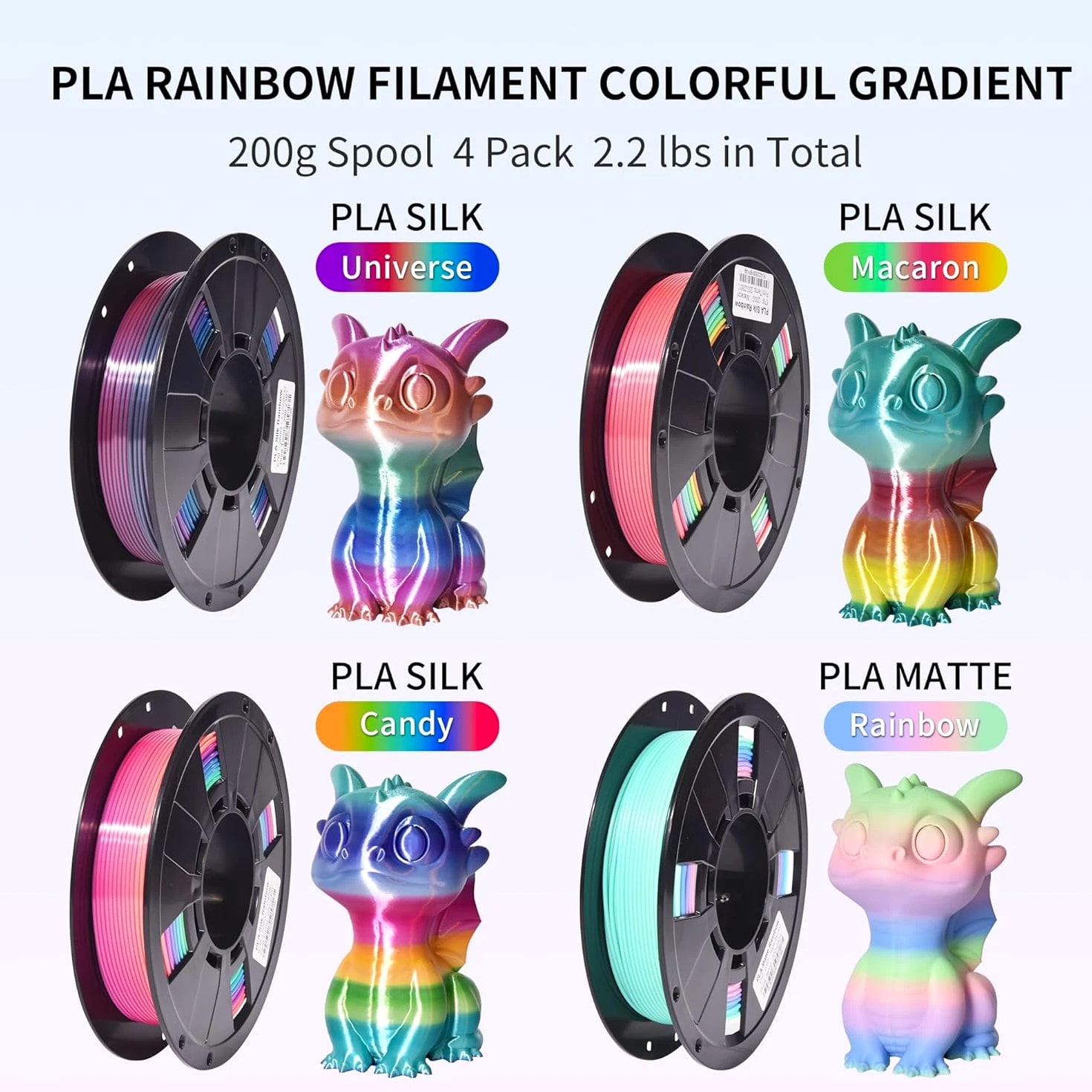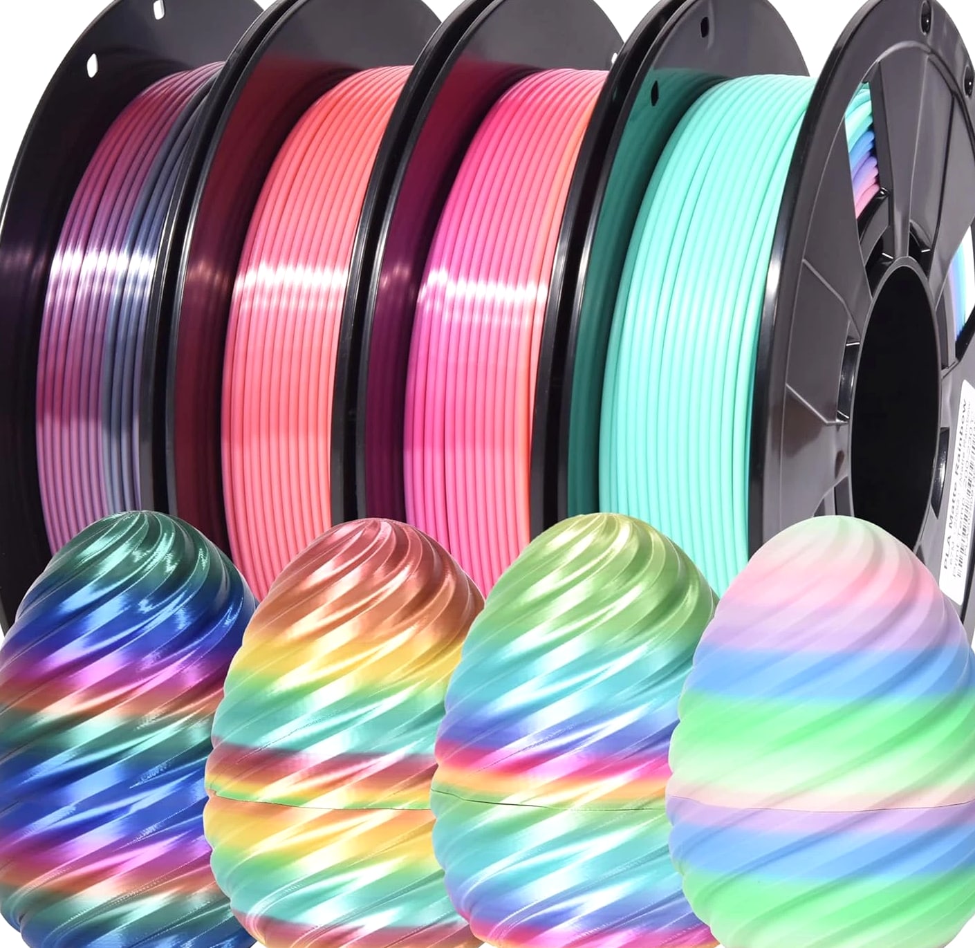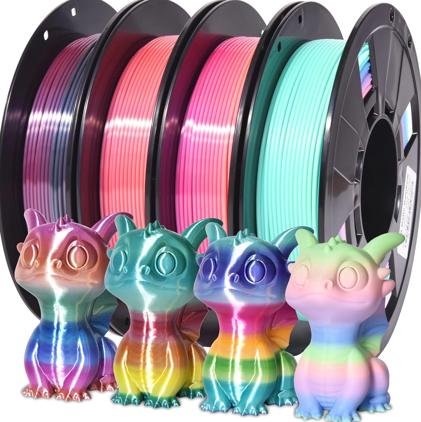4-Pack Silk Matte Rainbow PLA Filament 1.75mm - Multicolor Fast Color Change 3D