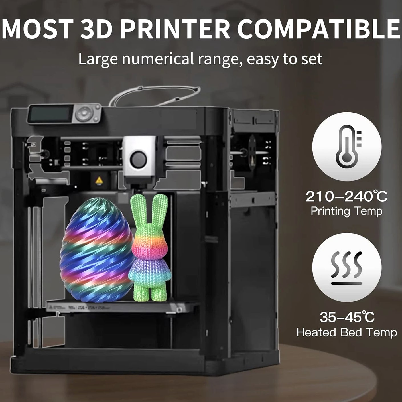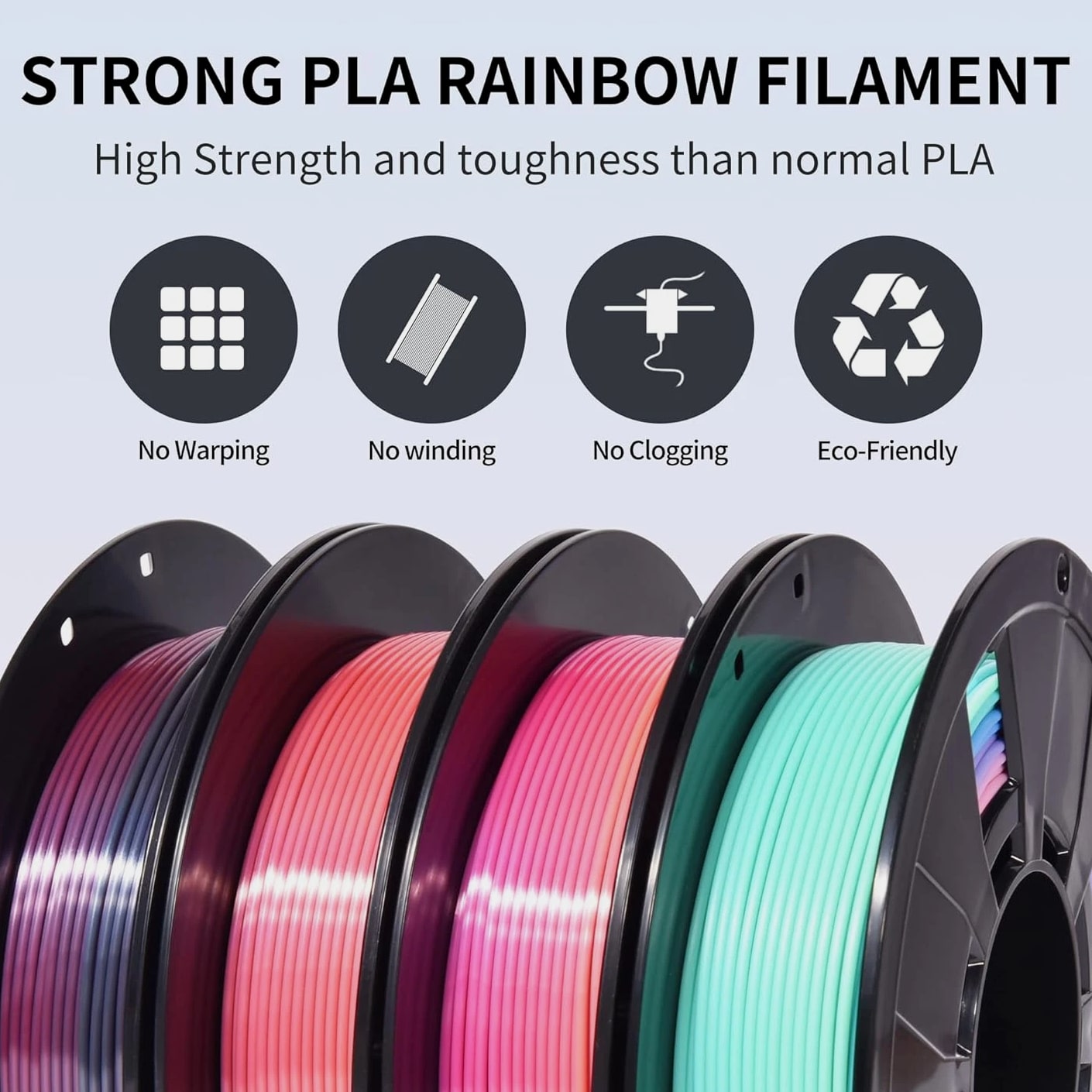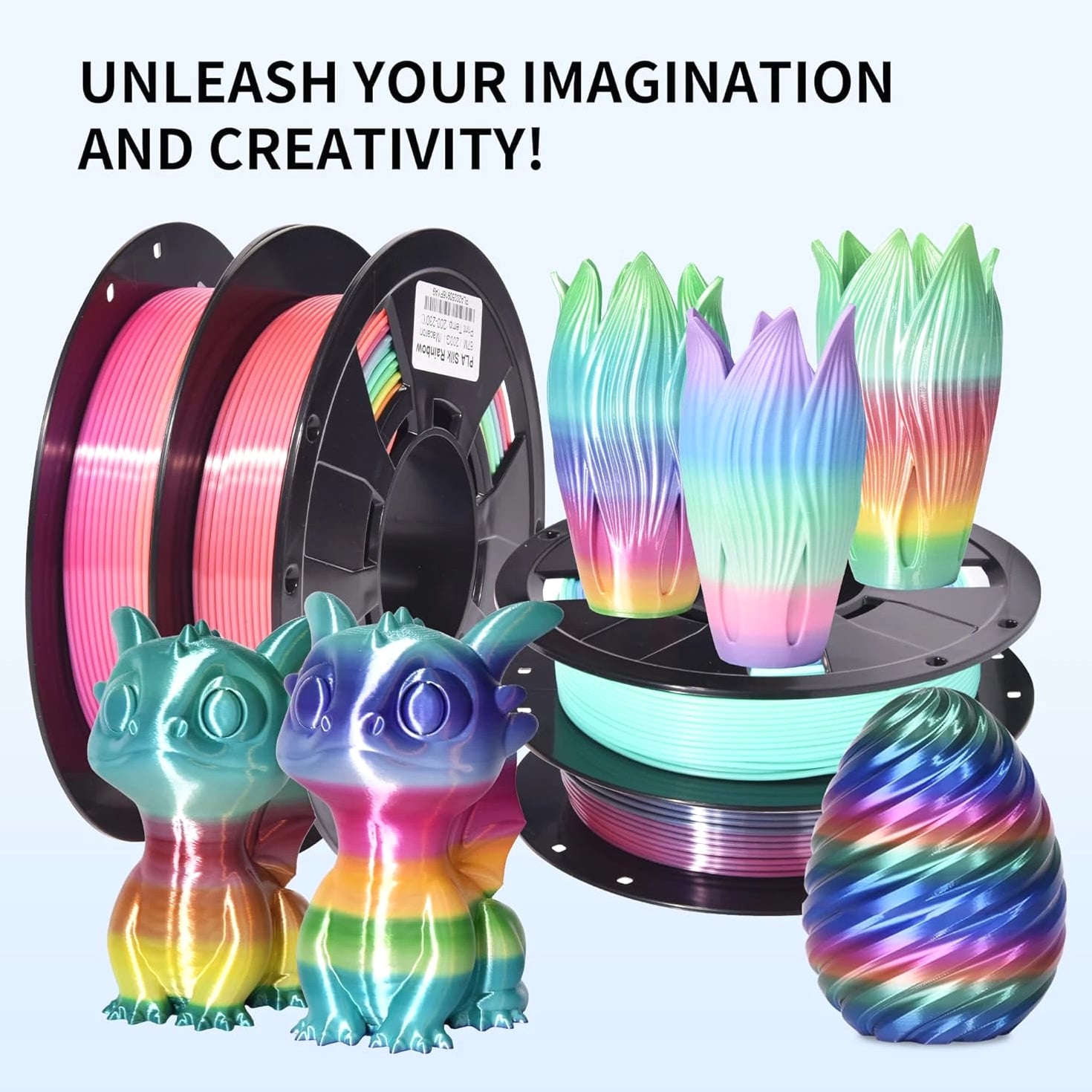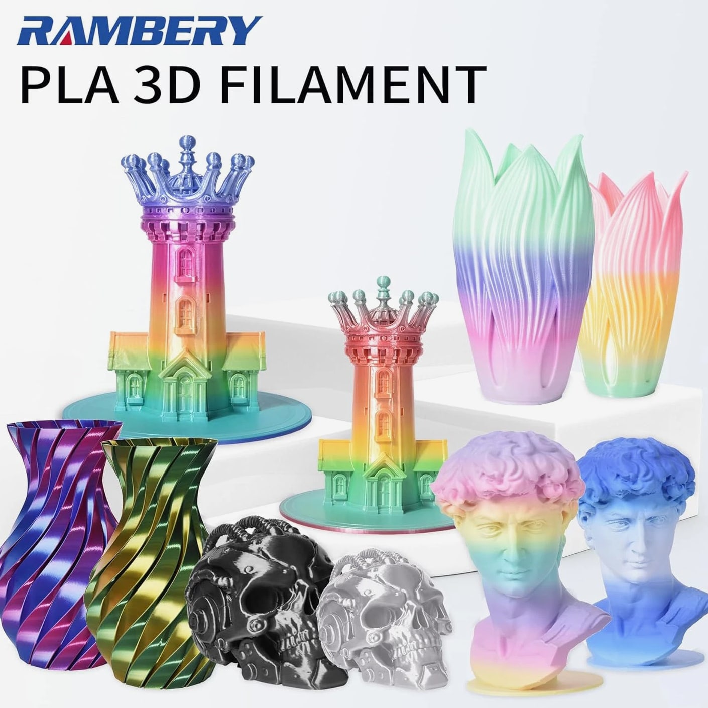 【Rainbow PLA 200g x 4 Pack】 Includes Shiny Candy, Shiny Macaron, Shiny Universe, and Matte PLA Rainbow — each 200g. Experience four unique rainbow color-changing filaments in one bundle. 【4-5 Colors Per Roll】 Each roll features 4–5 distinct colors, with a color change every 35–40g of printing. This uniquely shining multicolor filament bundle lets you create stunningly vibrant objects — perfect for crafting exquisite gifts and decorative pieces. 【Stable Dimensional Accuracy】 Designed with minimal dimensional tolerance and low warping, this 3D PLA filament ensures consistent feeding and reliable printing performance. It offers excellent layer adhesion, minimal stringing, and no bubbles or cracking — delivering a superior surface finish every time. 【Tangle-Free & No Clogging】 Our rainbow PLA filament is precision wound to prevent tangling and engineered to resist clogging. Each spool is fully dried and vacuum-sealed to eliminate moisture-related issues. Expect clean, precise prints with professional-grade surface quality. 【Quality Assurance】 Every spool is meticulously designed, manufactured, and rigorously tested to ensure consistent performance and reliability. Choose RAMBERY as your trusted partner for premium 3D printing filaments.