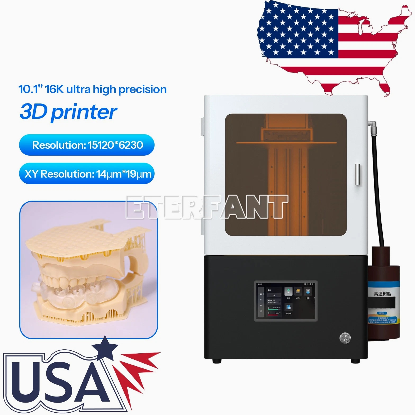Dental 16K Ultra High Precision UV LCD Resin 3D Printer Industrial LAN/USB/WiFi