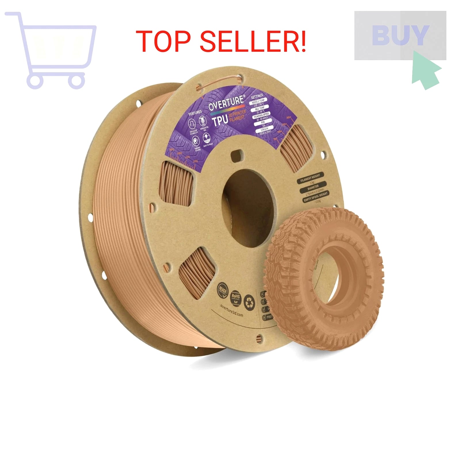 π¨ BRAND NEW β TRUSTED SELLER π FAST FREE SHIPPING π 100% AUTHENTIC WELCOME TO OUR STORE OVERTURE TPU Filament 1.75mm Flexible Roll, 95A Soft 3D Printer Filament, 1kg Spool (2.2 lbs), Fits Most FDM Printers (TPU Brown) Payment Methods We accept all payment methods supported by the platform. We do not respond to requests to conduct business outside of the platform. Return Policy We do not accept returns. If your item arrives damaged or not as described, please contact us immediately. We are happy to work with you to find a solution. Shipping Details We have a 4 business day handling time, but we always work to ship your order as quickly as possible! If there are any unexpected delays, we'll message you to work on a solution together.